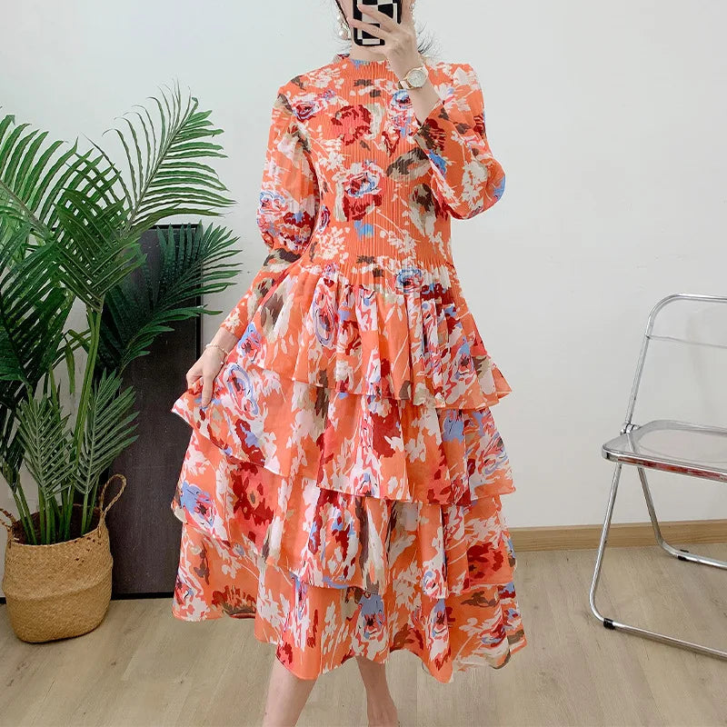 Temperament Dress Spring Women's 2024 New High end Pleated Fat mm Large Women's Black Fragmented Flower Dress Fashionable