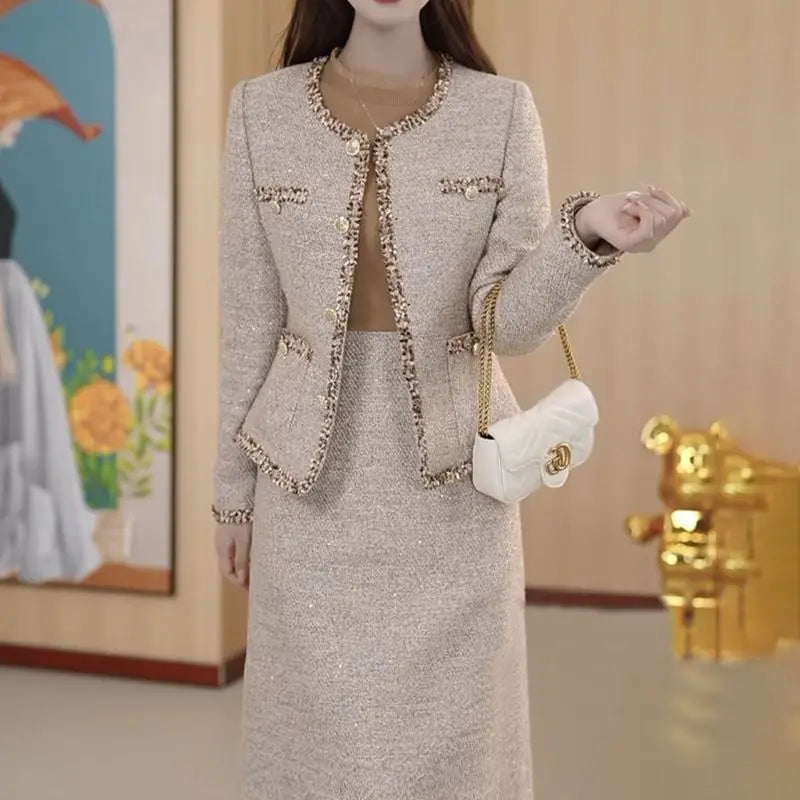 UNXX 2023 Autumn/Winter Two-Piece Dress Set - Chic Thickened Jacket with Slimming Waist, High-Quality Casual Outfit Women Female
