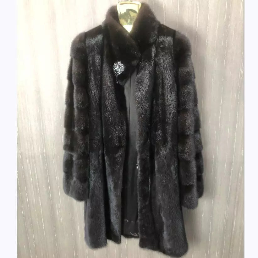 Women's Coat Real Mink Fur Jackets Long Sleeve Winter Large Warm Real Fur Women Long Black Clothes Luxury Mink Collar Coat