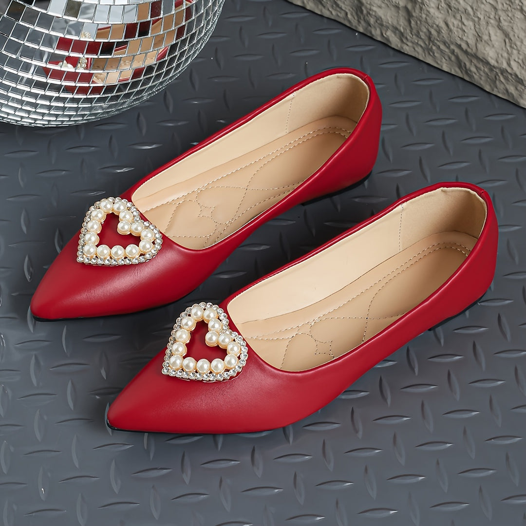 Women's Heart Decor Flat Shoes, Elegant Point Toe Slip On Shoes, Lightweight & Comfortable Valentine's Day Shoes
