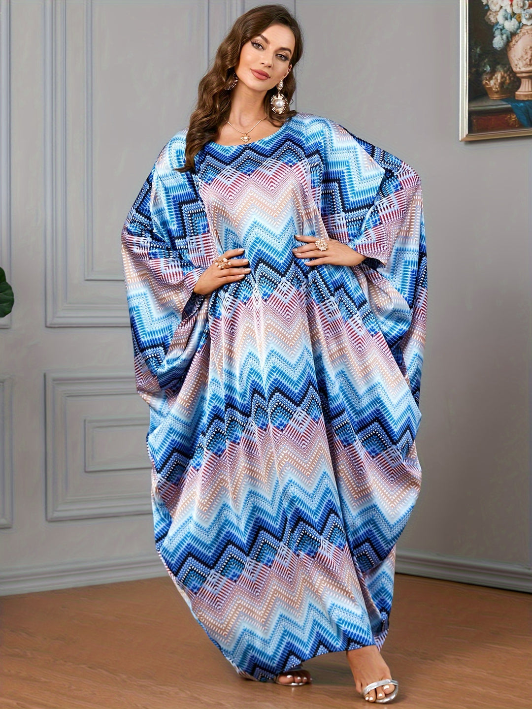 Plus Size Colorblock Stripe Print Kaftan Dress, Elegant Crew Neck Batwing Sleeve Maxi Dress, Women's Plus Size Clothing