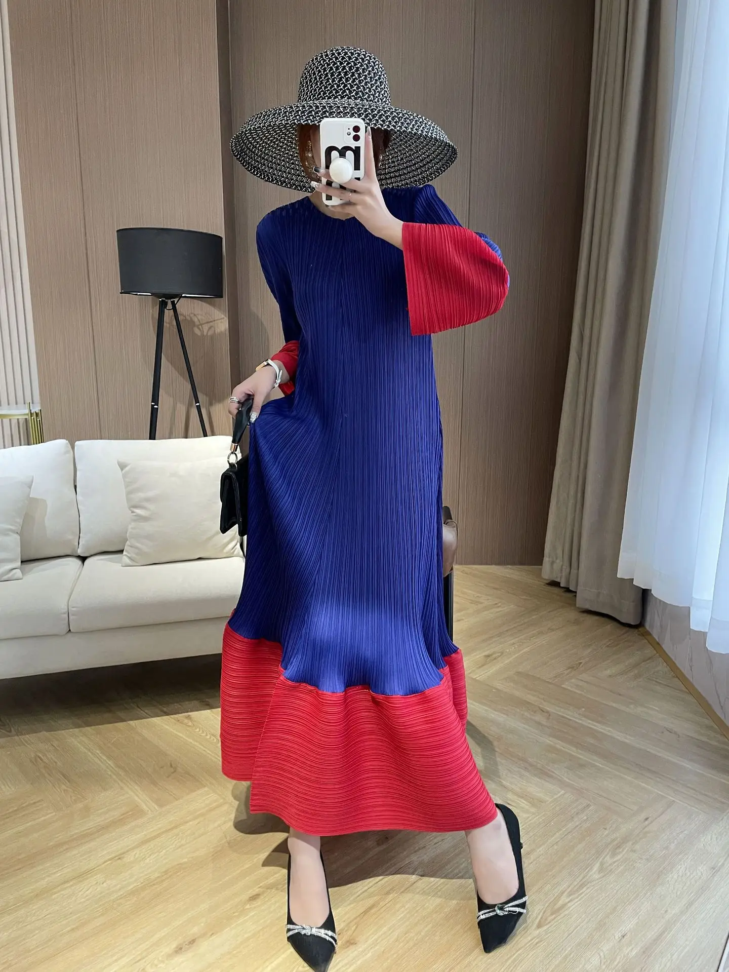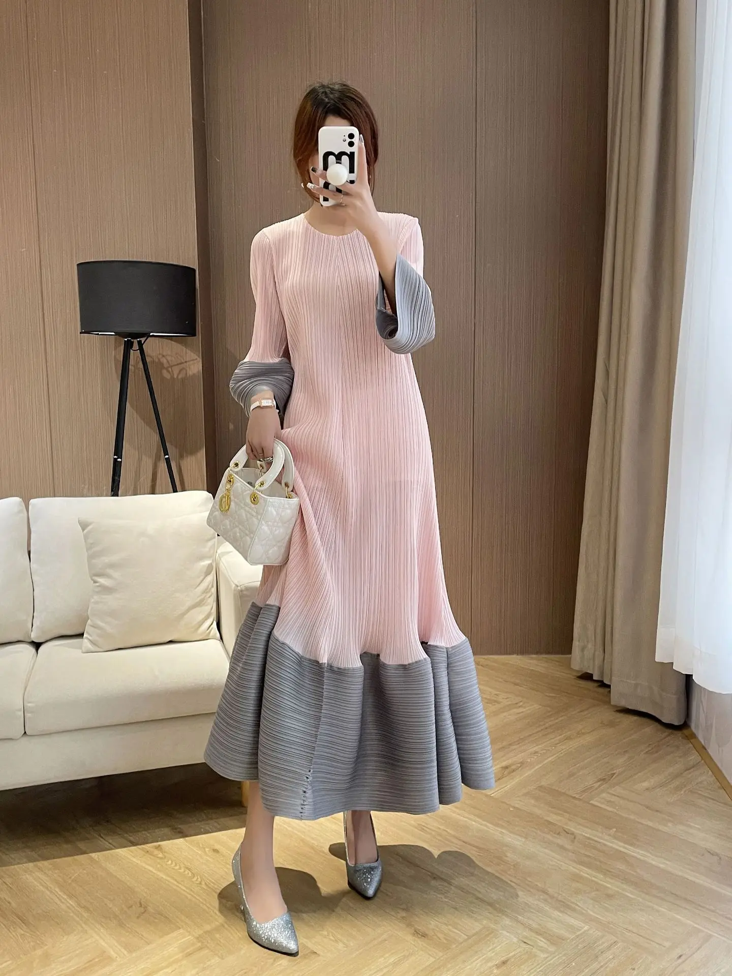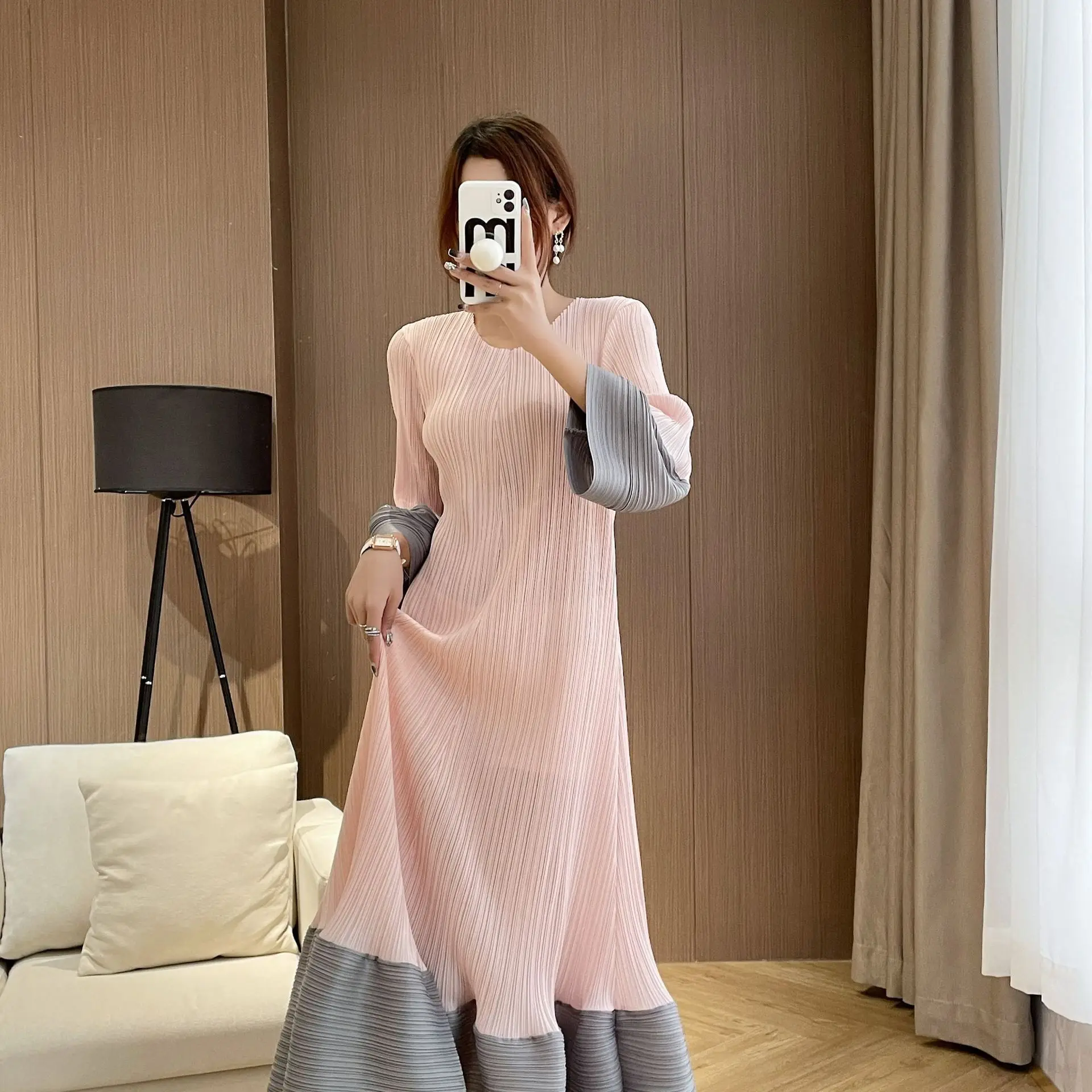 Introducing the 2023 New Miyake Pleated Dress, the ultimate solution for all your fashion needs. This dress features a relaxed round neck, long sleeves, and a feminine pleated design, making it perfect for any occasion. Made from premium quality materials, this dress offers both style and comfort. It's the best seller of the season and a must-have for every woman's wardrobe. Don't miss out on this exclusive piece that is guaranteed to turn heads. Order now before it's gone!