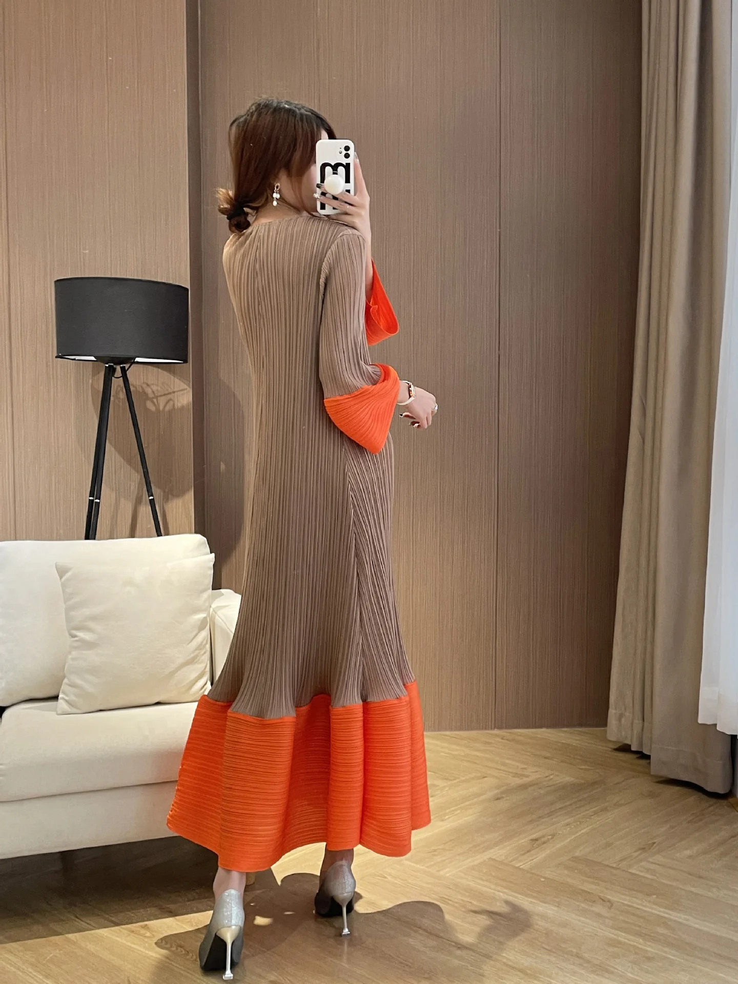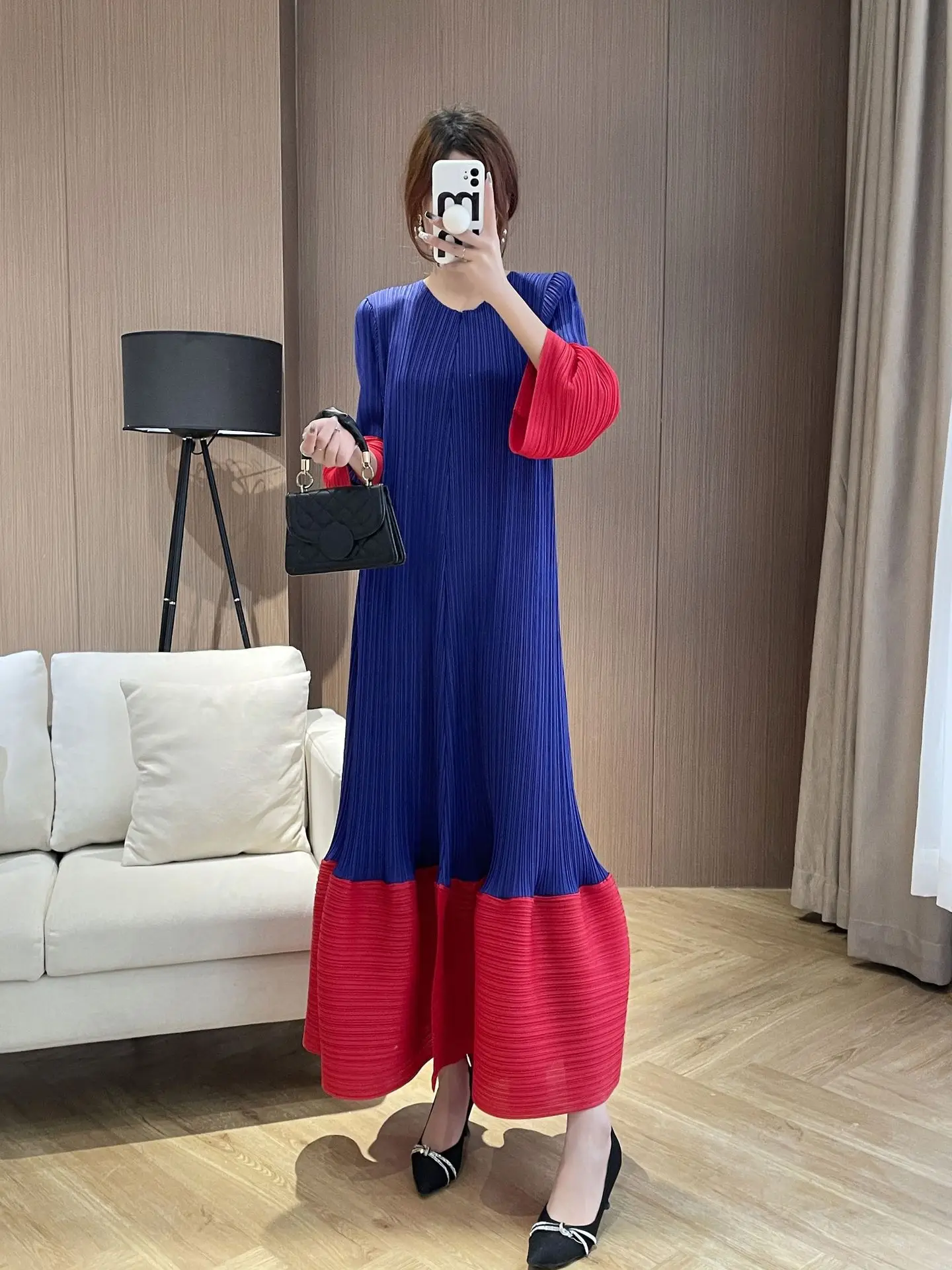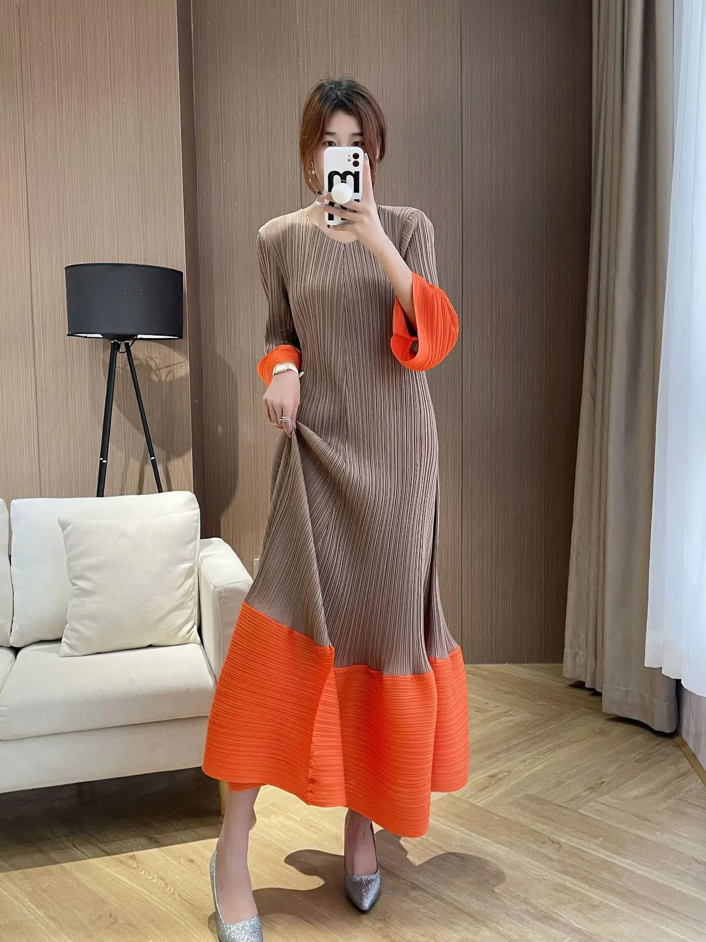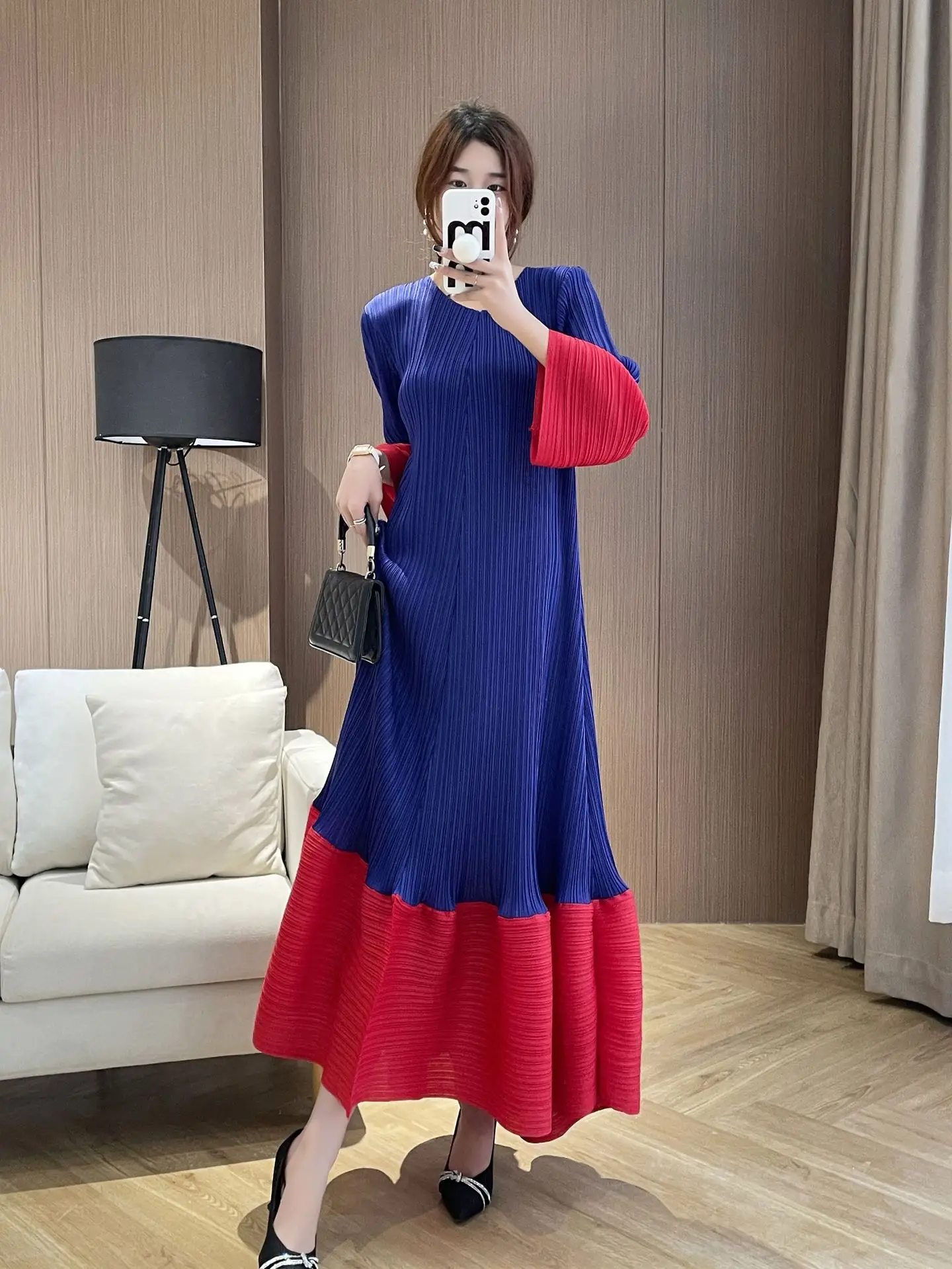 Introducing the 2023 New Miyake Pleated Dress, the ultimate solution for all your fashion needs. This dress features a relaxed round neck, long sleeves, and a feminine pleated design, making it perfect for any occasion. Made from premium quality materials, this dress offers both style and comfort. It's the best seller of the season and a must-have for every woman's wardrobe. Don't miss out on this exclusive piece that is guaranteed to turn heads. Order now before it's gone!