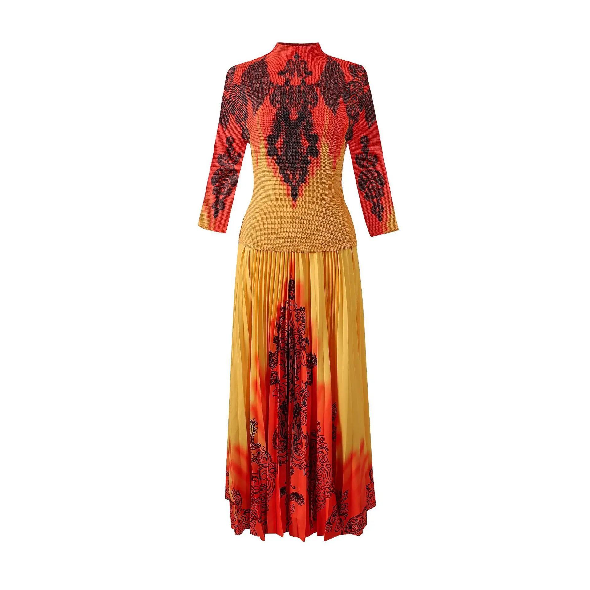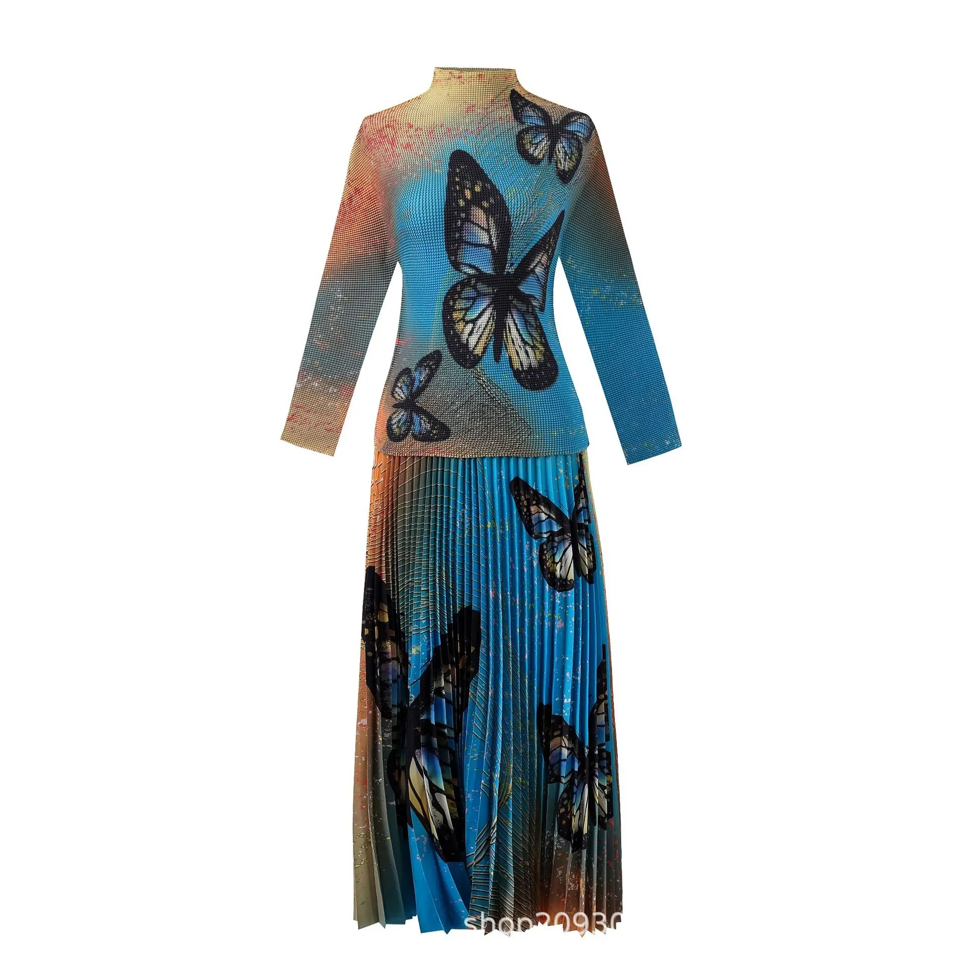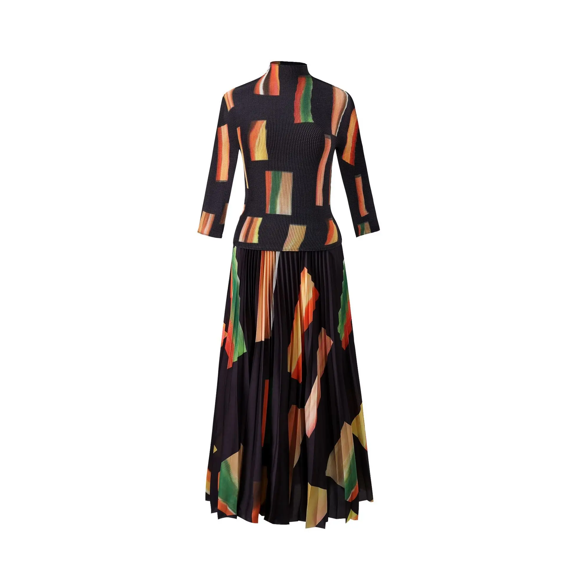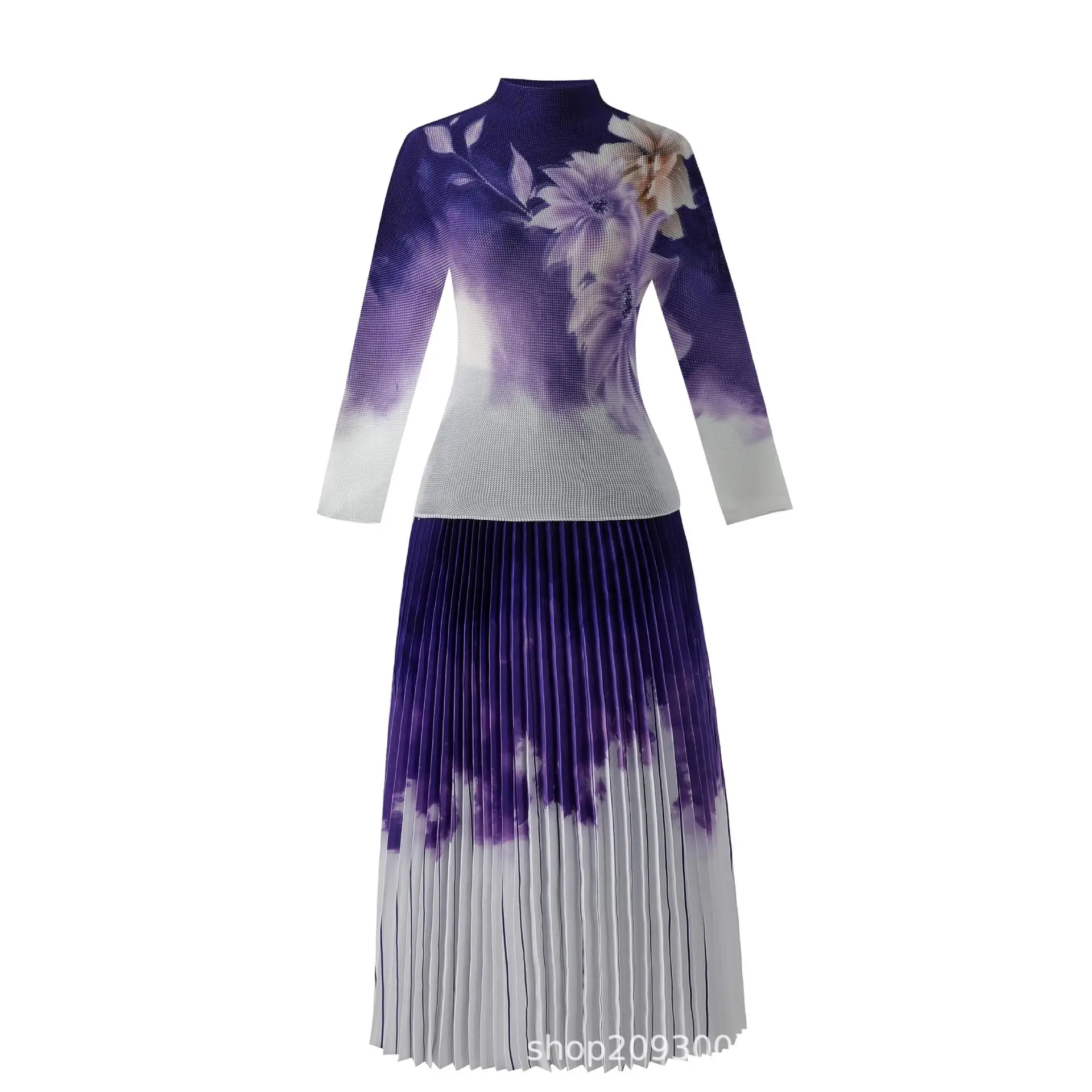 Introducing the 2023 Miyake Pleated New Women Suit - a must-have for any fashion-forward woman. This two-piece set features a slim western print top with a stylish stand collar and long sleeves, paired with a loose slim skirt that falls beautifully on the body. The jacket has a clothing length of 52cm and a chest circumference of 72-116cm, while the half skirt measures 91cm in length and has a waist circumference of 72-120cm. Not only does this set solve the problem of finding a chic and comfortable outfit for any occasion, but it also gives customers a sense of confidence and sophistication. Made with premium materials and designed to perfection, this set is a best seller and an exclusive addition to your wardrobe. Get yours now while stocks last!