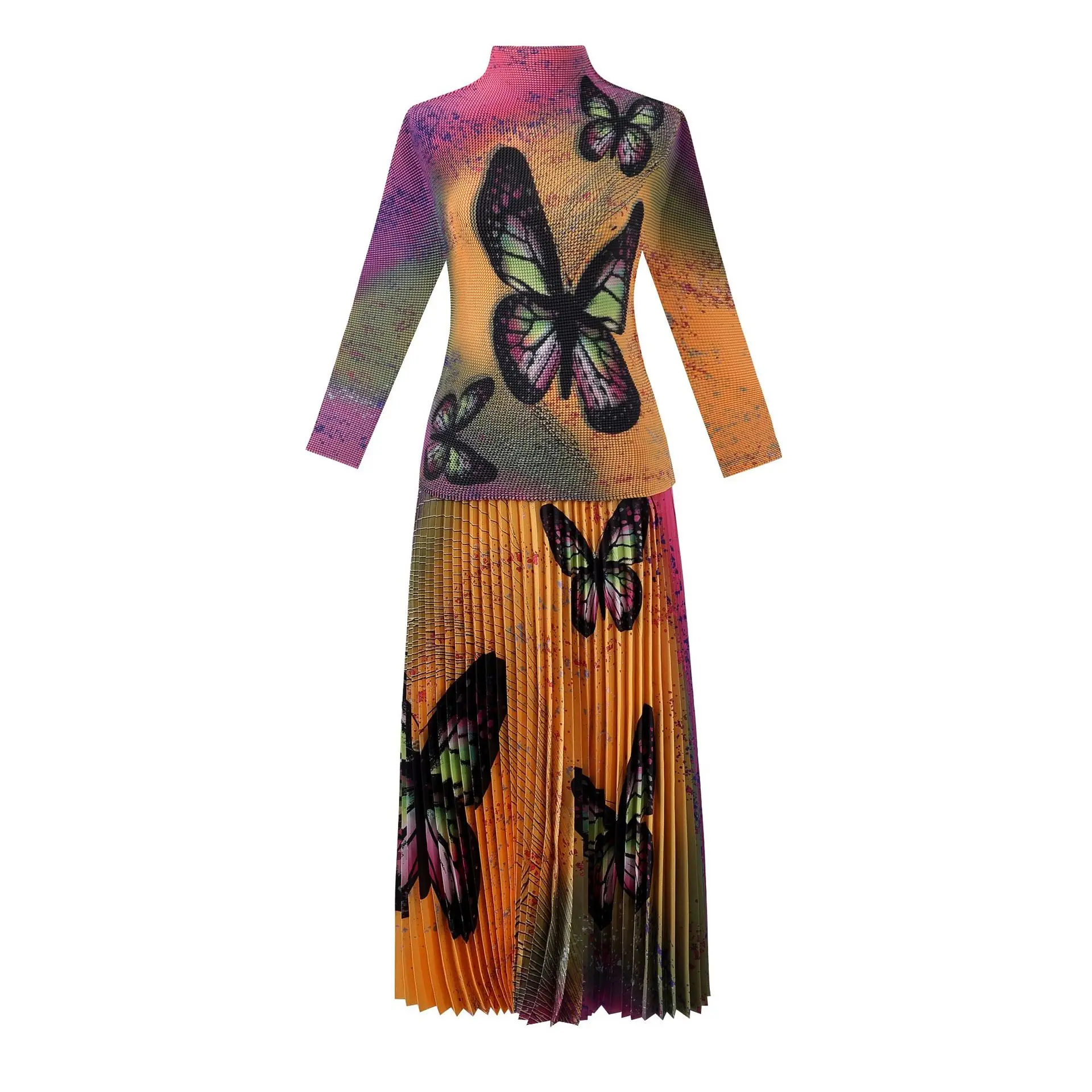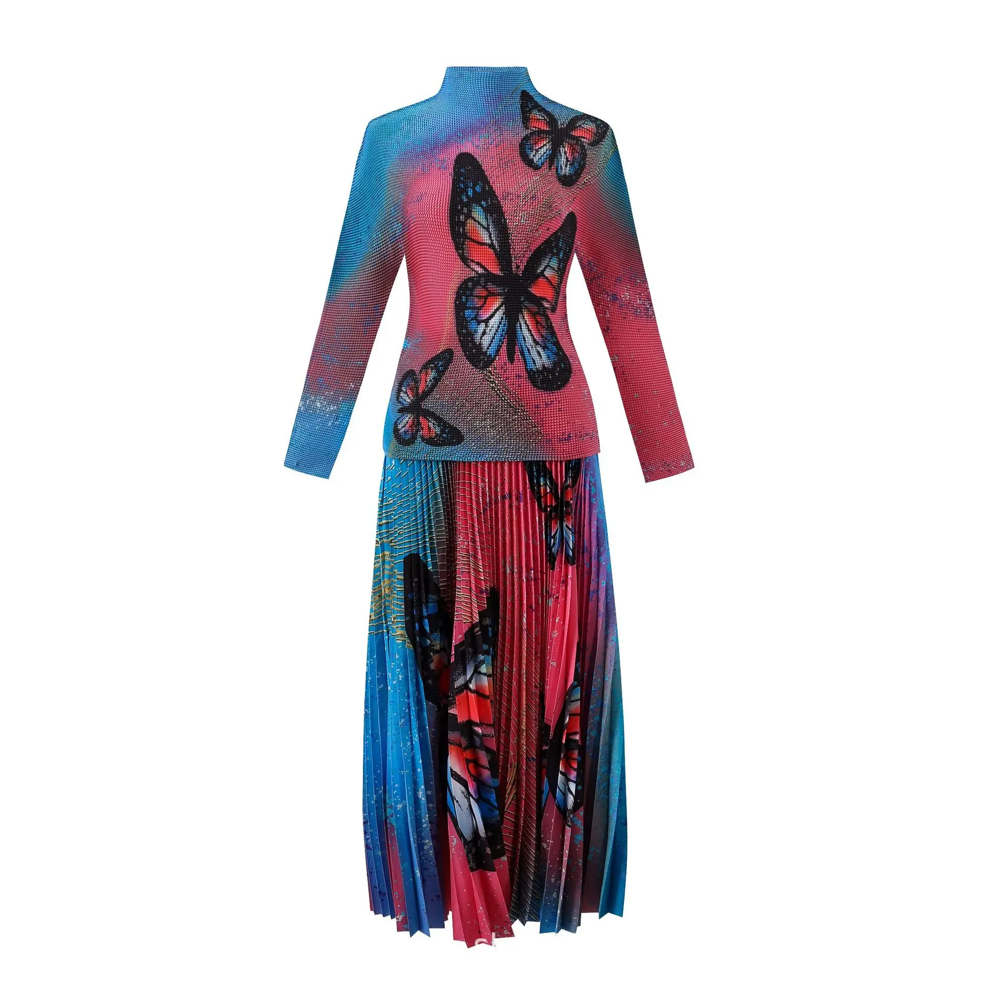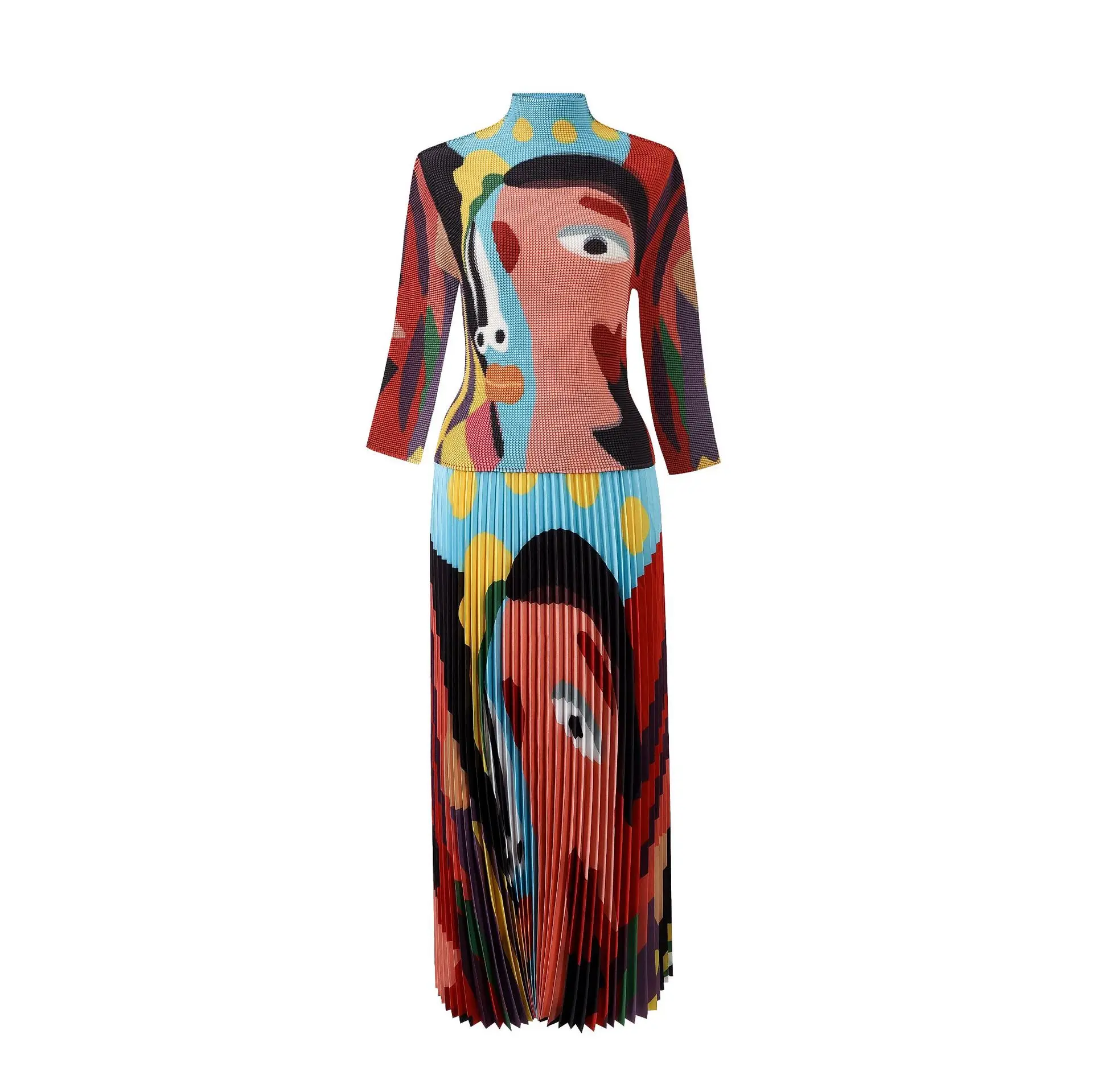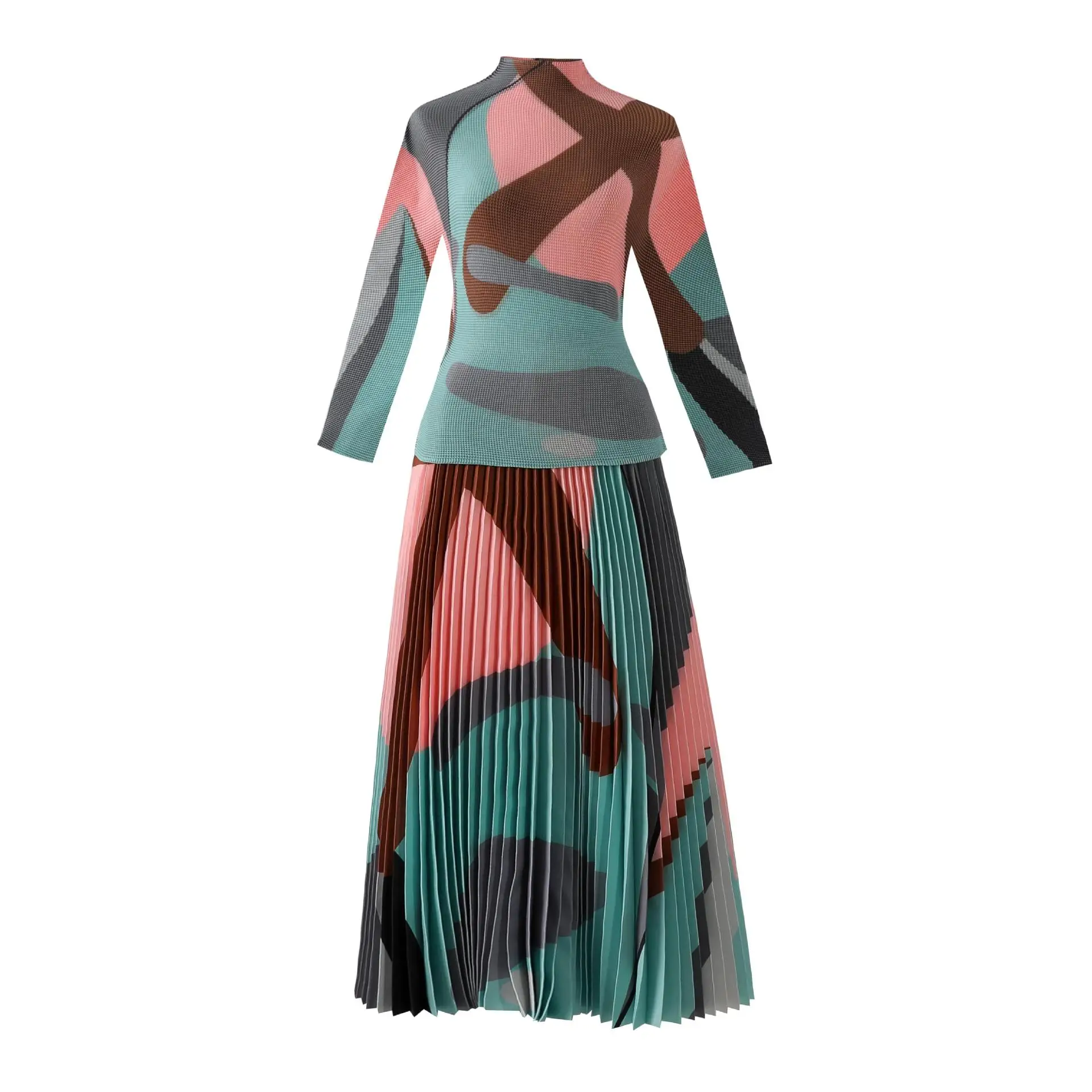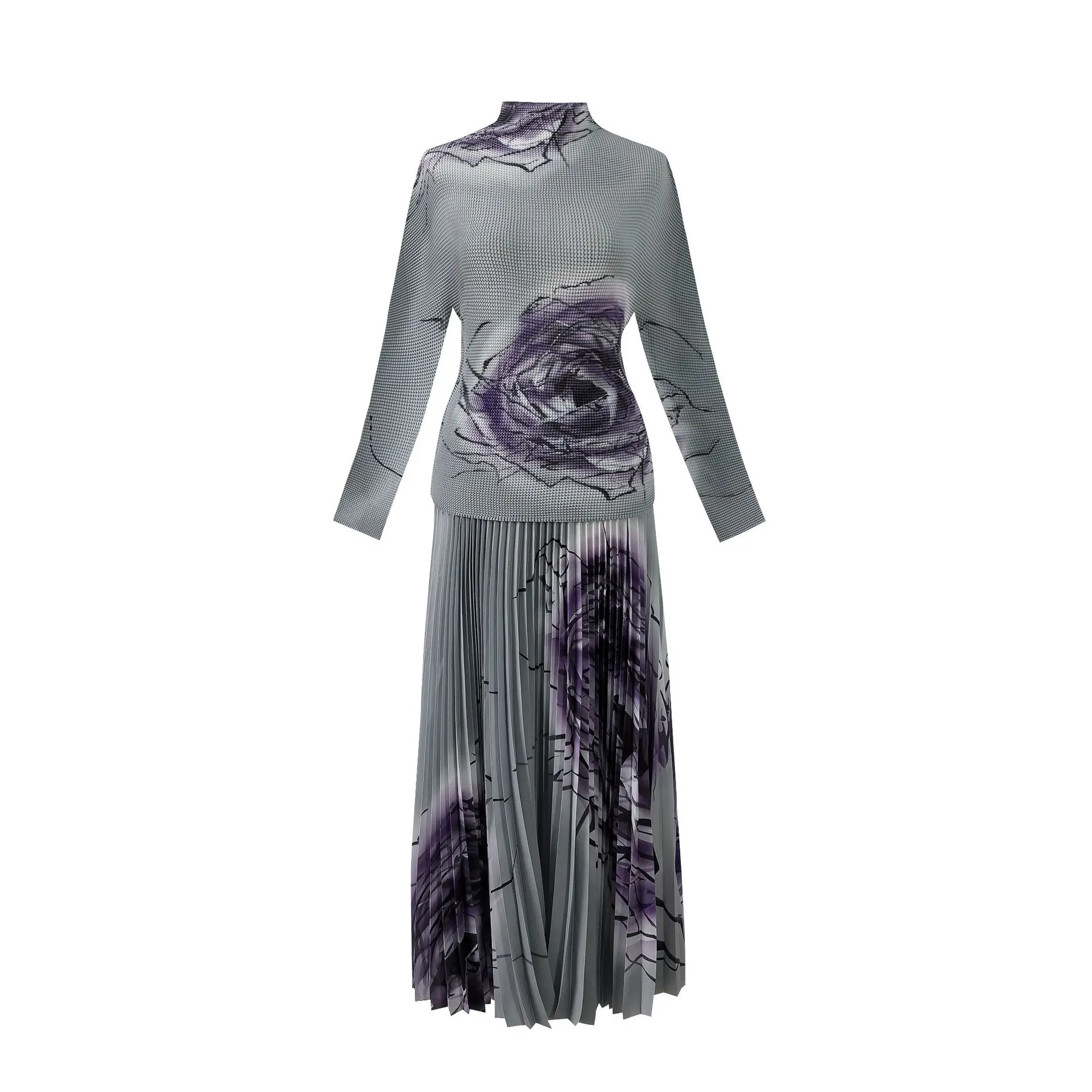 Introducing the 2023 Miyake Pleated New Women Suit - a must-have for any fashion-forward woman. This two-piece set features a slim western print top with a stylish stand collar and long sleeves, paired with a loose slim skirt that falls beautifully on the body. The jacket has a clothing length of 52cm and a chest circumference of 72-116cm, while the half skirt measures 91cm in length and has a waist circumference of 72-120cm. Not only does this set solve the problem of finding a chic and comfortable outfit for any occasion, but it also gives customers a sense of confidence and sophistication. Made with premium materials and designed to perfection, this set is a best seller and an exclusive addition to your wardrobe. Get yours now while stocks last!