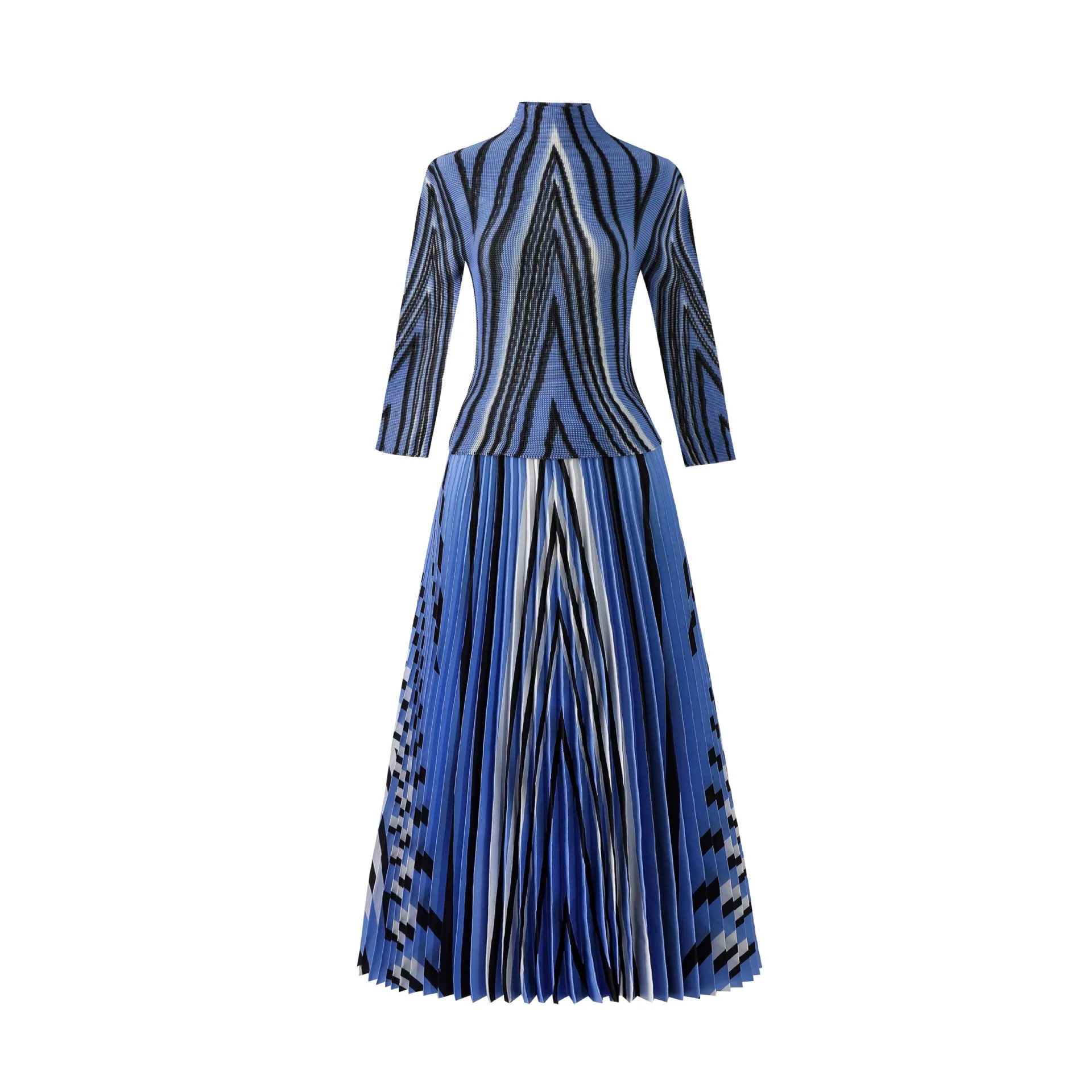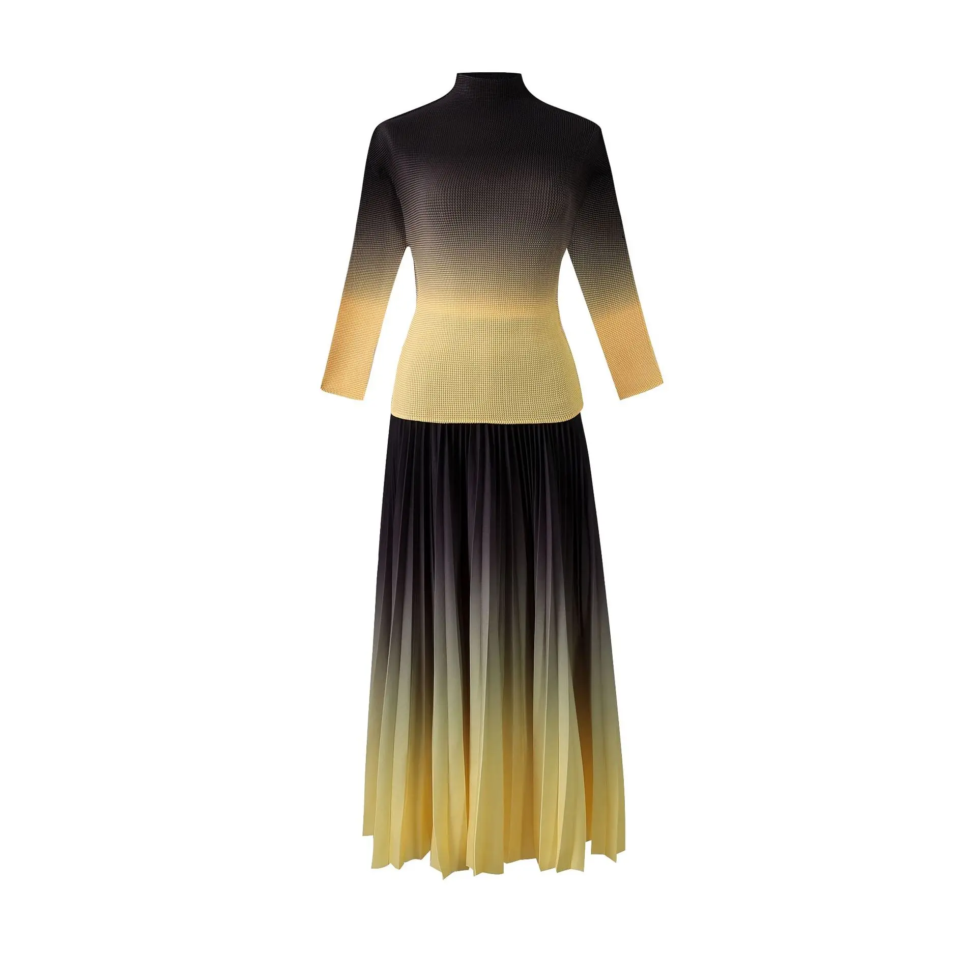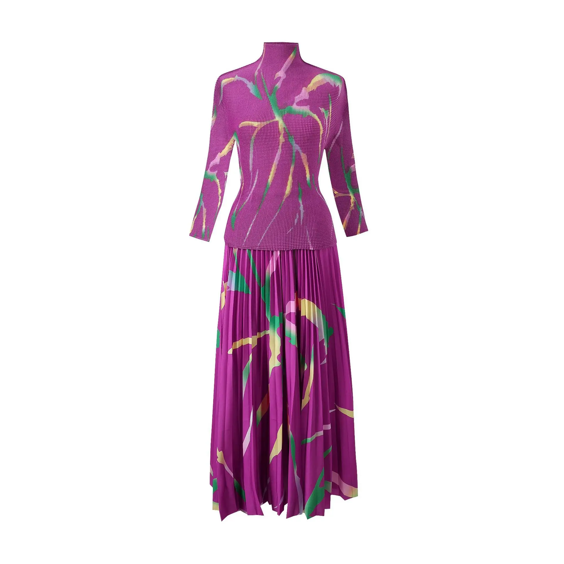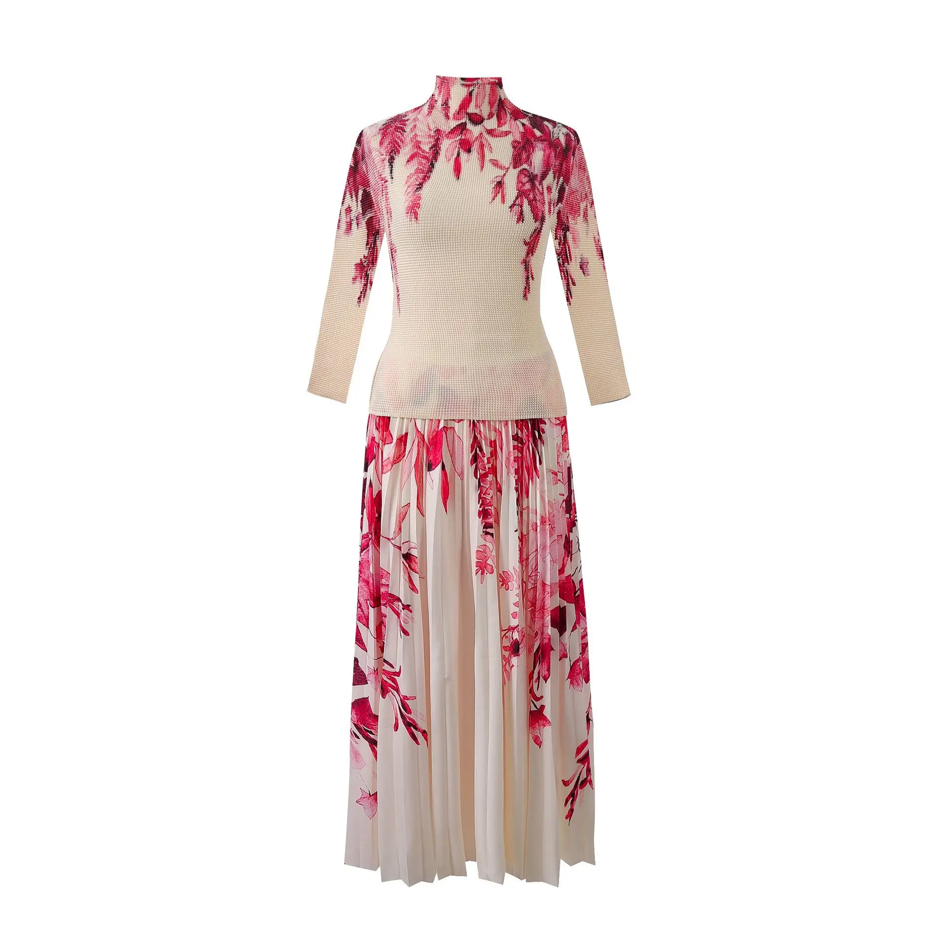 Introducing the 2023 Miyake Pleated New Women Suit - a must-have for any fashion-forward woman. This two-piece set features a slim western print top with a stylish stand collar and long sleeves, paired with a loose slim skirt that falls beautifully on the body. The jacket has a clothing length of 52cm and a chest circumference of 72-116cm, while the half skirt measures 91cm in length and has a waist circumference of 72-120cm. Not only does this set solve the problem of finding a chic and comfortable outfit for any occasion, but it also gives customers a sense of confidence and sophistication. Made with premium materials and designed to perfection, this set is a best seller and an exclusive addition to your wardrobe. Get yours now while stocks last!