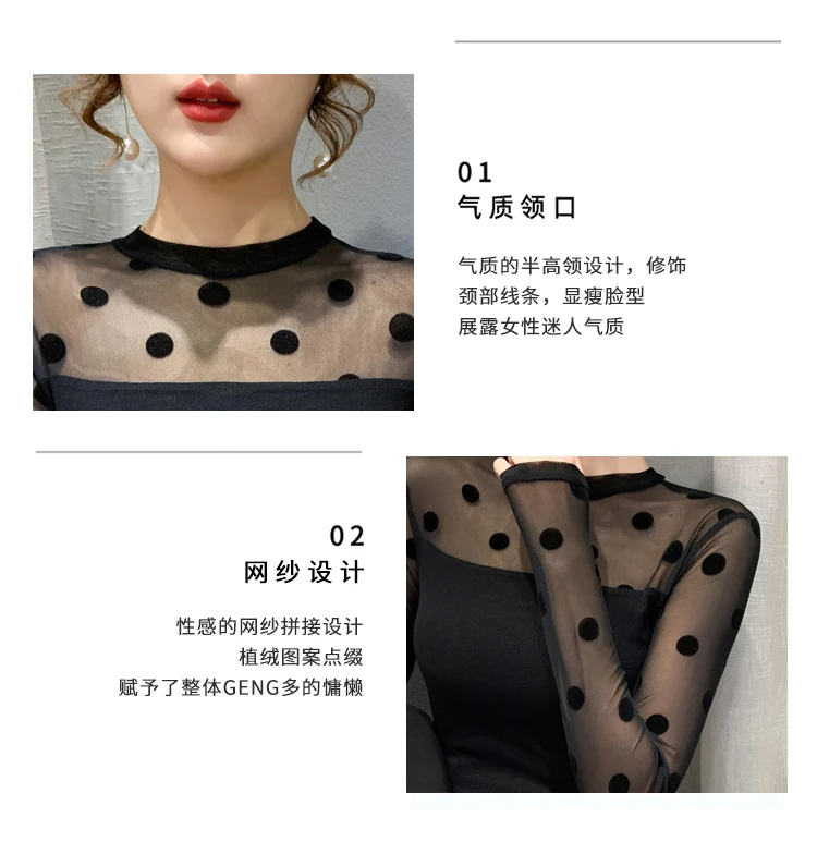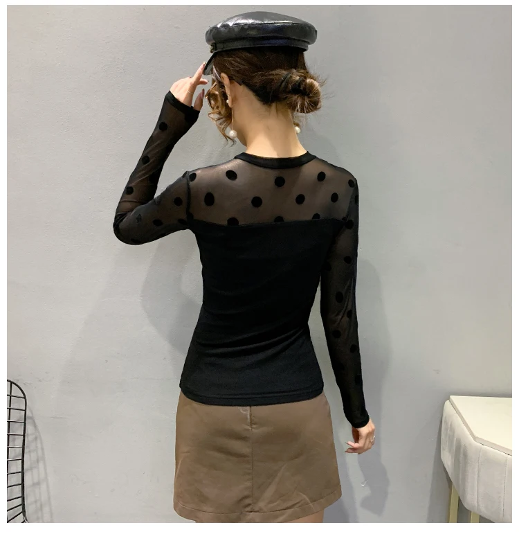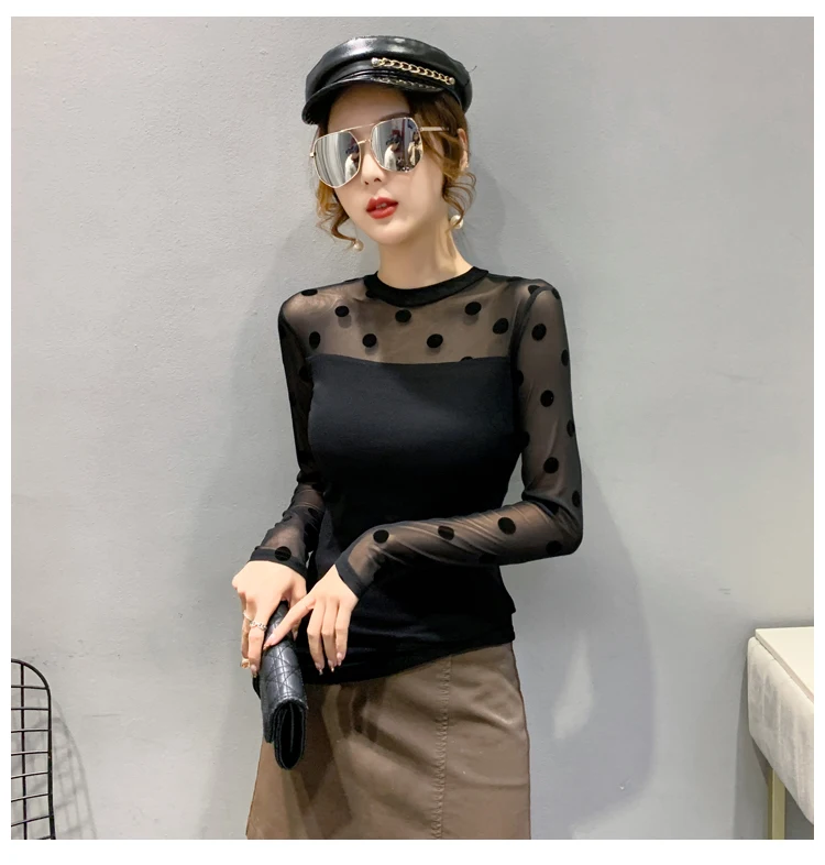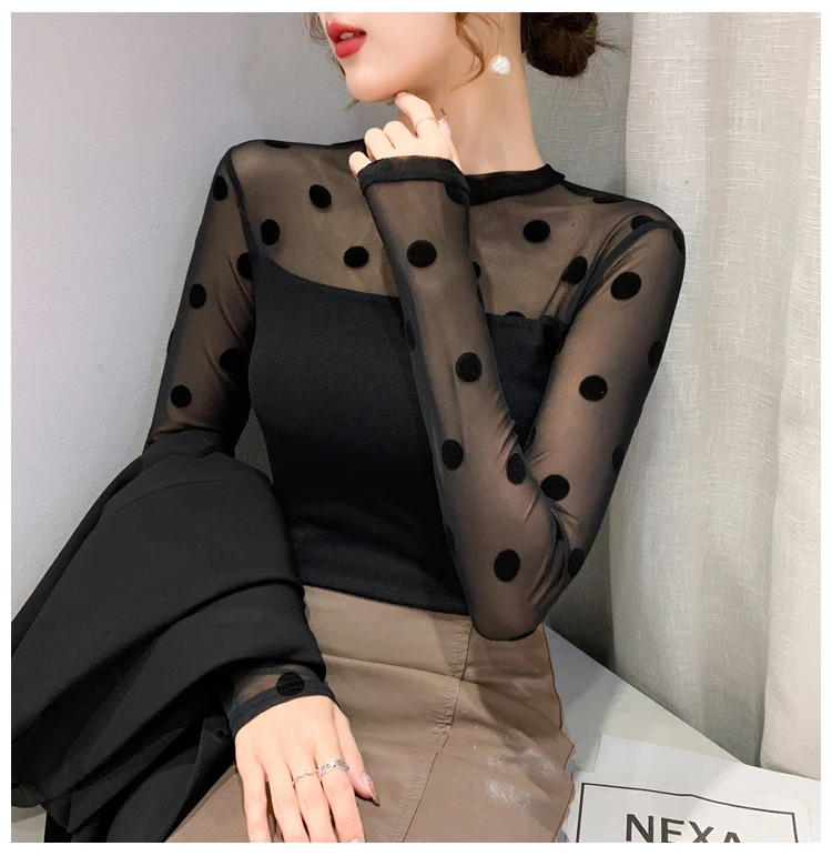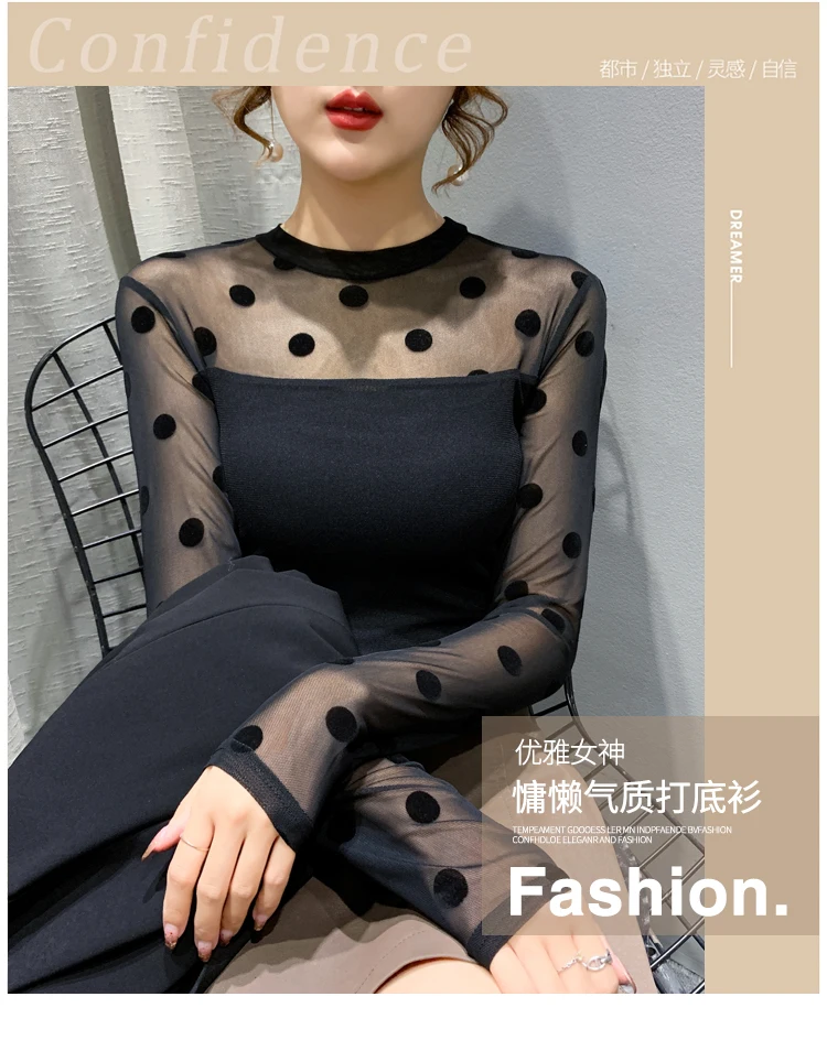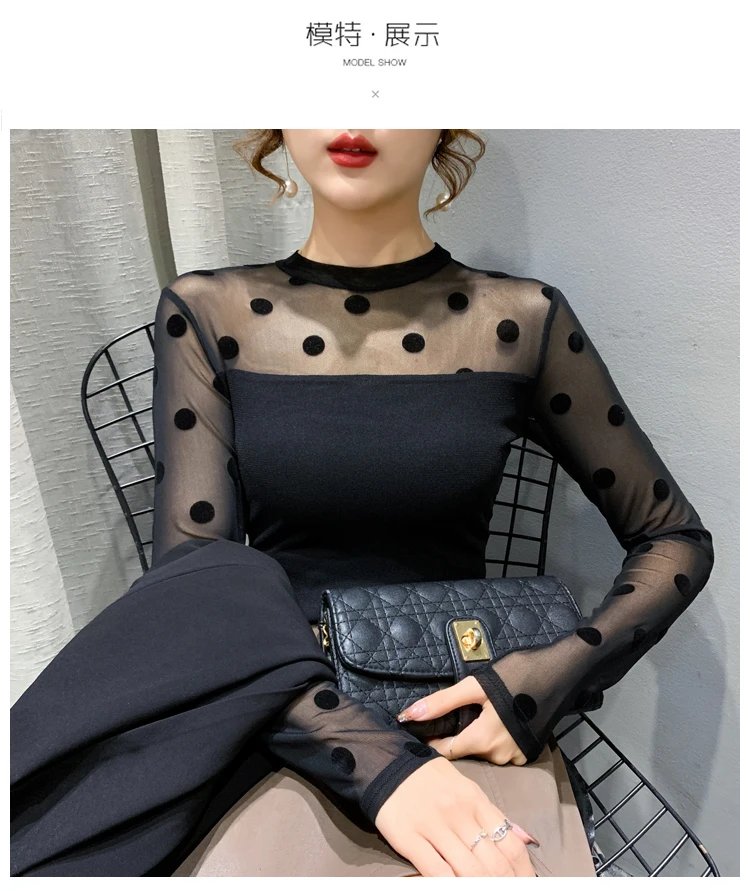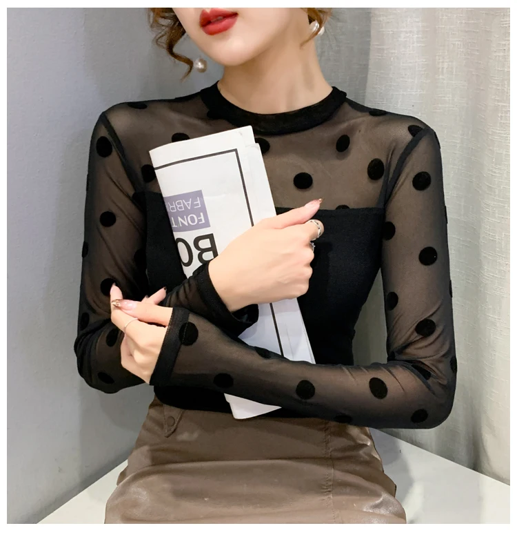 Introducing our latest addition to the fashion world - the Spring Autumn 2023 Sexy Sheer Tops! Made with high-quality materials and impeccable workmanship, these long sleeve tops feature a charming polka dot design and a round neck with flocking details. Perfect for any occasion, these tops provide a comfortable and fashionable look. Available in Asian sizes, be sure to check our detailed measurements for the perfect fit. Don't miss out on this exclusive and limited time product that will surely elevate your wardrobe. Upgrade your style and gain confidence with our premium and best-selling Sheer Tops. Order now and see the difference for yourself!