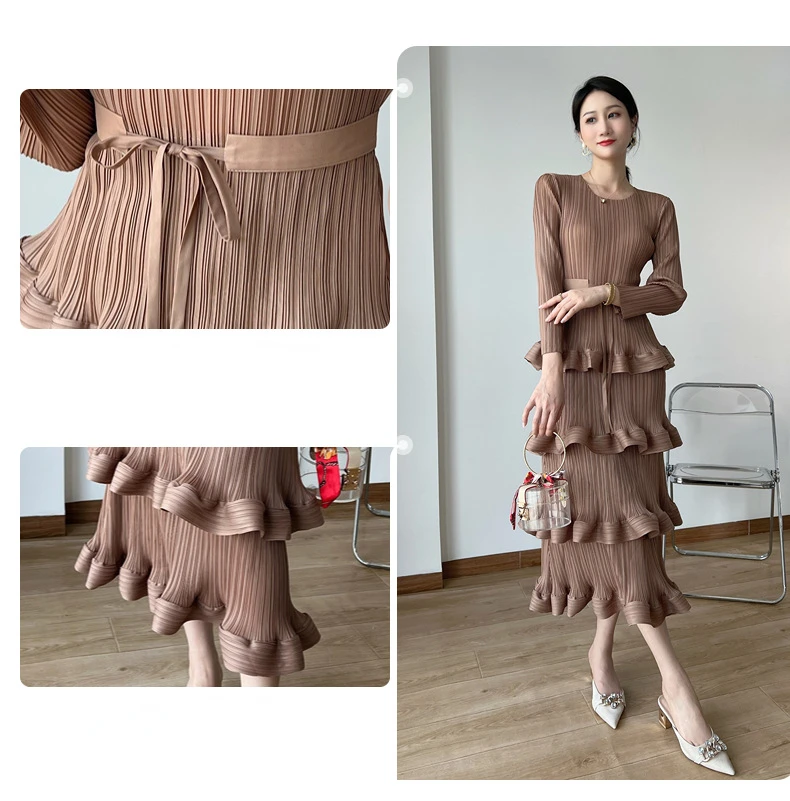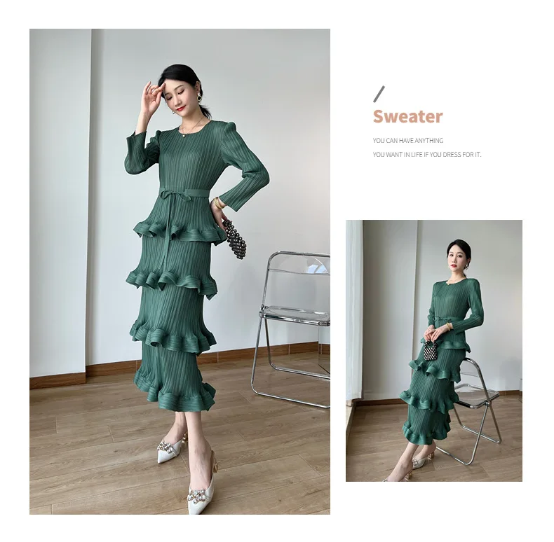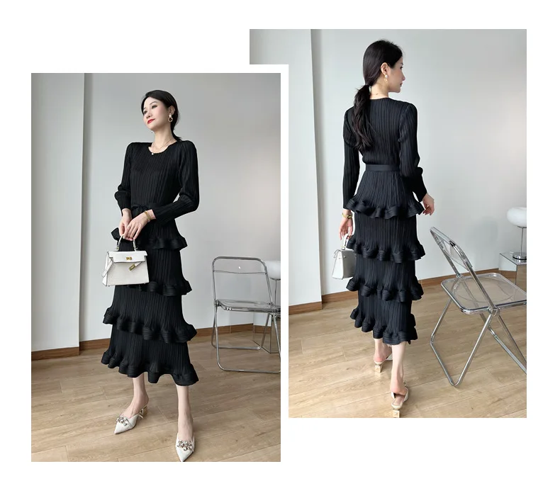 Introducing the ASM Miyake Pleated High-grade Dress, the perfect addition to your wardrobe for the upcoming 2023 Spring season. This dress features a unique niche design that exudes elegance and sophistication. Made with high-quality materials, it offers a comfortable and perfect fit for all body types. With its versatile one size fits all feature, you can easily transition from a casual day look to a glamorous party outfit. The pleated detailing adds a touch of femininity, while the light washing method ensures easy maintenance. Don't miss out on this limited time offer and upgrade your wardrobe with this premium dress.