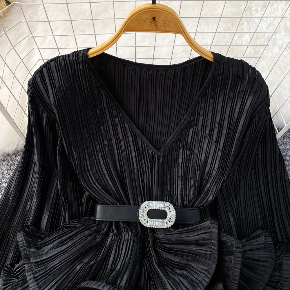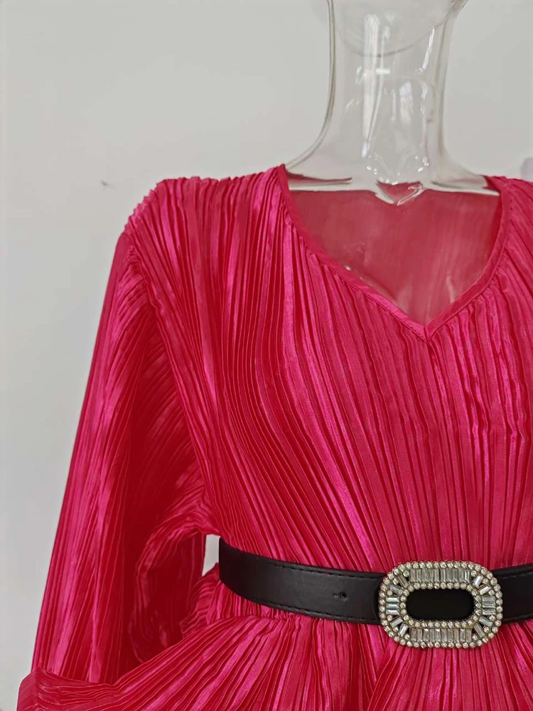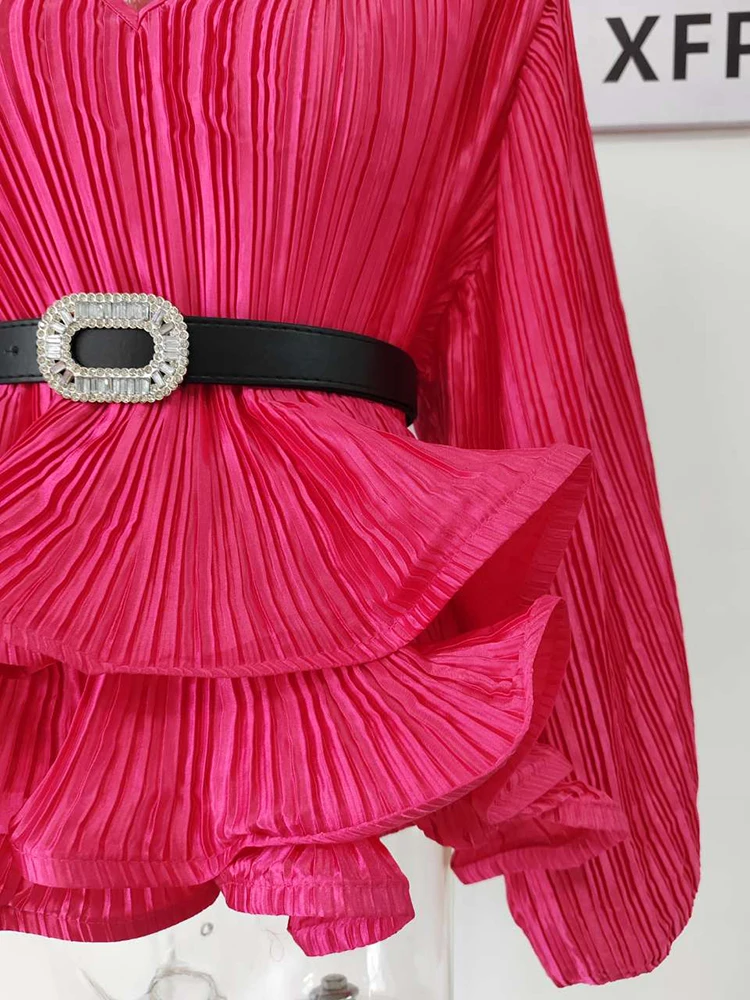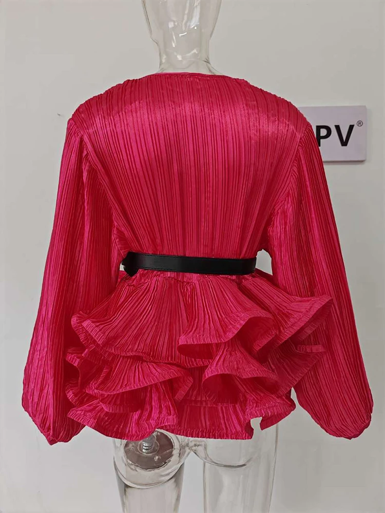 Introducing our latest fashion must-have, the XFPV Y2k Solid Belt Ruffle Patchwork Slim Lantern Sleeve Blouse. This elegant and chic top is designed to enhance your inner charm and elevate your style. With its tasteful design and impeccable fit, this blouse is perfect for any occasion. Made from high-quality materials, it is both comfortable and durable. Its unique ruffle patchwork and slim lantern sleeves make it stand out from other basics shirts, giving you a stylish and sophisticated look. Available in one size, it is a perfect fit for sizes 110-180. Don't miss out on this limited time offer and add this best-selling blouse to your wardrobe today!