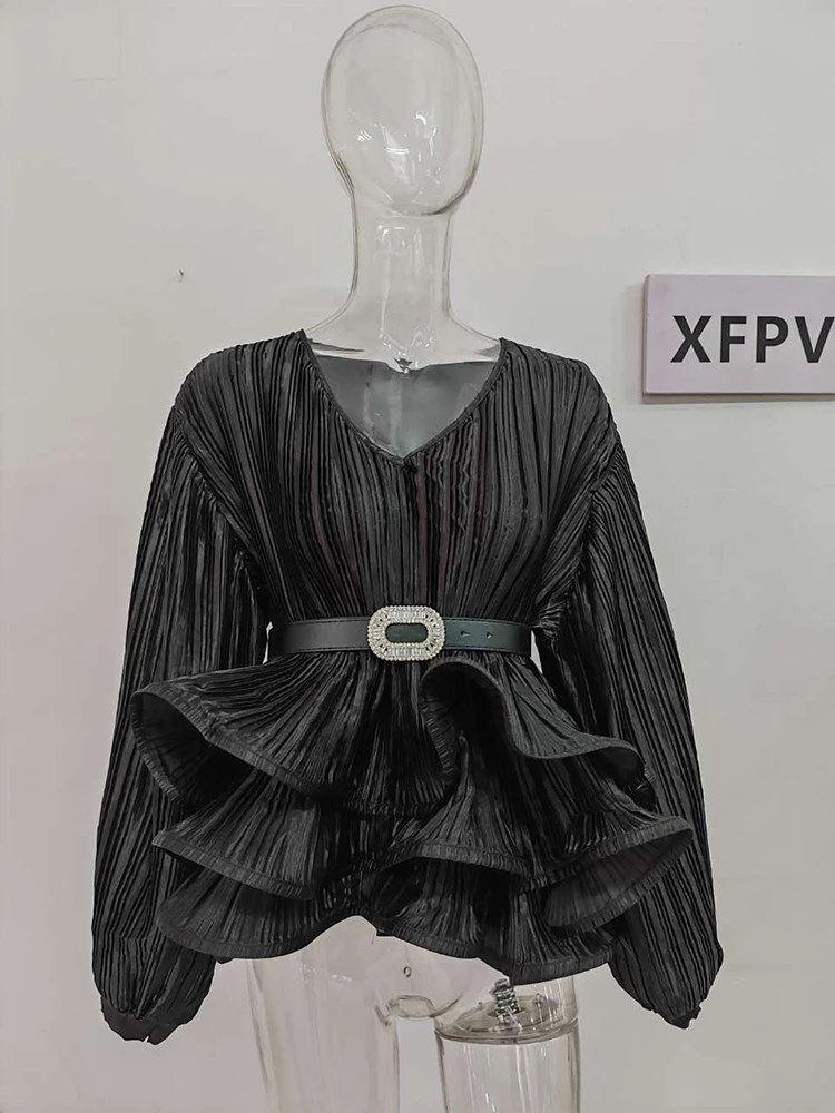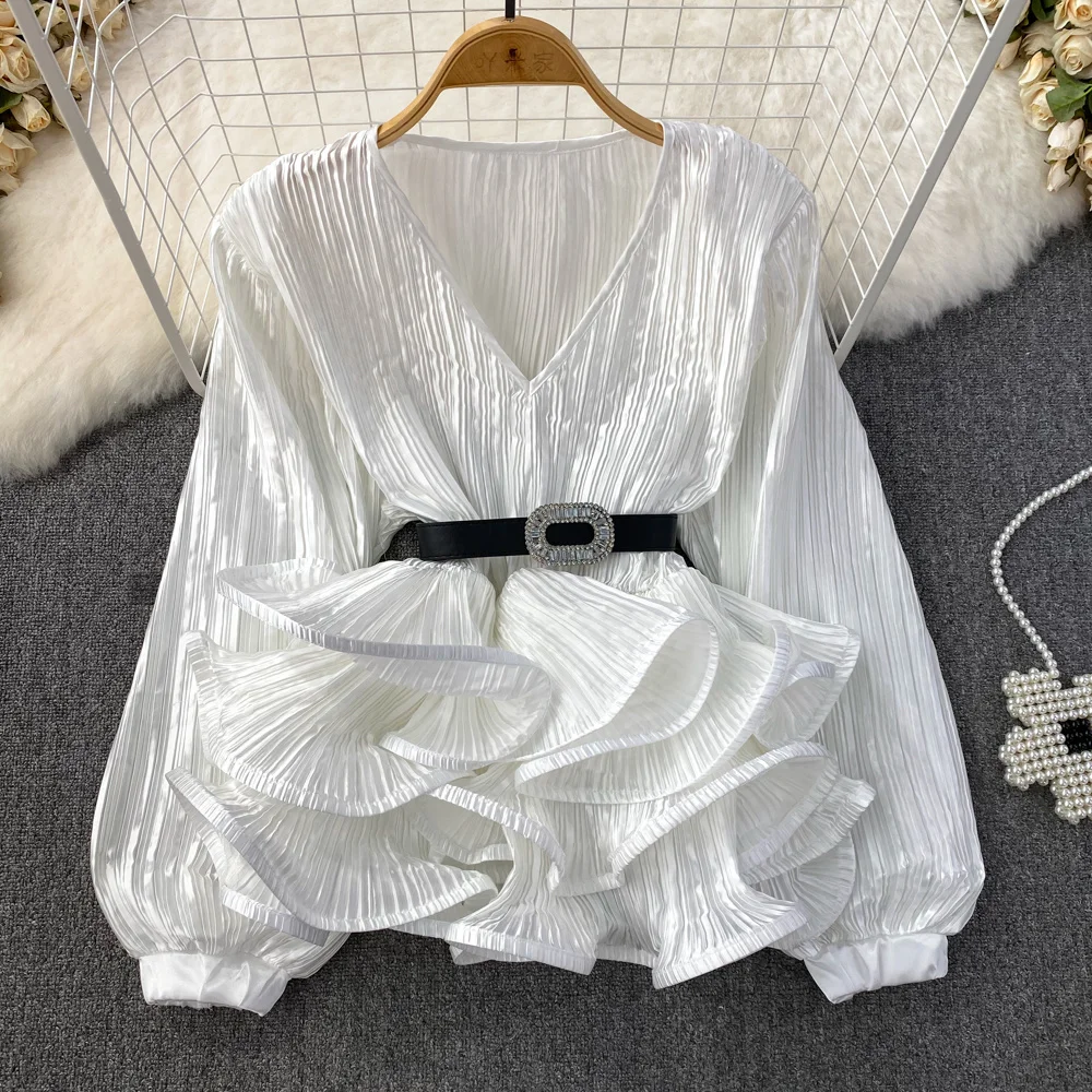 2023 Summer Fashion: Elegant Ruffle Blouse with Lantern Sleeves for Women - XFPV Y2k