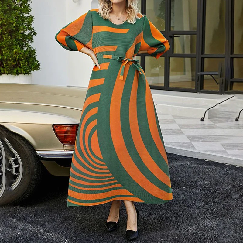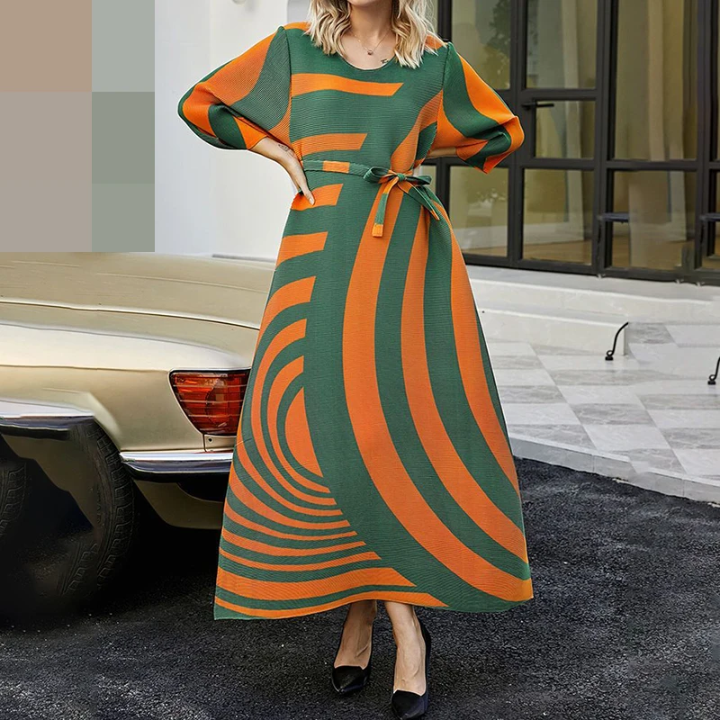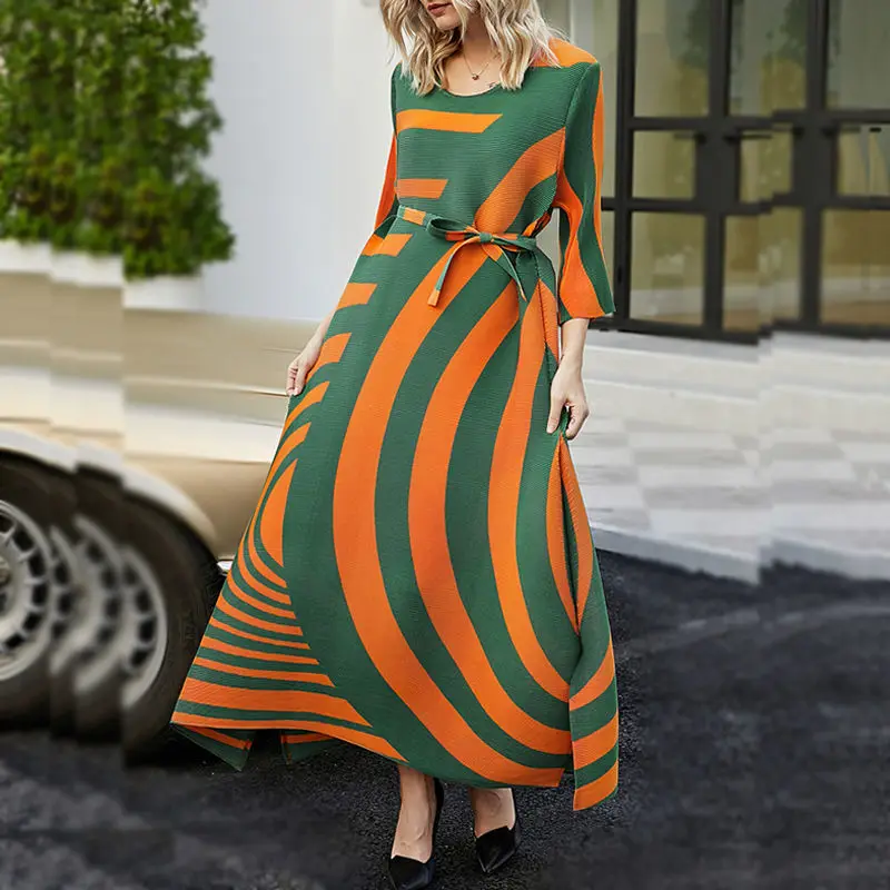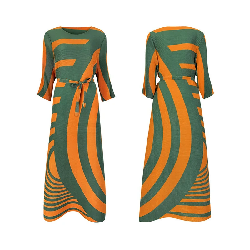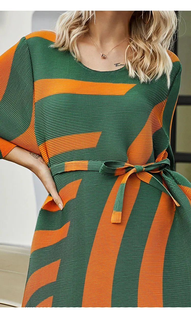 Introducing our newest addition to our Summer 2023 collection - the Pleated Women's Loose Fit Dress. This dress features a long, round neck and a large swing design, perfect for a day at the beach. With its loose fit, it offers comfort and freedom of movement, making it the perfect summer dress. The pleated detailing adds a touch of elegance, making it suitable for any occasion. Made with high-quality materials, this dress is a premium choice for any fashion-forward woman. Don't miss out on this limited time exclusive piece that will elevate your summer wardrobe. Get yours now and experience the perfect fit and style that our best-selling dress has to offer.