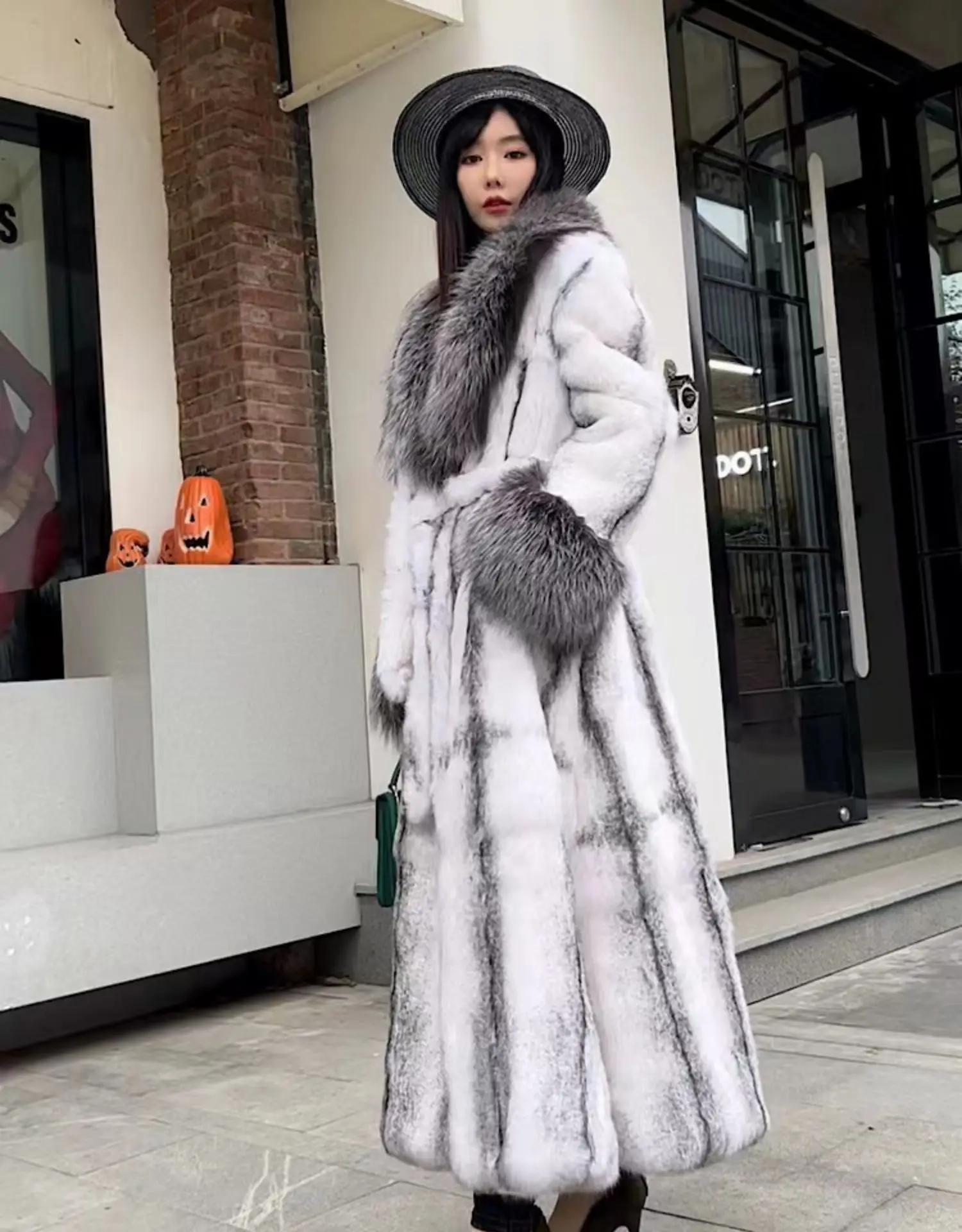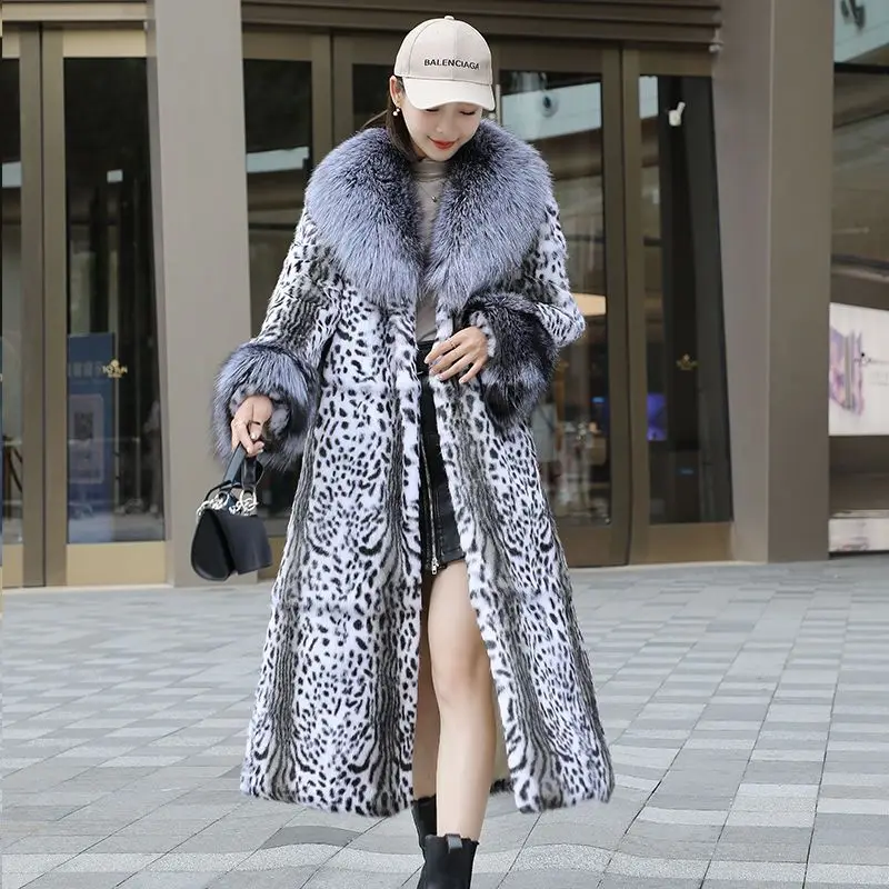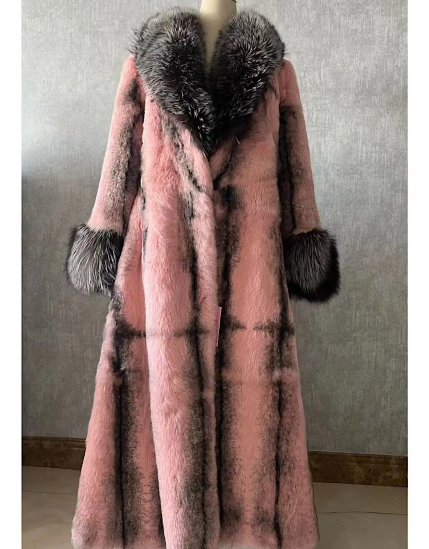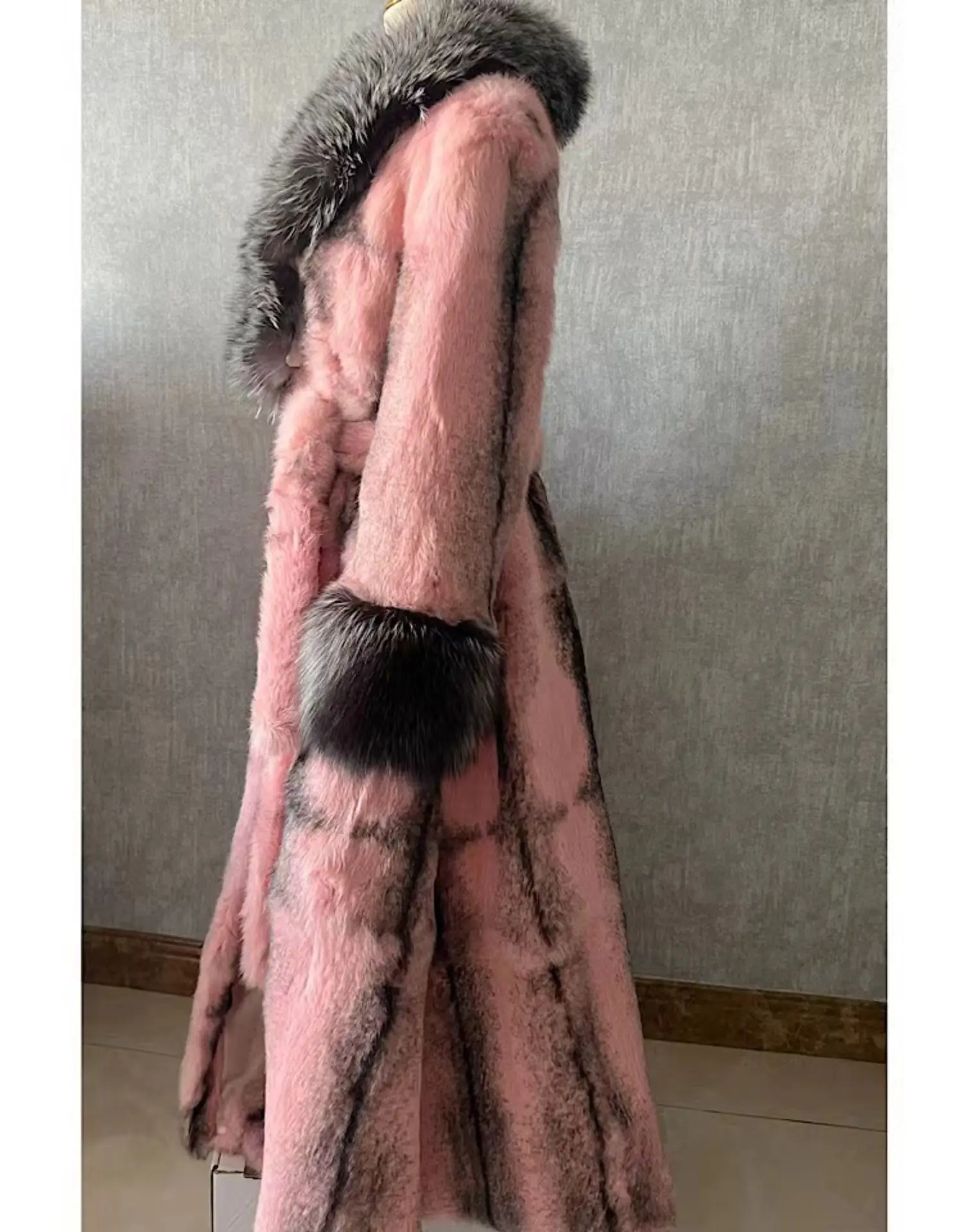 100% real natural wholeskin rabbit fur + fox fur collar+fox fur cuff