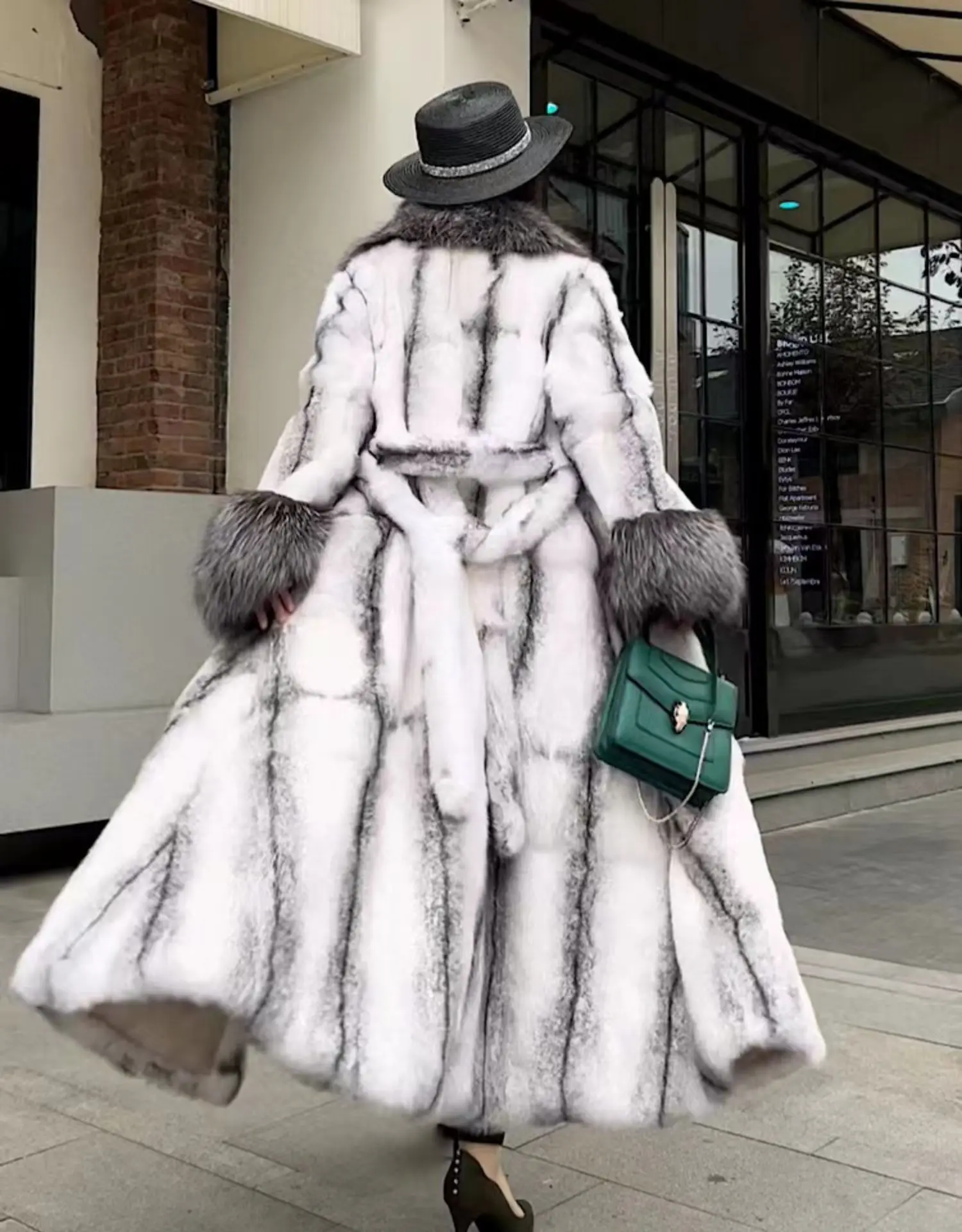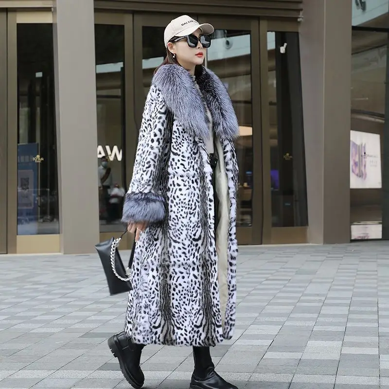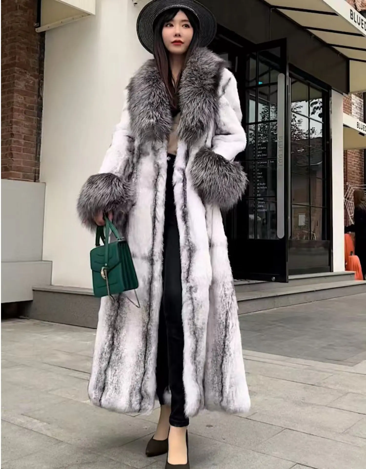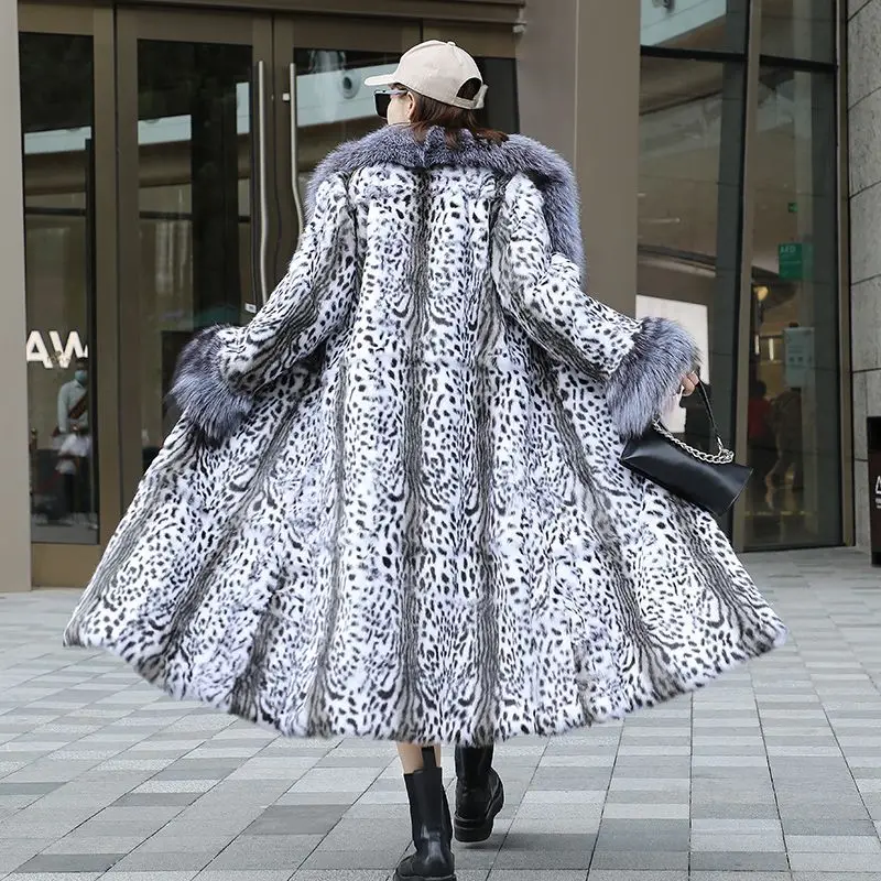 100% real natural wholeskin rabbit fur + fox fur collar+fox fur cuff