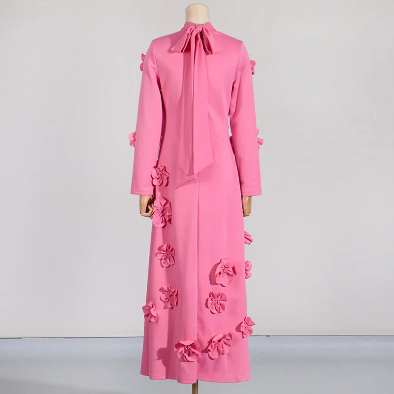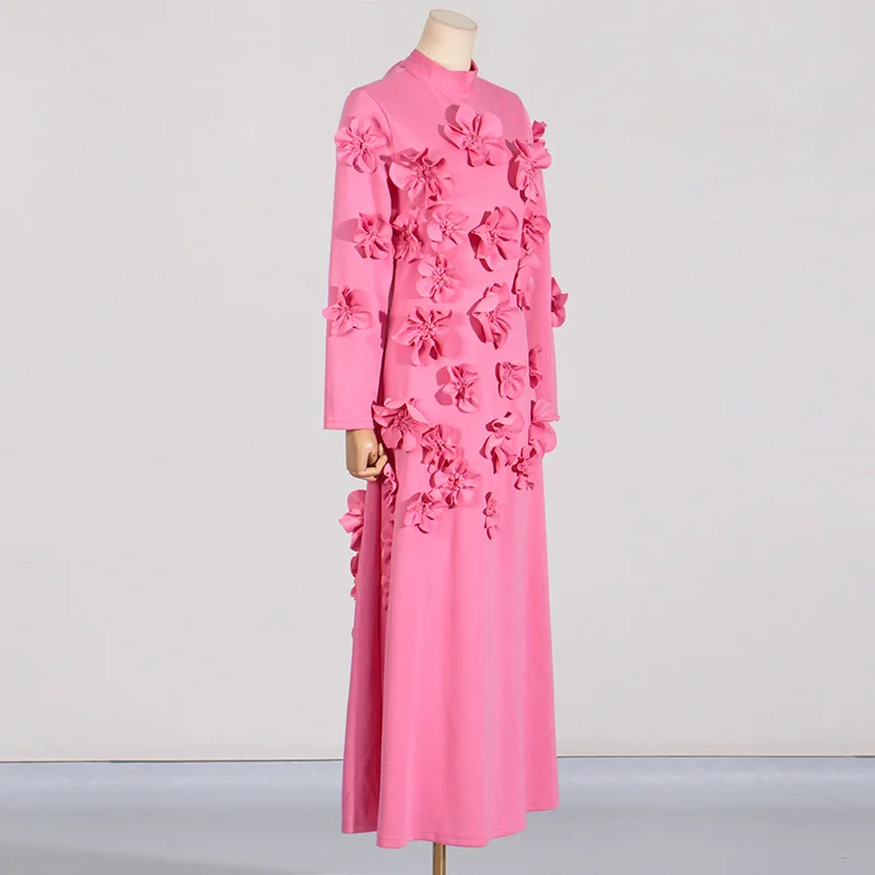 🌸 Floral Elegance Redefined - Stand out in style with our European long dress featuring intricate three-dimensional flower stitching. Perfect for the fall season, this dress boasts a stand collar and long sleeves for a chic and sophisticated look.