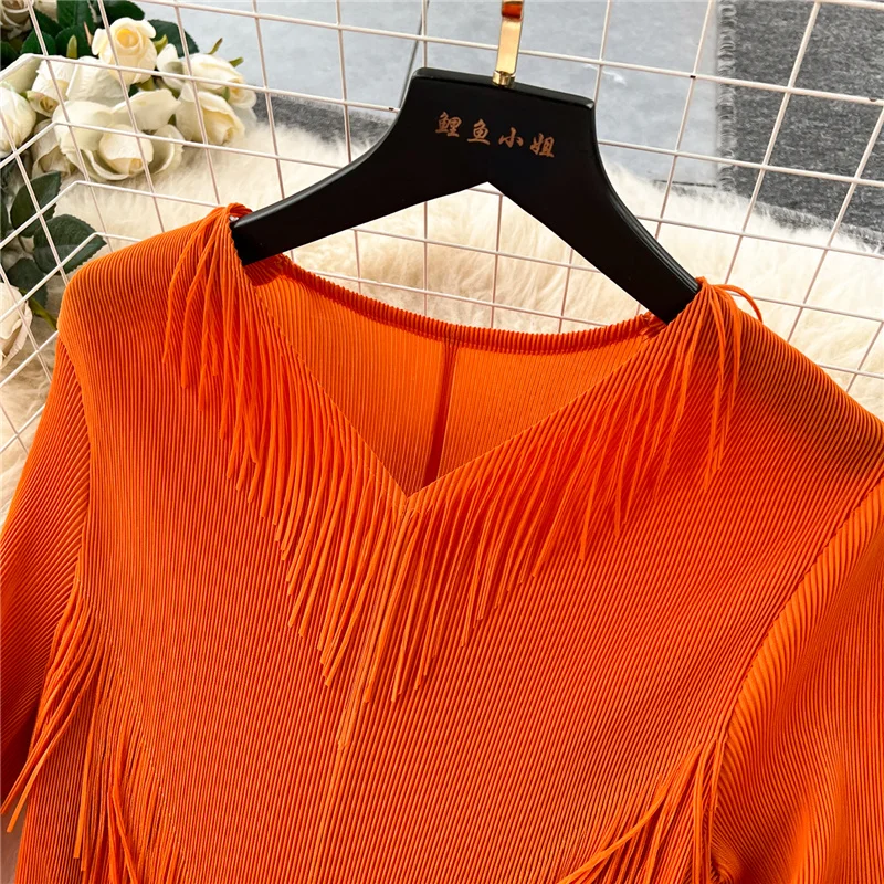 Introducing our new 2024 High-End Miyake V-Neck Tassel High Waist Midi A-line Dress! This stunning dress features 3D flower flare sleeves and a solid elegant design, making it the perfect choice for any evening occasion. The dress is available in one size, with a length of 126cm and a bust and waist range of 70-160cm. Its high-quality material and perfect fit will solve any wardrobe dilemmas, giving customers a confident and stylish look. Don't miss out on this limited time offer and be the best-dressed with our exclusive dress. Get yours now and experience the premium quality and design of our best-selling dress.