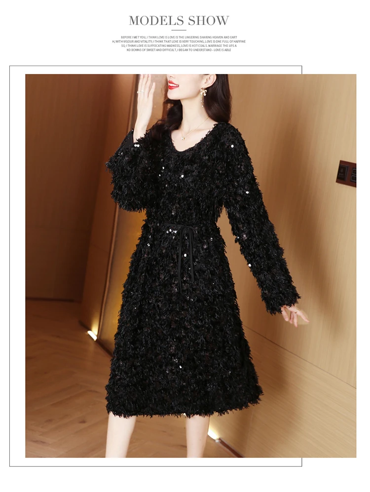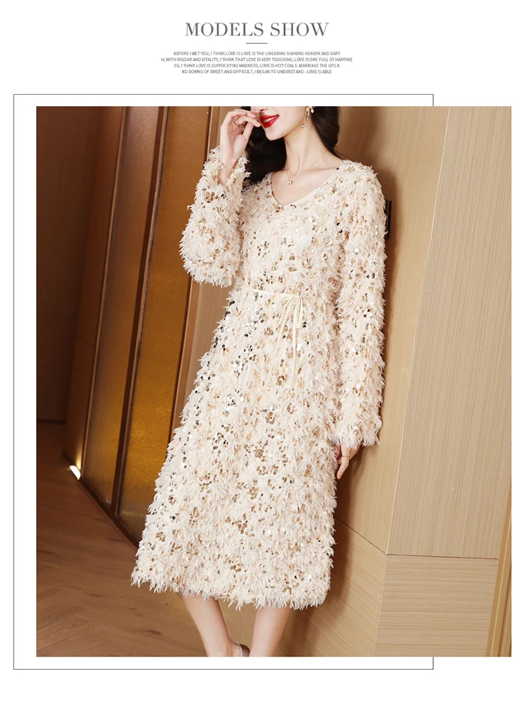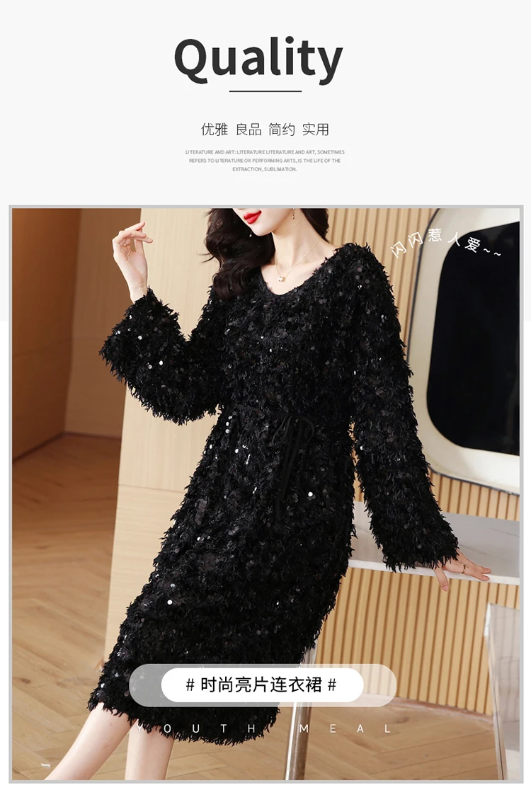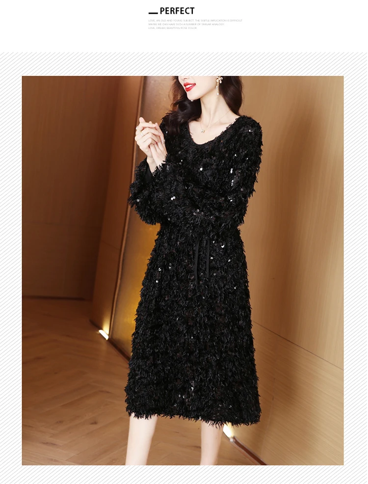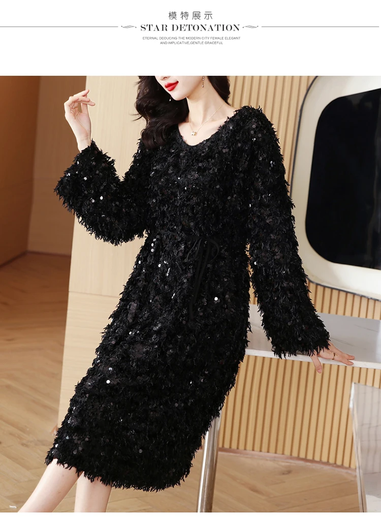 HUTI WJWYL New Arrival High Quality High Street Solid Sequins Dress for Special Events Autumn Winter Luxury Party Vestidos Women Elegant Bodycon Evening Dress