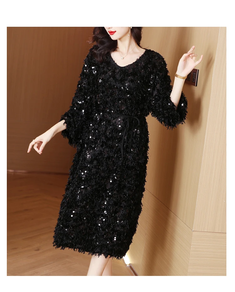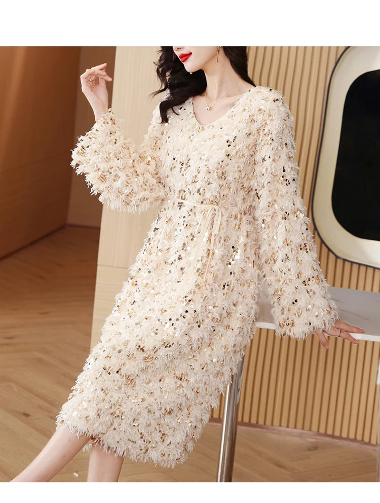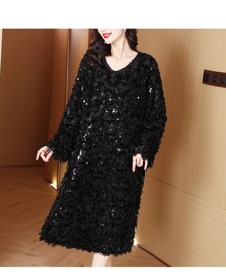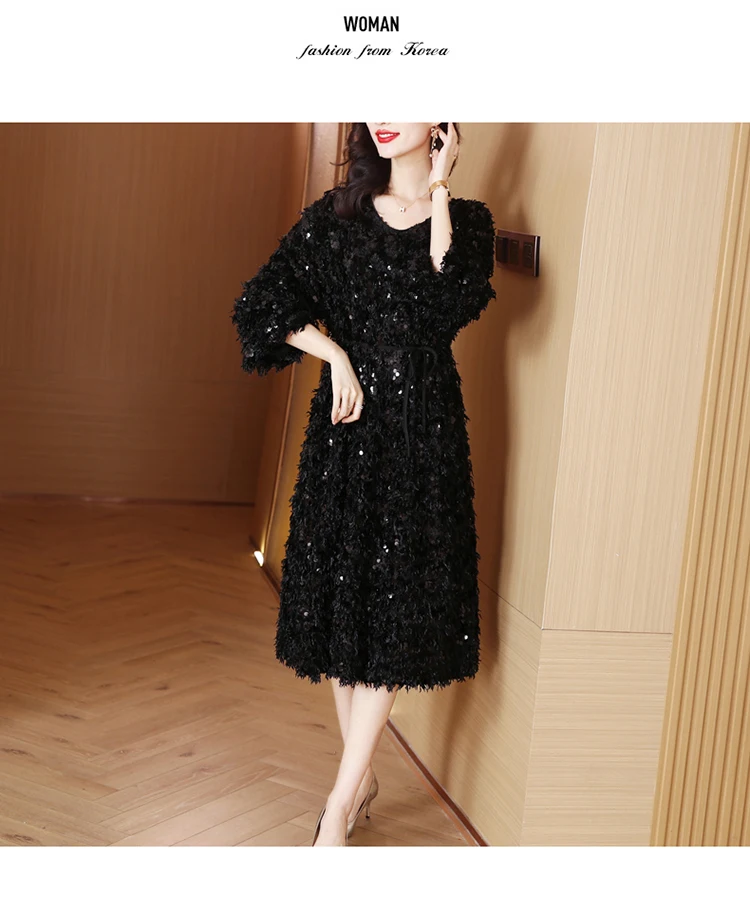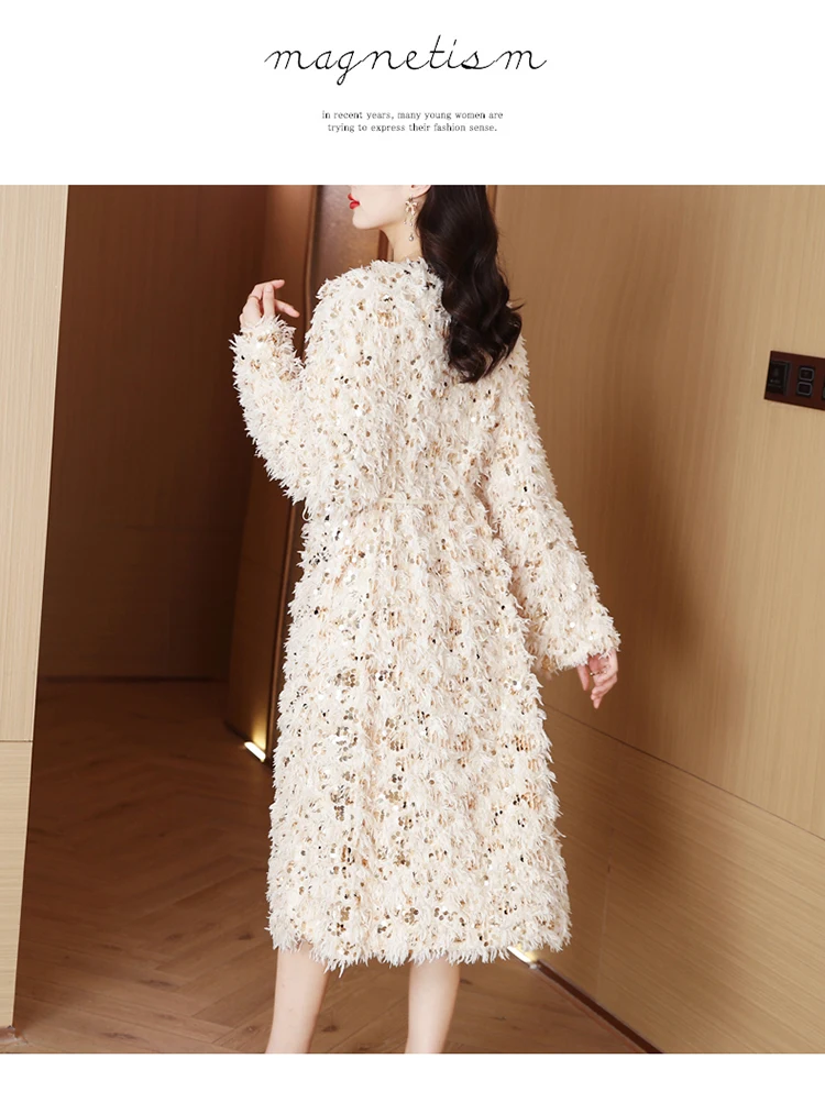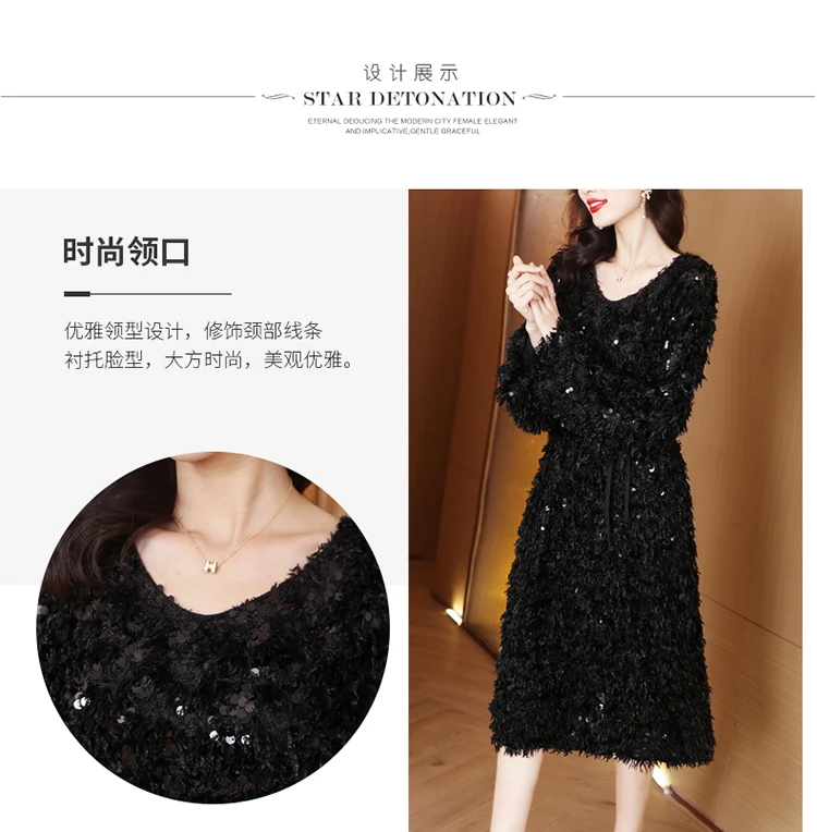 HUTI WJWYL New Arrival High Quality High Street Solid Sequins Dress for Special Events Autumn Winter Luxury Party Vestidos Women Elegant Bodycon Evening Dress