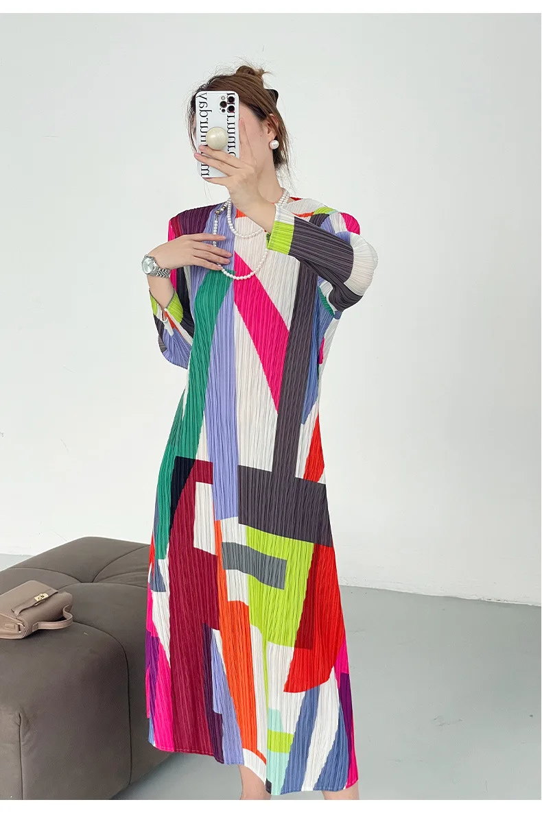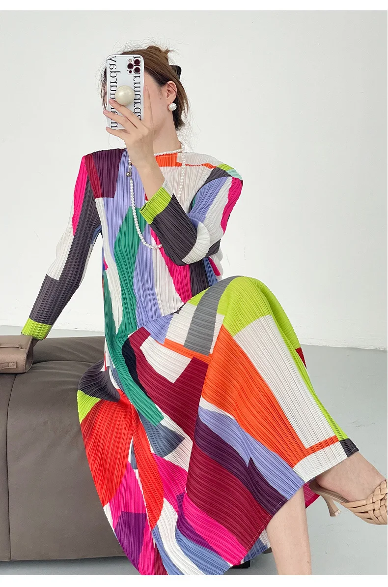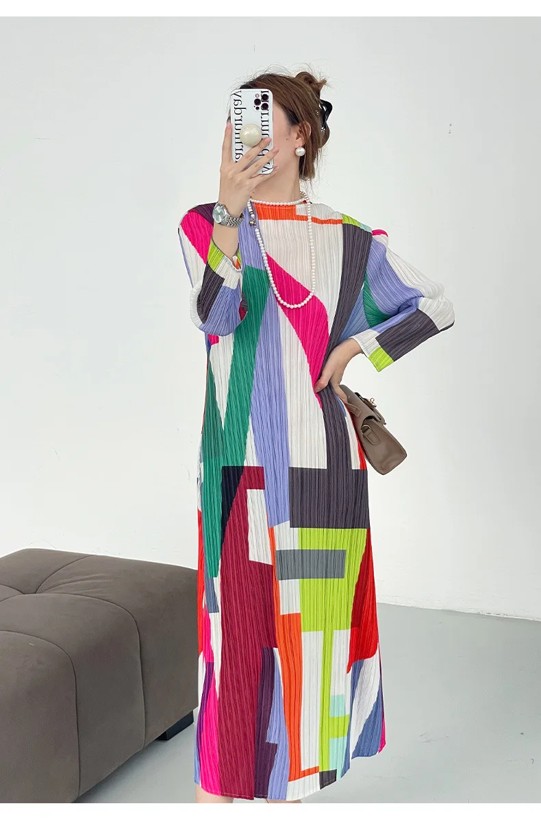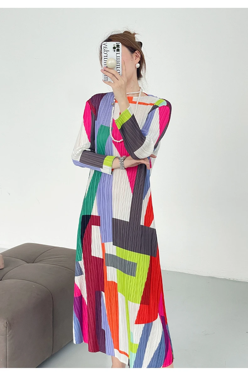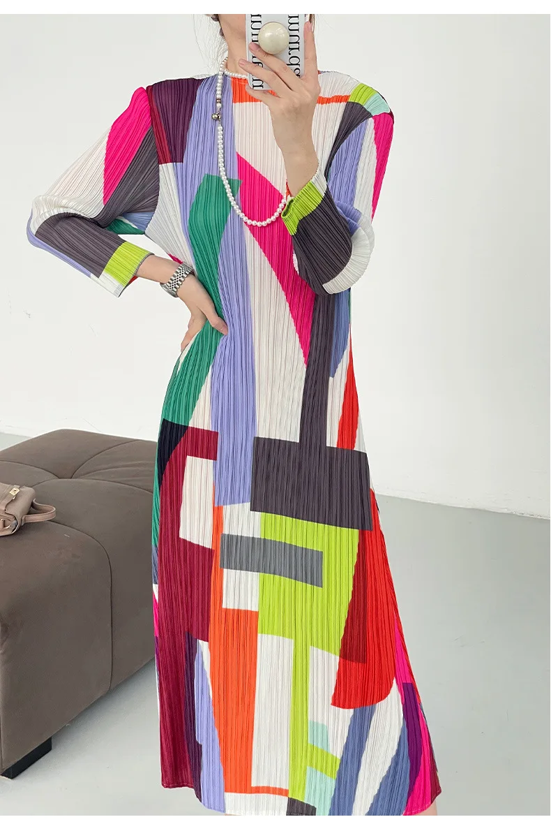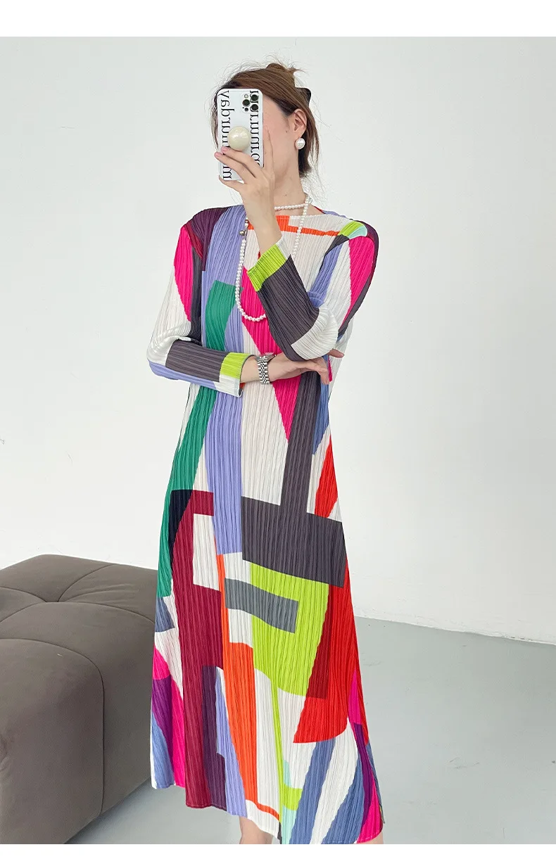 Introducing the Miyake Pleated 2024 Autumn French Minimalist Geometric Printed Dress - the perfect combination of feminine elegance and slim fitting style. Made with high-quality materials, this dress is designed to solve the problem of finding the perfect outfit for any occasion. With its one size fits all design, it offers a comfortable and flattering fit for all body types. The pleated skirt adds a touch of sophistication while the geometric print adds a modern twist. This limited time dress is a must-have for any fashion-forward individual looking for a premium and exclusive addition to their wardrobe. So why settle for ordinary when you can stand out in this best-selling dress that is sure to turn heads? Upgrade your wardrobe with the Miyake Pleated Dress today and experience the perfect fit and effortless style.