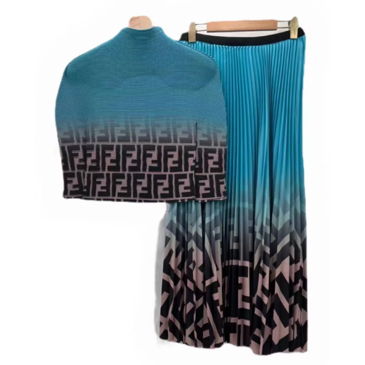Introducing the must-have Miyake Pleated Suit for the 2024 Spring Summer season. This new fashion printing design offers a perfect blend of style and comfort with its all-match large loose clothing and slim top+skirt combination. Solve your wardrobe dilemmas with this two-piece set that is both versatile and chic. Made with premium materials, this suit is a best-seller and is perfect for any occasion. Don't miss out on this exclusive limited time offer and upgrade your wardrobe with the Miyake Pleated Suit.
