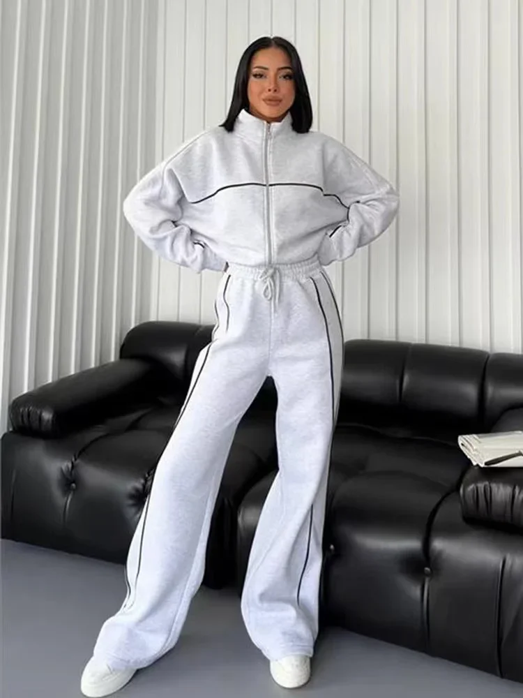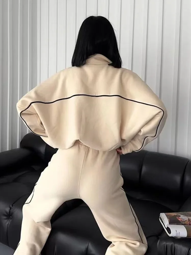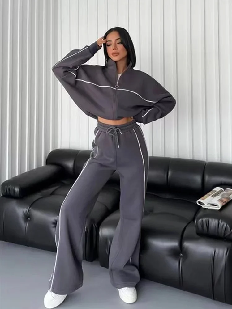 2024 New Casual Set Longsleeved Half High Collar Cardigan Sweater Lace up Striped Pants Women Clothing Casual Two Piece Suits