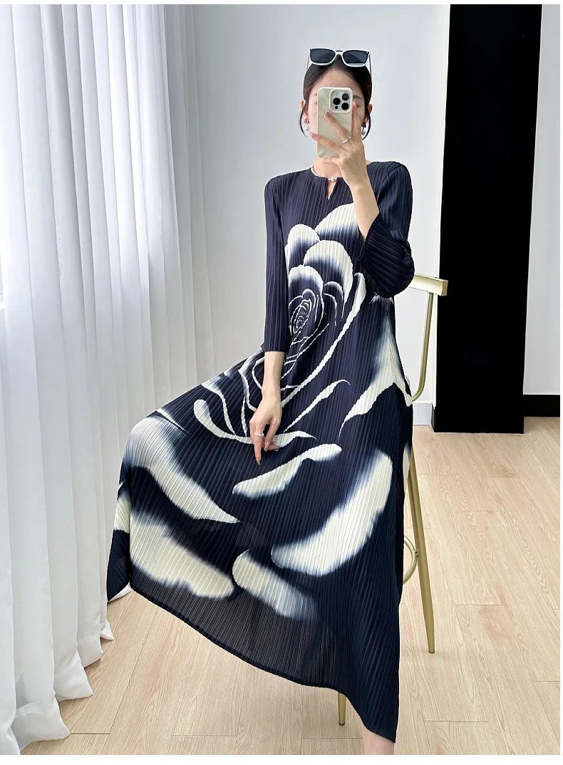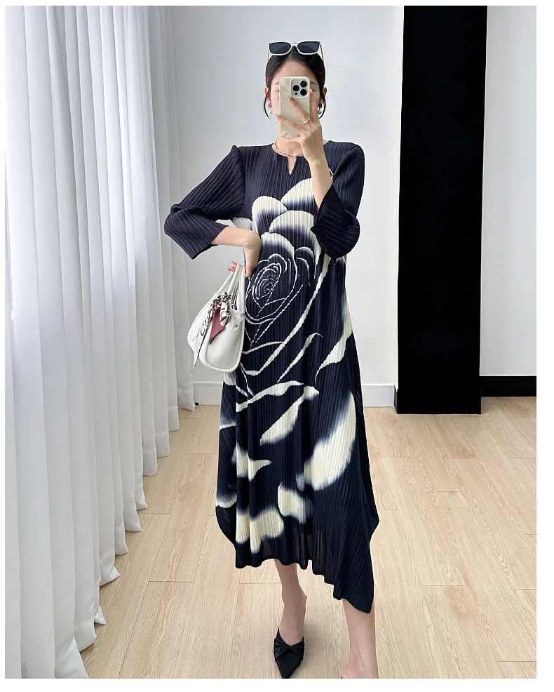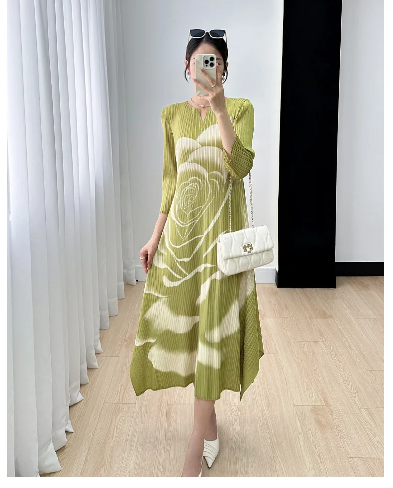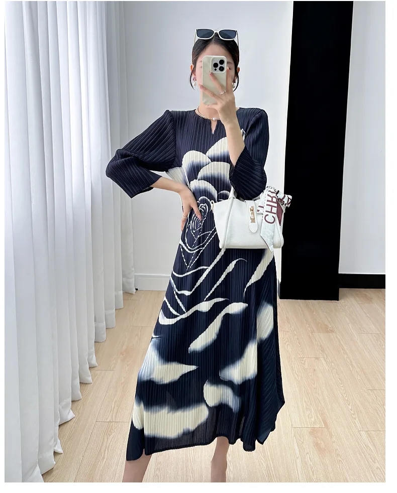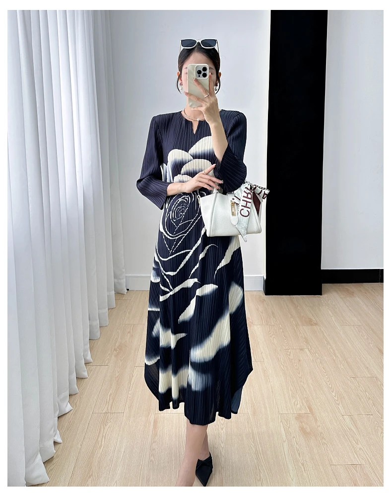 Introducing the Miyake Dress, the perfect addition to any woman's wardrobe. This premium dress is designed for the modern woman, with its fashion-forward print and simple yet elegant style. The 3/4 sleeves and long length make it suitable for both spring and autumn, providing versatility for any occasion. Made with high-quality materials, this dress offers a perfect fit and is available in a range of sizes. Say goodbye to the hassle of finding the right outfit, the Miyake Dress has got you covered. Limited time offer, get yours now!