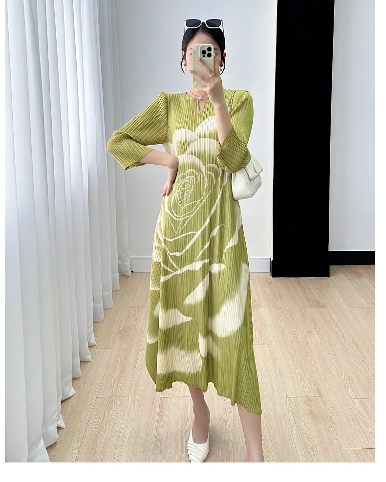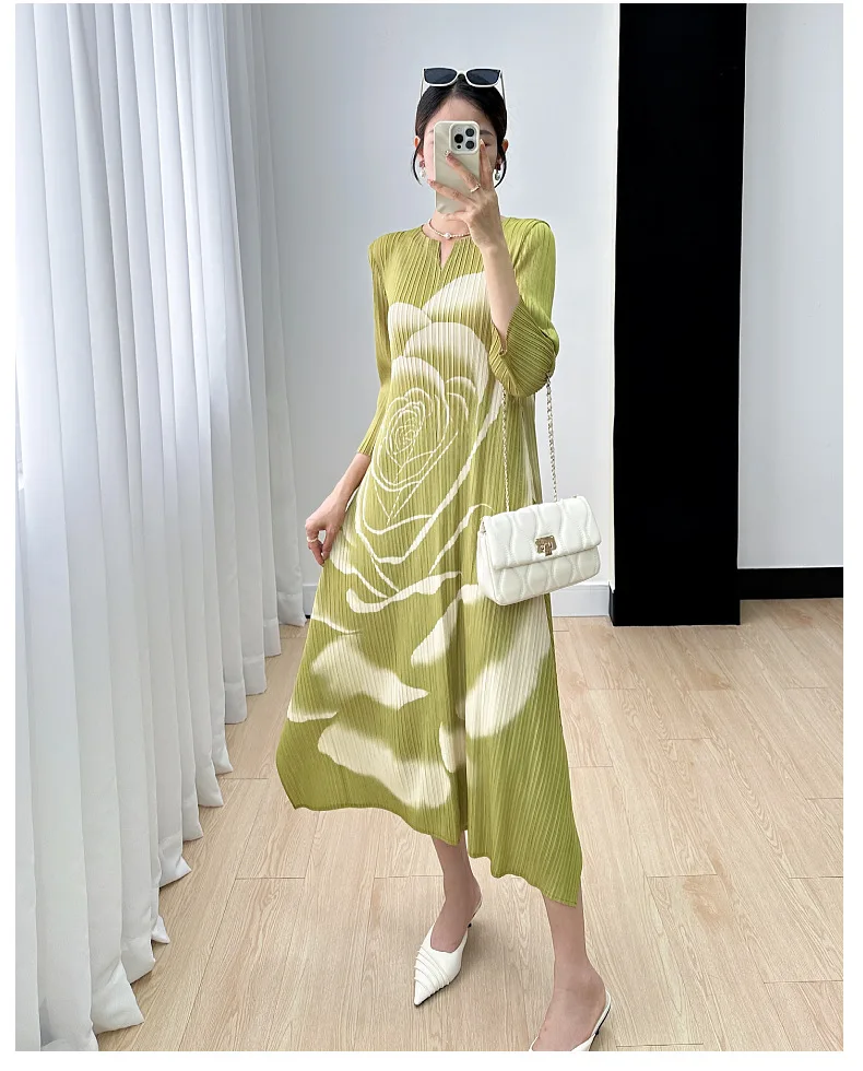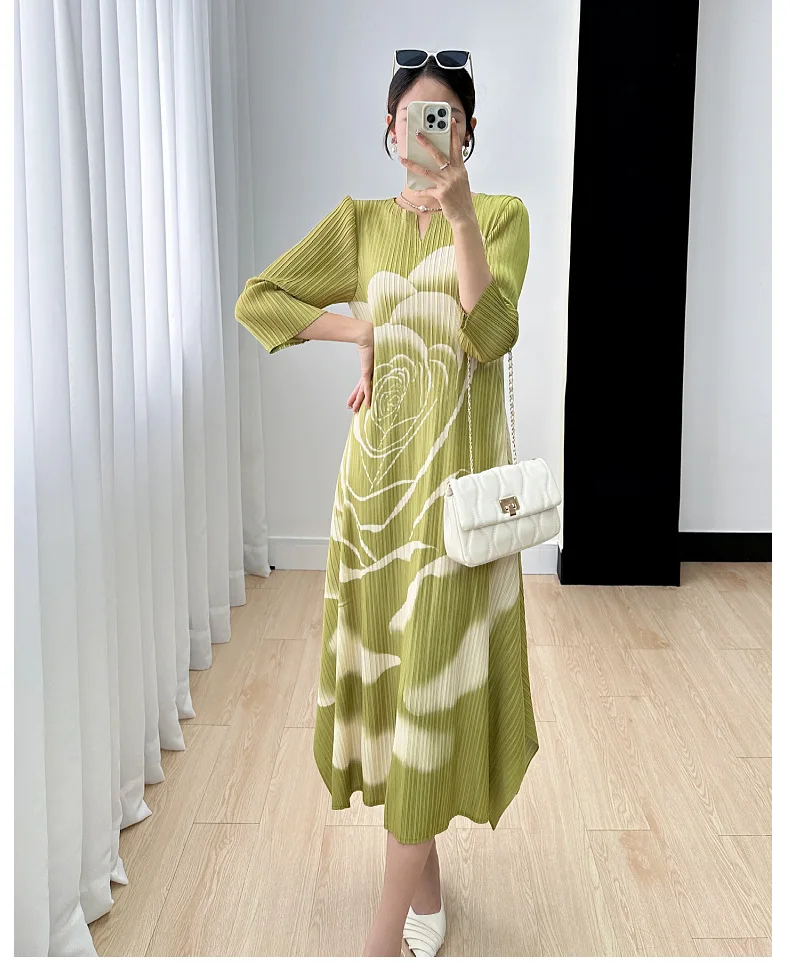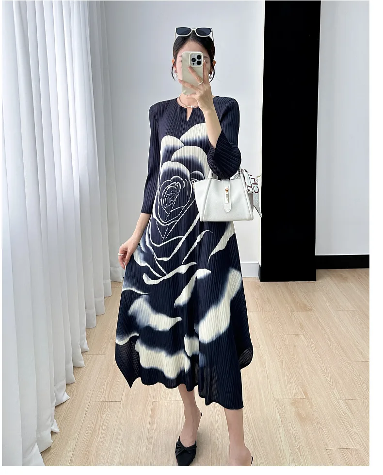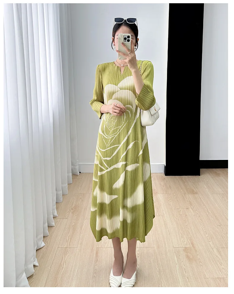 Introducing the Miyake Dress, the perfect addition to any woman's wardrobe. This premium dress is designed for the modern woman, with its fashion-forward print and simple yet elegant style. The 3/4 sleeves and long length make it suitable for both spring and autumn, providing versatility for any occasion. Made with high-quality materials, this dress offers a perfect fit and is available in a range of sizes. Say goodbye to the hassle of finding the right outfit, the Miyake Dress has got you covered. Limited time offer, get yours now!
