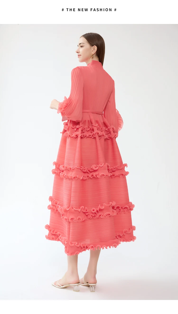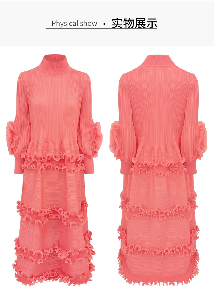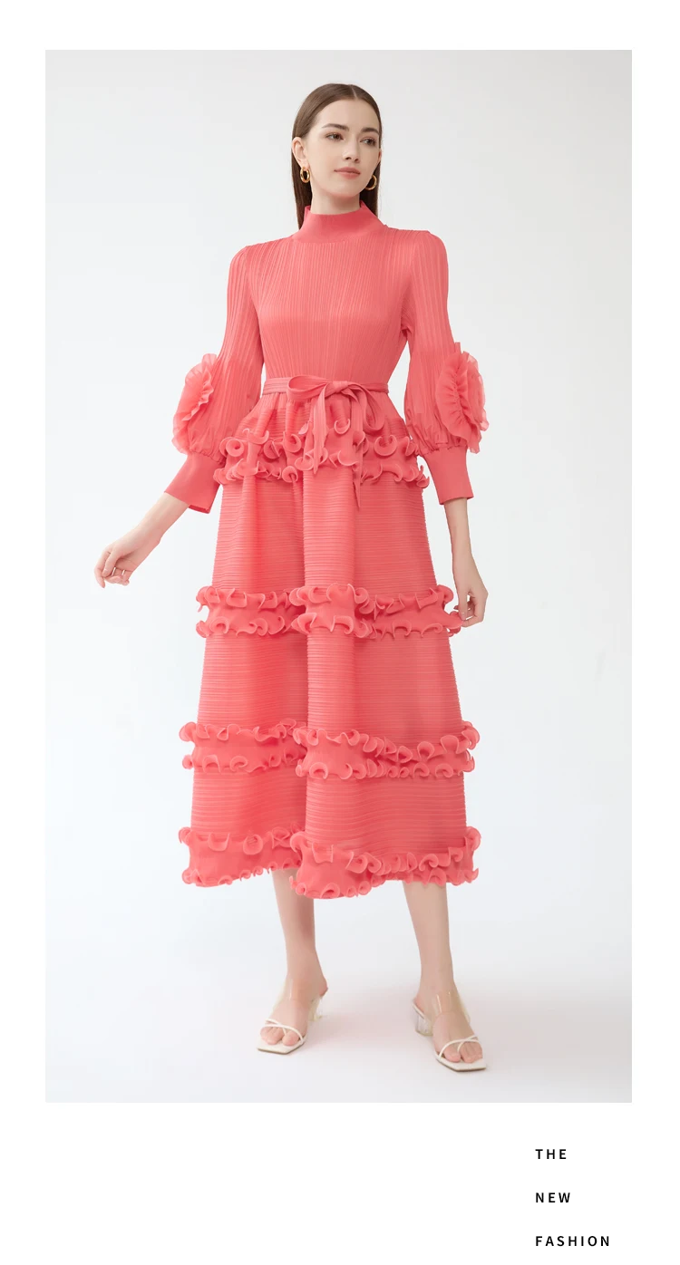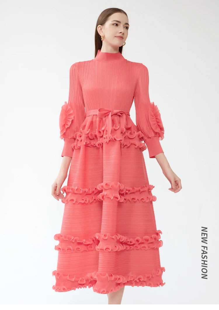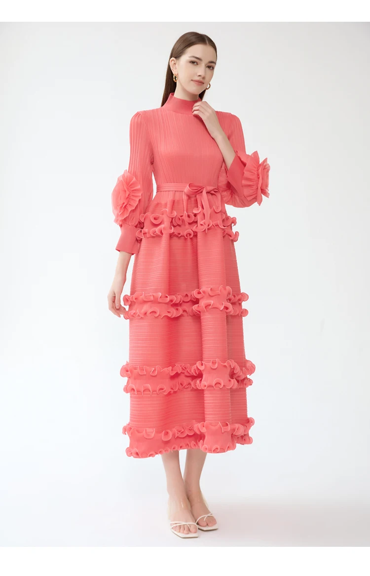 Introducing our newest addition to the 2024 collection, the Miyake Pleated Wave Cut Belt Elastic Waist Petal Sleeve Dress. Designed by our original designer, this dress features 3D appliques and a unique wave cut belt that accentuates your waistline. Made with high-quality materials, this dress is available in plus sizes and is perfect for any occasion. Its pleated design and petal sleeves add a touch of elegance, while the elastic waist ensures a comfortable and perfect fit. Wash it gently for easy maintenance and enjoy the lightweight feel. Upgrade your wardrobe with this premium dress, a limited time best seller that solves all your outfit dilemmas.