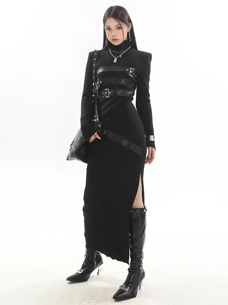 Introducing our SHENGPALAE Leather Spliced Knit Dress - the perfect blend of elegance and comfort for the modern woman. This dress features a unique split design and a trendy turtleneck, making it a versatile piece for any occasion. The solid color and leather splicing add a touch of sophistication, while the soft knit material ensures a cozy fit. With multiple sizes available and a recommended hand wash, this dress is designed to solve all your fashion dilemmas. Upgrade your wardrobe with this premium dress and stand out as the best dressed. Limited time offer, so get yours today!