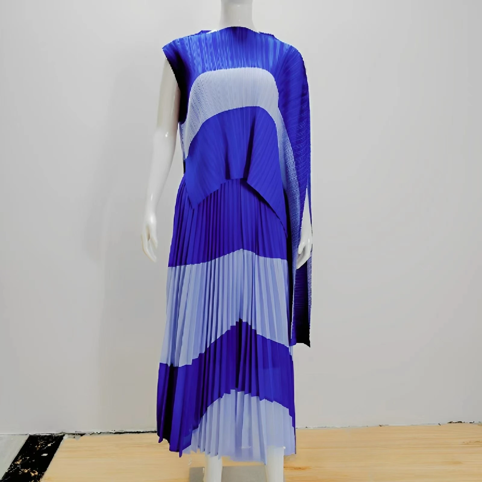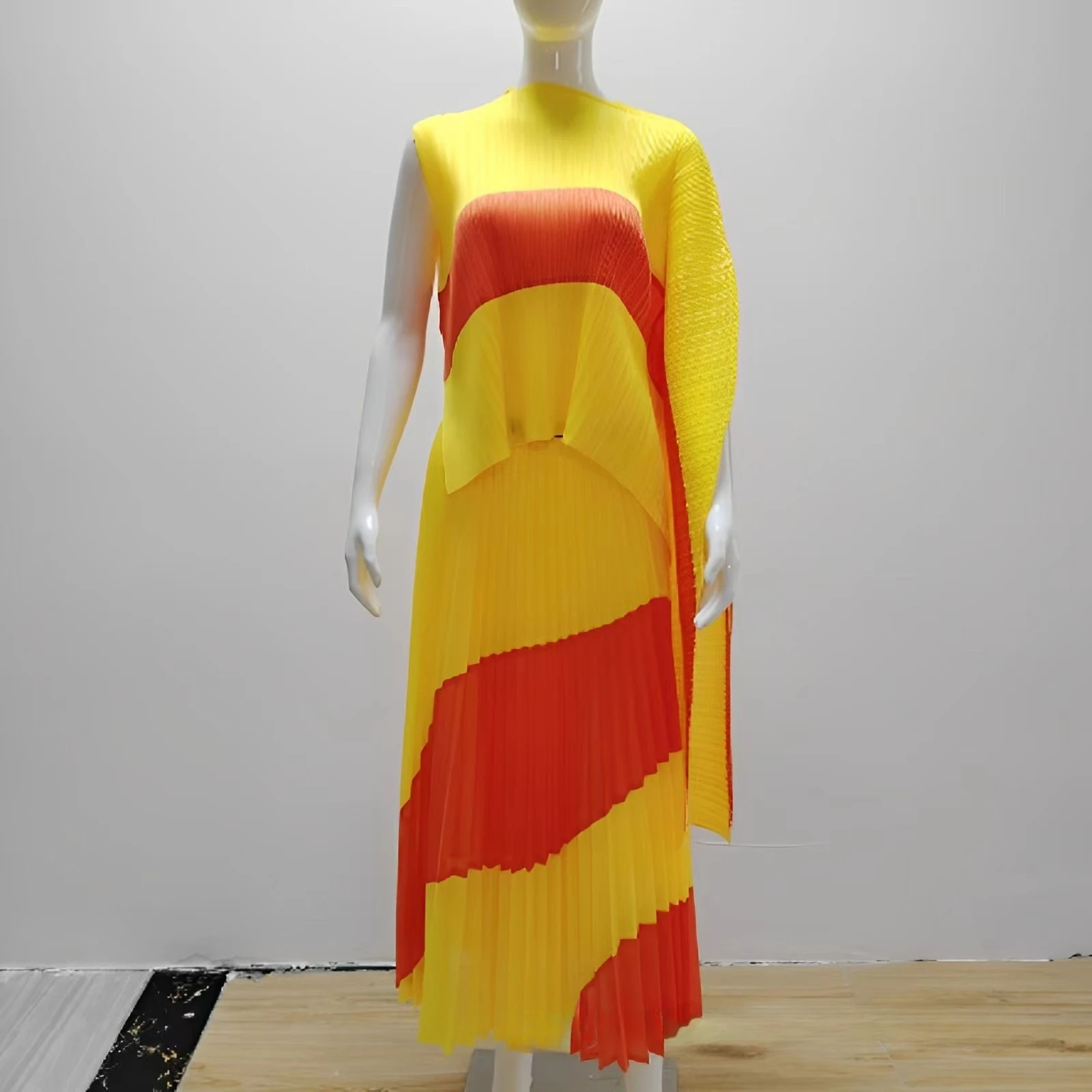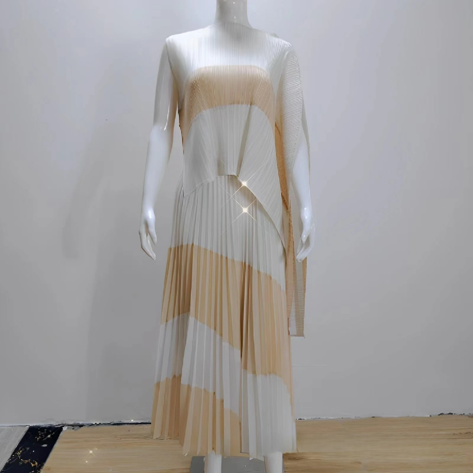 Introducing the must-have fashion piece for 2024 - the Miyaki Dress Pleated Design Two-piece Set. This premium set features a fashionable patchwork color design and an irregular top and skirt, making it a unique and eye-catching addition to any wardrobe. Say goodbye to the hassle of finding the perfect outfit, as this set offers a perfect fit for any occasion. Limited time only, be sure to grab this best-selling and exclusive set before it's gone. Elevate your style with the Miyaki Dress and gain confidence in every step.