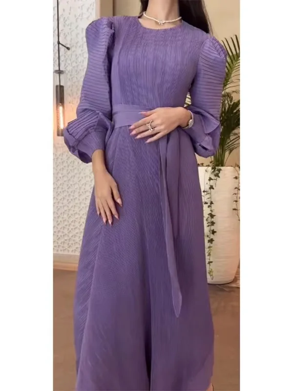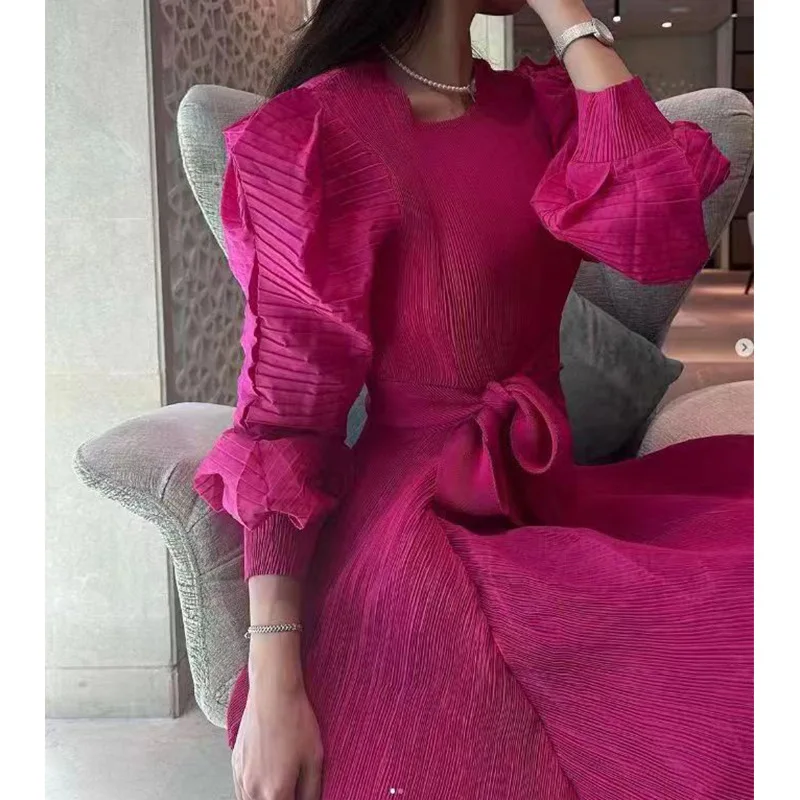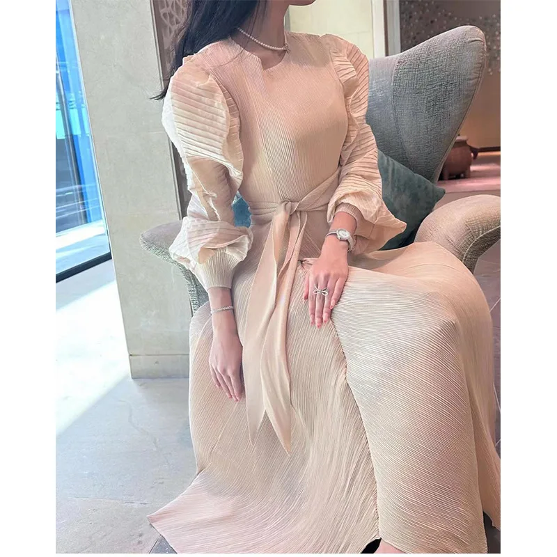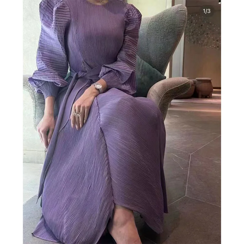 Introducing the Miyake Pleated Long Skirt, the perfect addition to your wardrobe for the 2024 Spring and Autumn seasons. This skirt features a slim fit and a lace-up design, giving you a flattering and stylish look. Made with high-quality materials, it offers a perfect fit and is available in a range of sizes. The skirt is also equipped with a slim belt, adding a touch of elegance to your outfit. Its pleated design adds texture and movement, making it a versatile piece for any occasion. With a length of 135 cm and a sleeve length of 52 cm, this skirt is designed to fit women of different body types. Plus, with its easy light washing method, maintenance is a breeze. So why wait? Upgrade your wardrobe with this premium long skirt and be the best-dressed wherever you go. Limited time offer, get yours now!