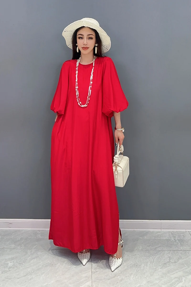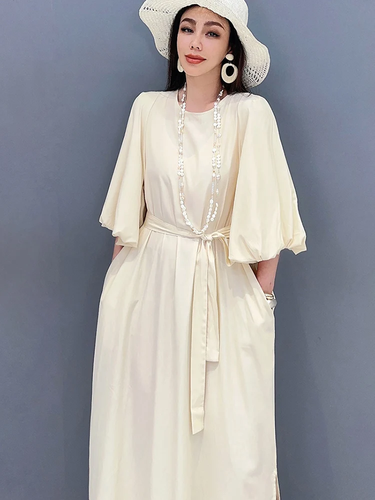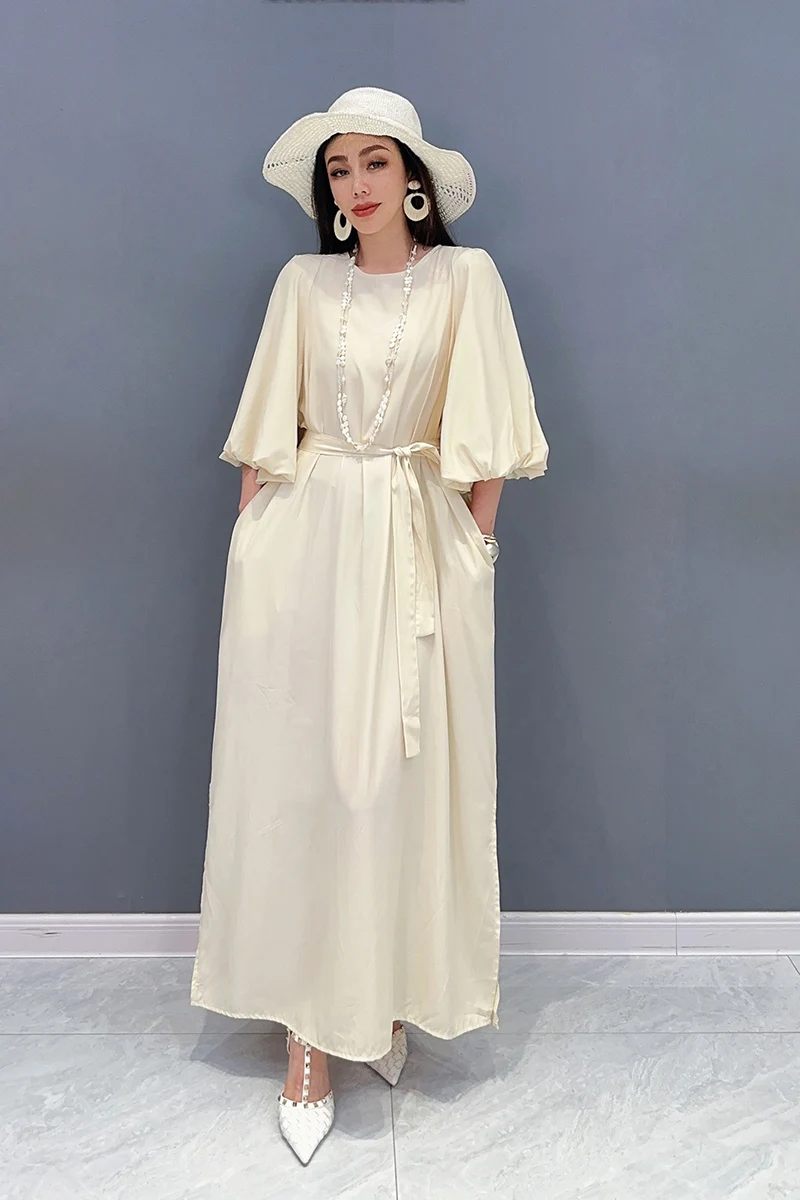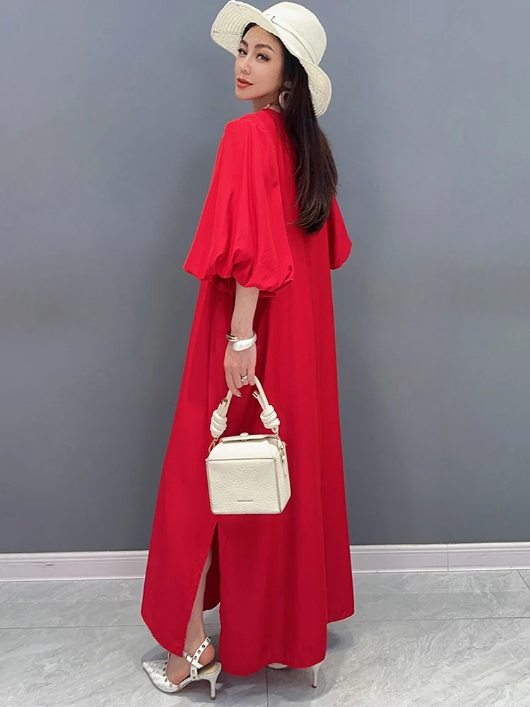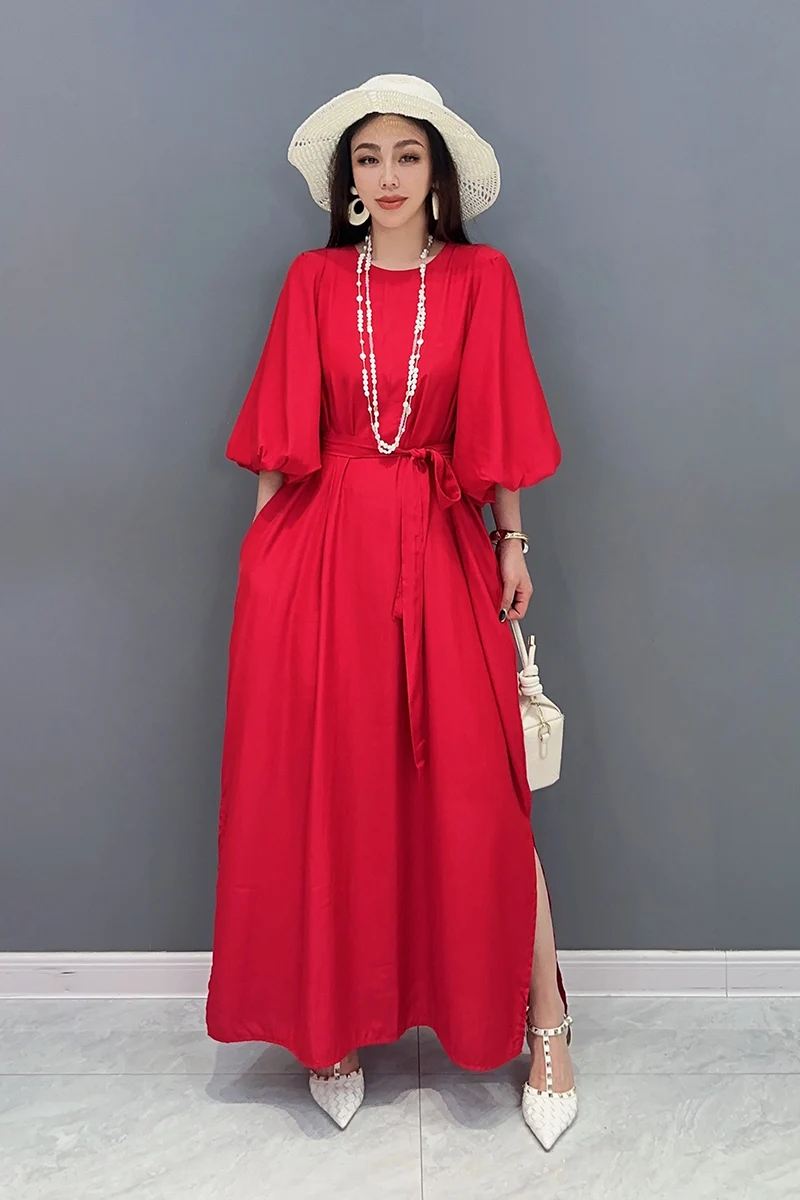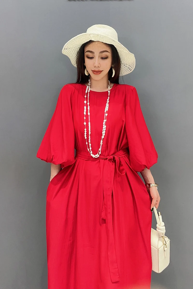 Introducing our SHENGPALAE Solid Bubble Sleeves Loose Lace up Long Dress, the perfect combination of fashion and elegance for the modern woman. Made with high-quality materials, this dress boasts a loose fit and bubble sleeves for a comfortable and stylish look. The lace-up design adds a touch of uniqueness to the overall design. Our dress is perfect for the 2024 spring season and is a must-have for any fashionable lady. Plus, with its versatile design, it can be dressed up or down for any occasion. Hand washing is recommended to maintain the quality of the dress. Don't miss out on this limited time offer and add this best-selling dress to your wardrobe today.