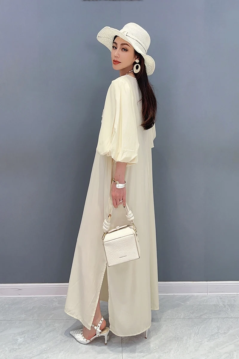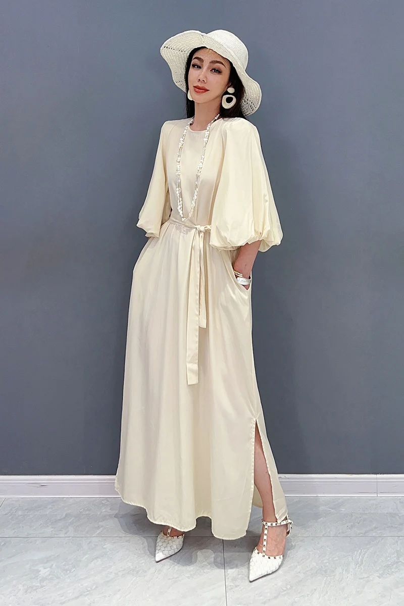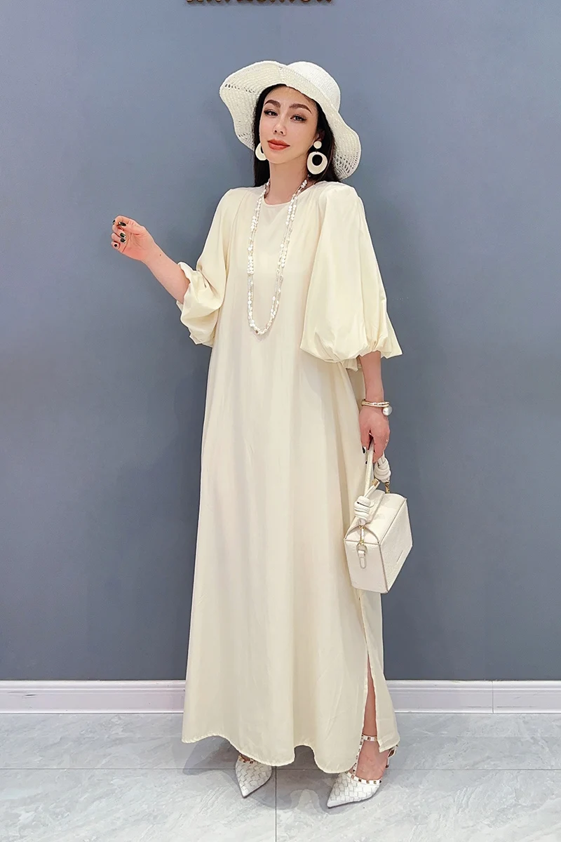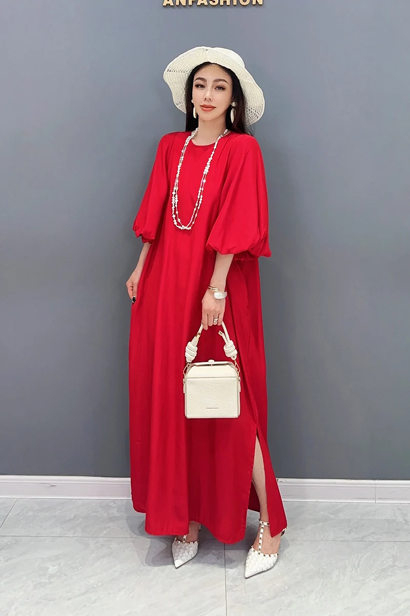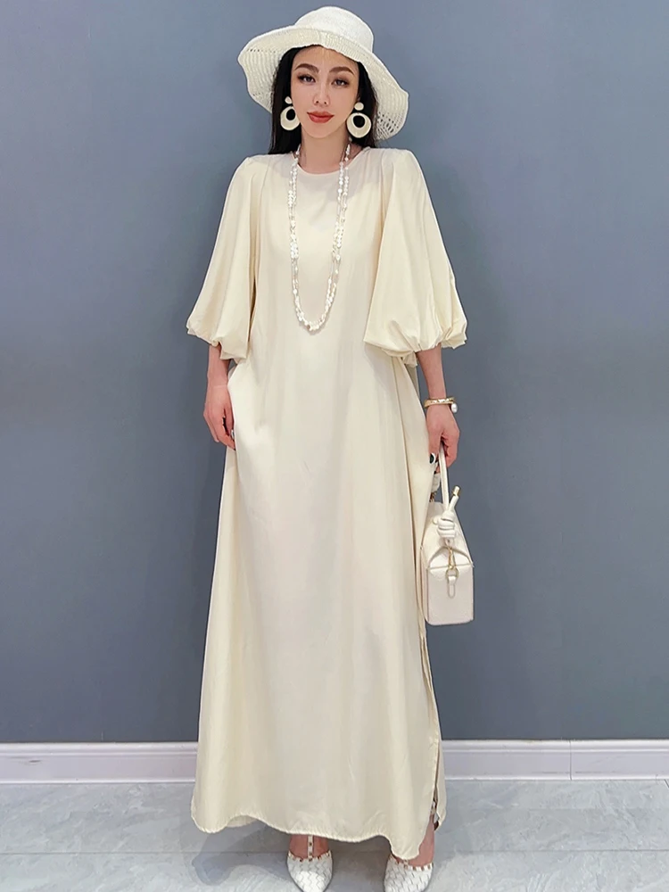 Introducing our SHENGPALAE Solid Bubble Sleeves Loose Lace up Long Dress, the perfect combination of fashion and elegance for the modern woman. Made with high-quality materials, this dress boasts a loose fit and bubble sleeves for a comfortable and stylish look. The lace-up design adds a touch of uniqueness to the overall design. Our dress is perfect for the 2024 spring season and is a must-have for any fashionable lady. Plus, with its versatile design, it can be dressed up or down for any occasion. Hand washing is recommended to maintain the quality of the dress. Don't miss out on this limited time offer and add this best-selling dress to your wardrobe today.