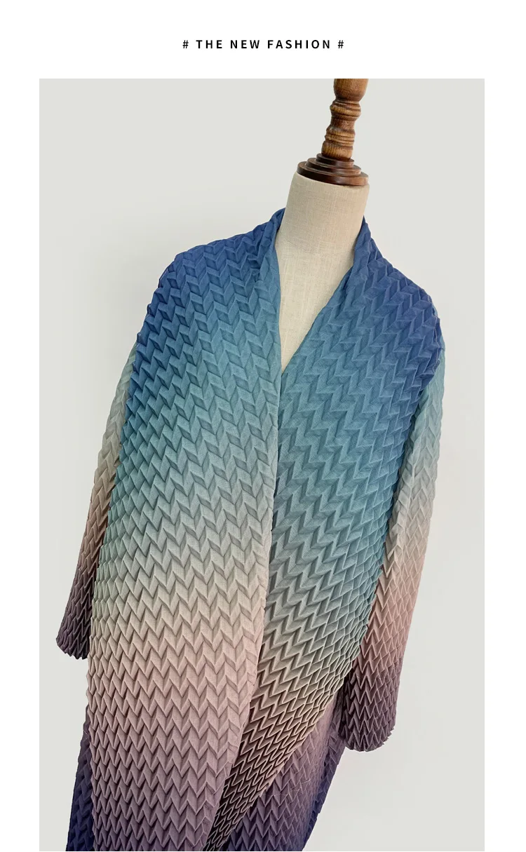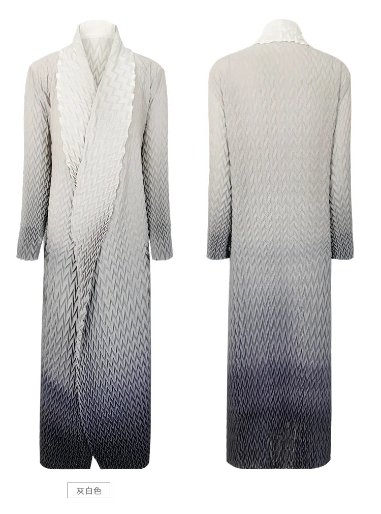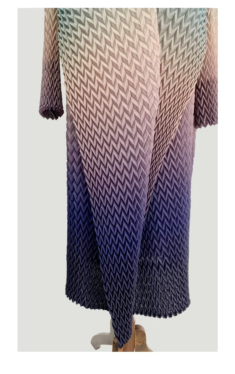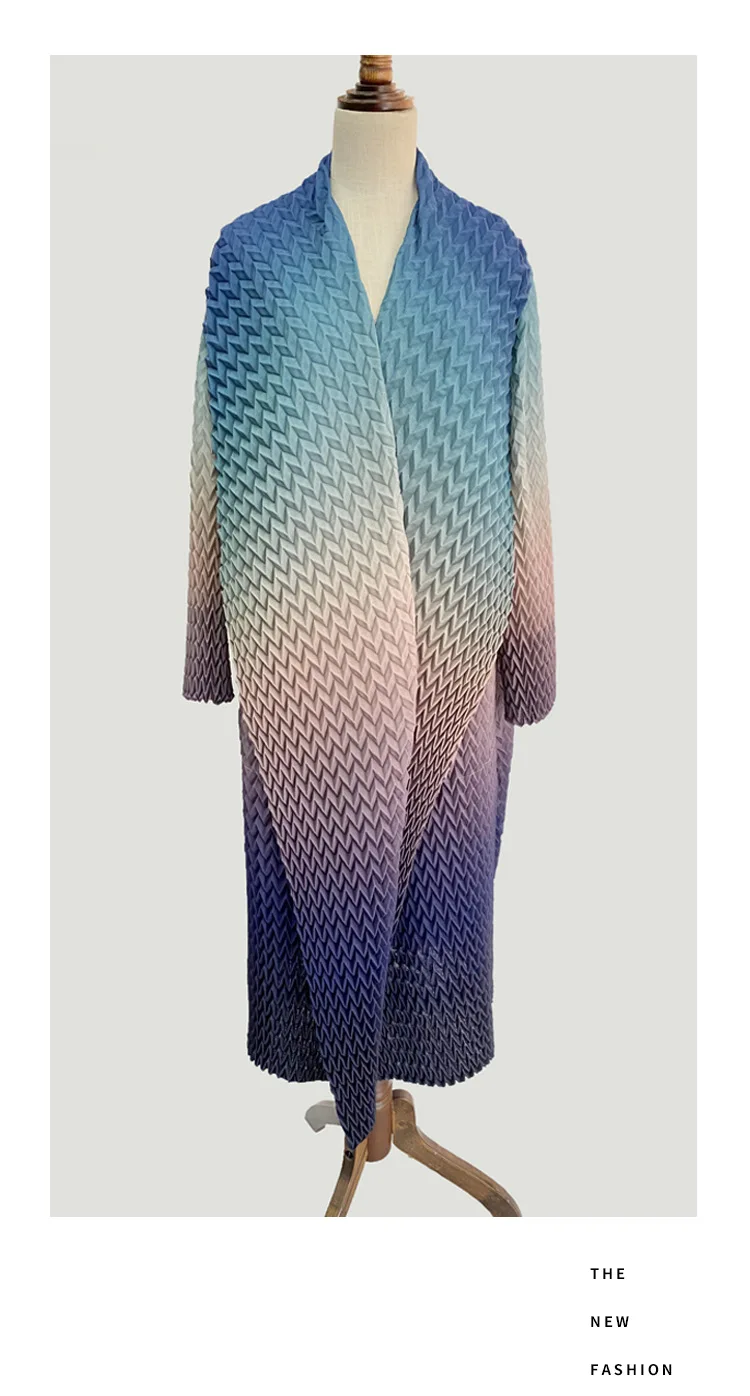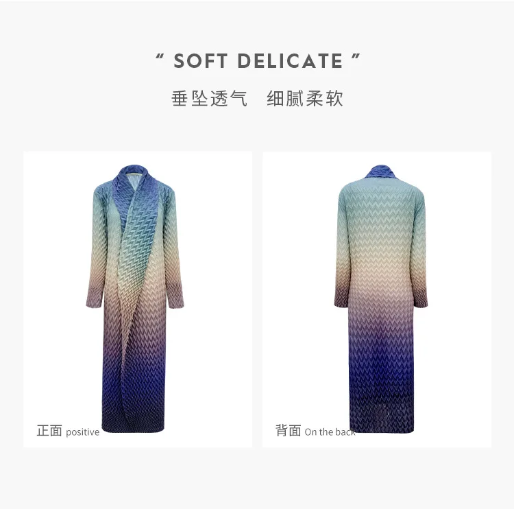 Introducing our YUDX Miyake Gradient Pleated Long Sleeve Cardigan Scarf Neck Women's Long Temperament Commuter Dress, the perfect addition to your 2024 Spring wardrobe. Made with premium materials and designed with a flattering pleated silhouette, this dress is the ultimate combination of style and comfort. The gradient design adds a touch of uniqueness, making it a best seller. With a bust size of 120cm and a length of 126cm, it offers the perfect fit for all body types. The scarf neck adds an exclusive touch and can be styled in multiple ways. On the go or for a special occasion, this dress is perfect for any event. Limited time offer, so get yours now and solve all your fashion dilemmas with this versatile piece.