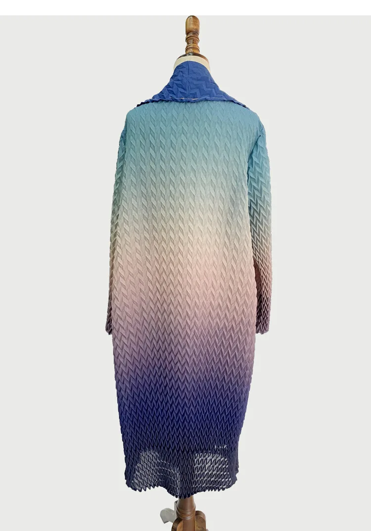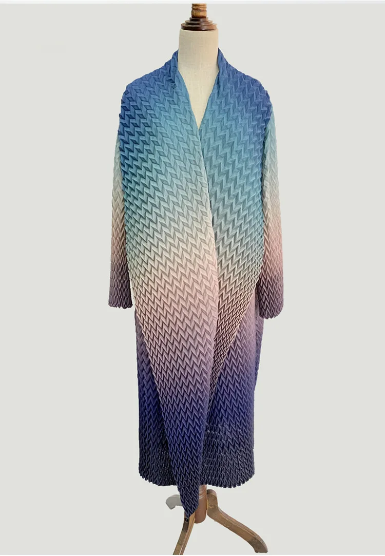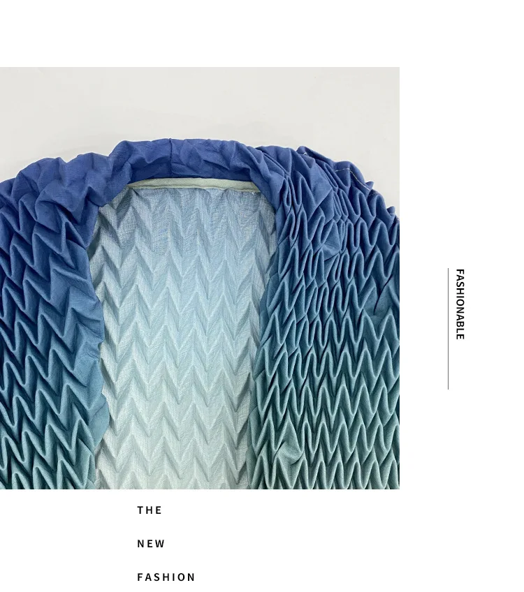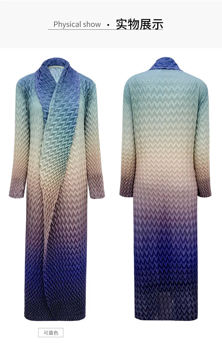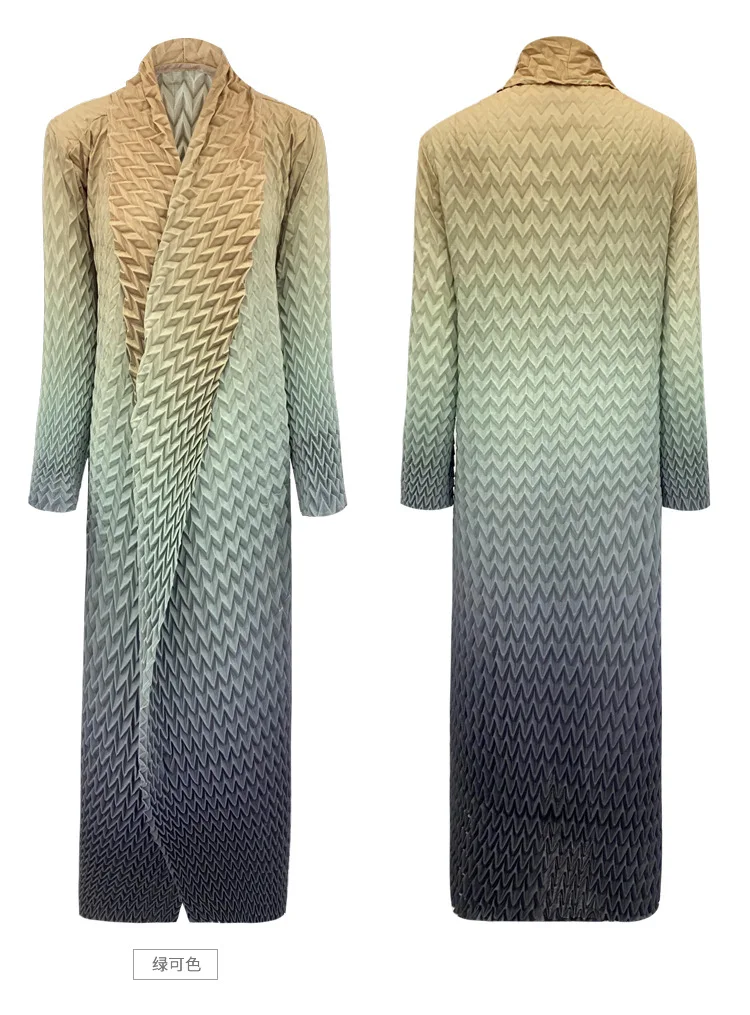 Introducing our YUDX Miyake Gradient Pleated Long Sleeve Cardigan Scarf Neck Women's Long Temperament Commuter Dress, the perfect addition to your 2024 Spring wardrobe. Made with premium materials and designed with a flattering pleated silhouette, this dress is the ultimate combination of style and comfort. The gradient design adds a touch of uniqueness, making it a best seller. With a bust size of 120cm and a length of 126cm, it offers the perfect fit for all body types. The scarf neck adds an exclusive touch and can be styled in multiple ways. On the go or for a special occasion, this dress is perfect for any event. Limited time offer, so get yours now and solve all your fashion dilemmas with this versatile piece.
