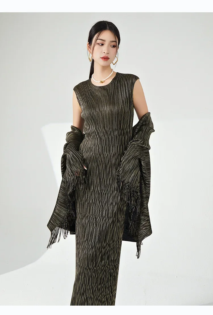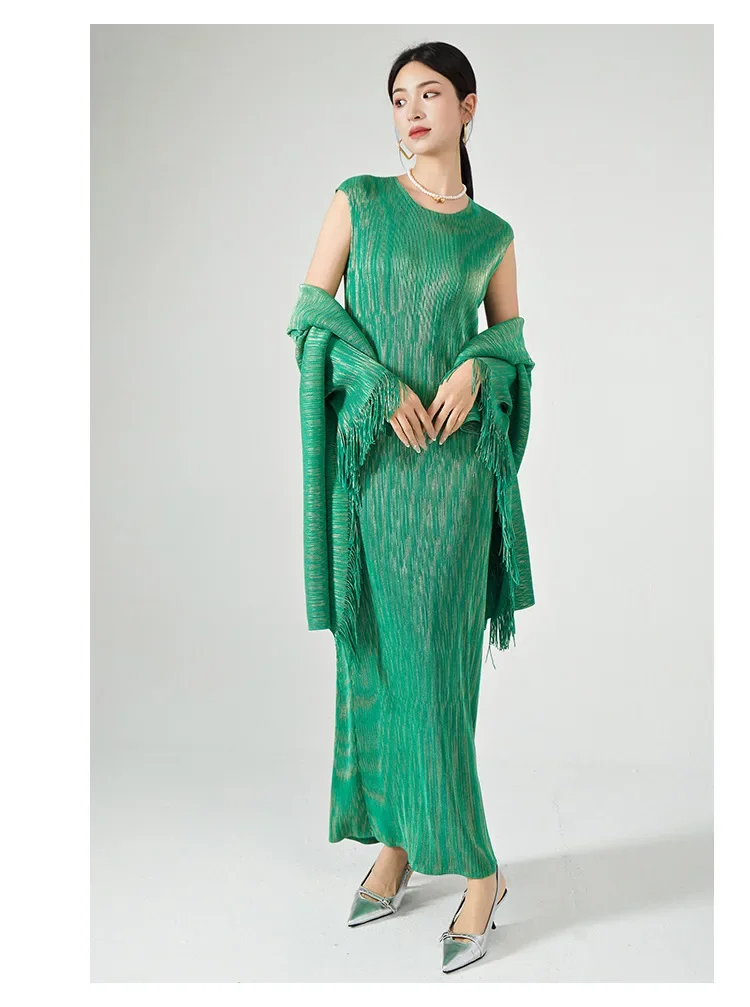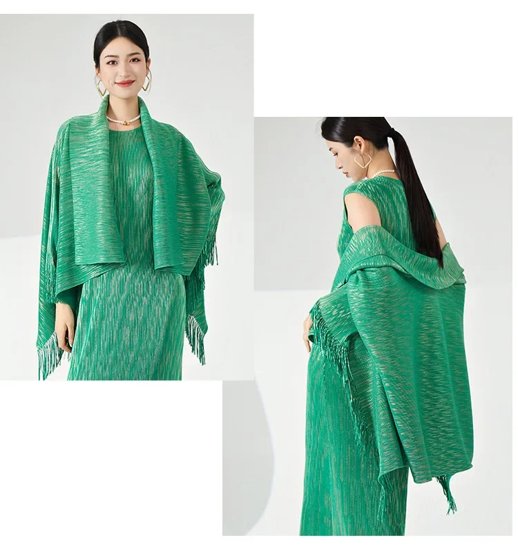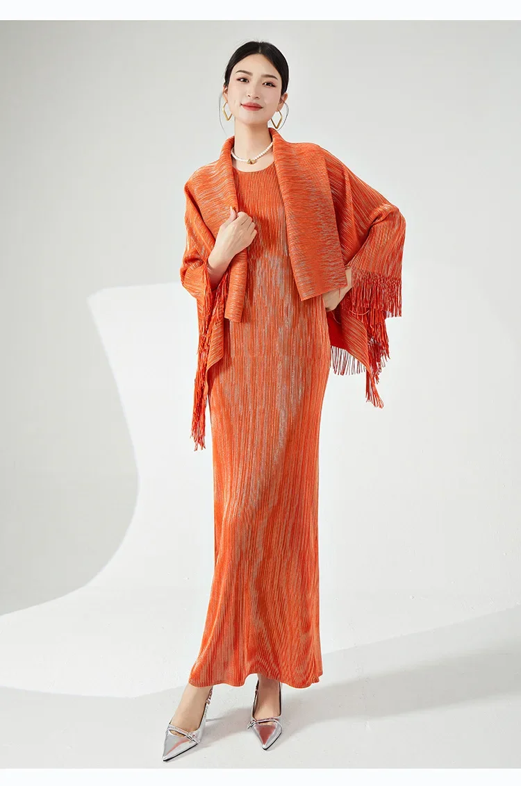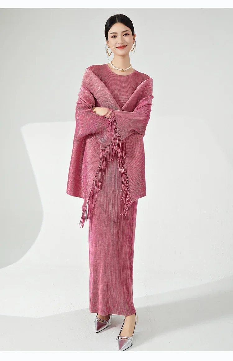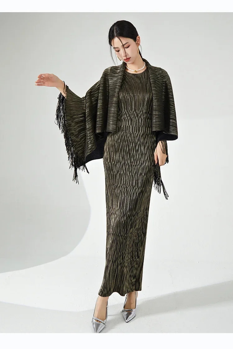 ✨ Why you'll love it - Made for the fashion-forward woman, this set offers a perfect fit and premium quality. The tassel shawl coat adds a touch of sophistication, while the maxi slim dress accentuates your curves beautifully.