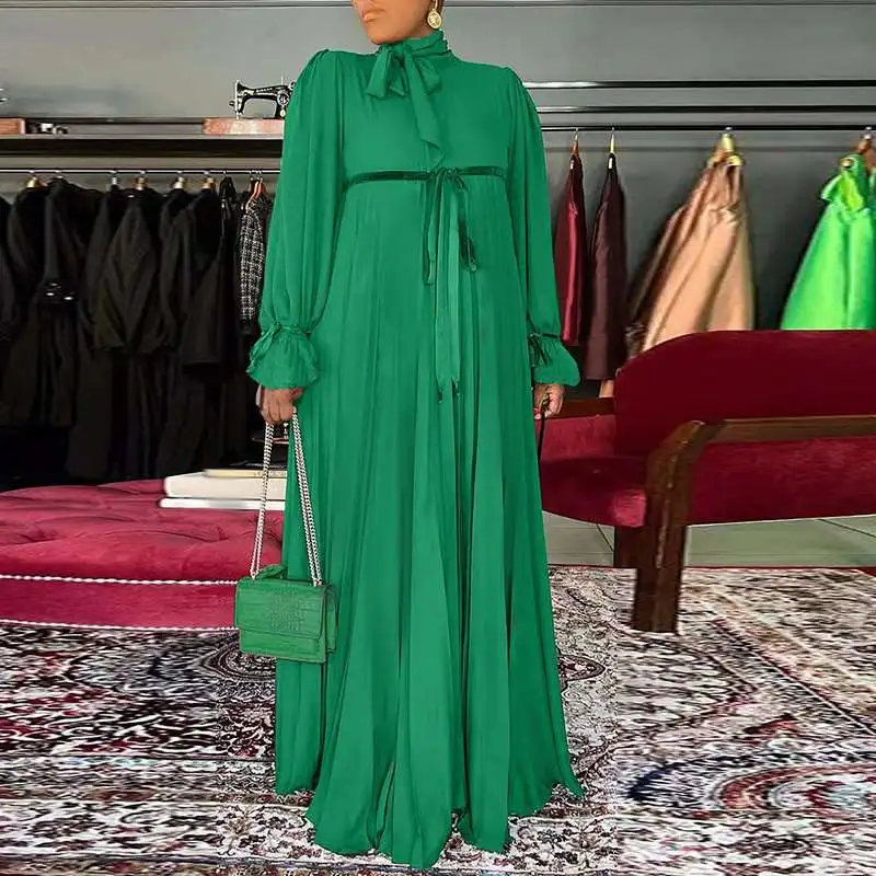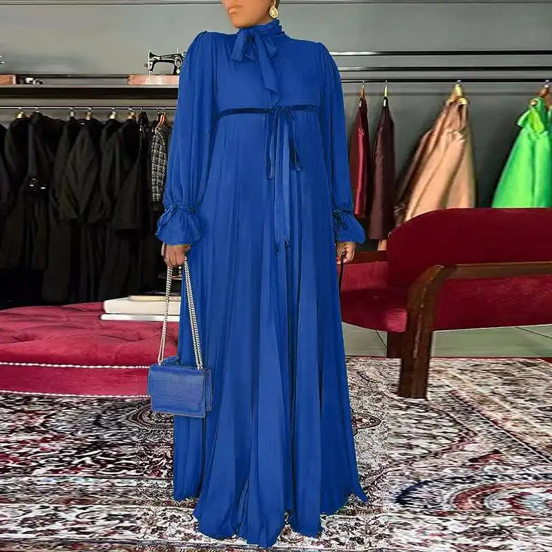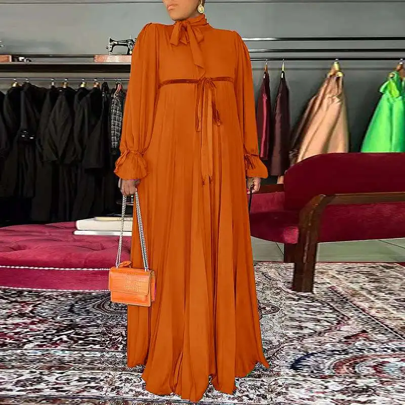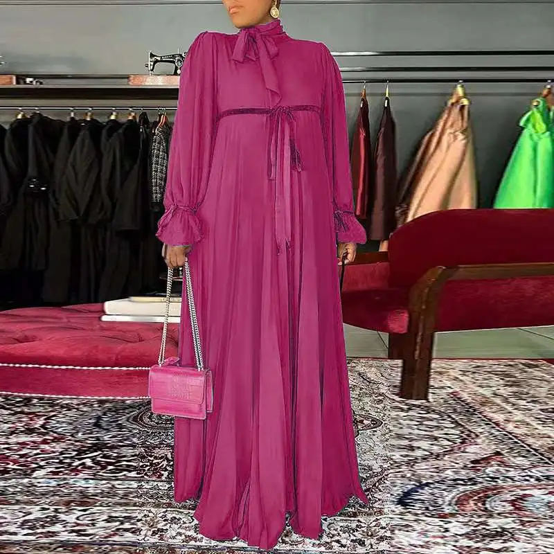 Introducing our best-selling Plus Size 5XL VONDA Autumn Women Long Dress 2023, designed with the modern woman in mind. This elegant dress features a long sleeve bandage design and a stand collar for a sophisticated touch. The solid maxi sundress is perfect for any occasion, from casual outings to stylish parties. Made with high-quality materials, it offers a perfect fit for plus size women, solving the problem of finding fashionable and comfortable clothing. Don't miss out on this exclusive piece, available for a limited time only. Elevate your wardrobe with this premium fashion statement and experience the confidence and style it brings.