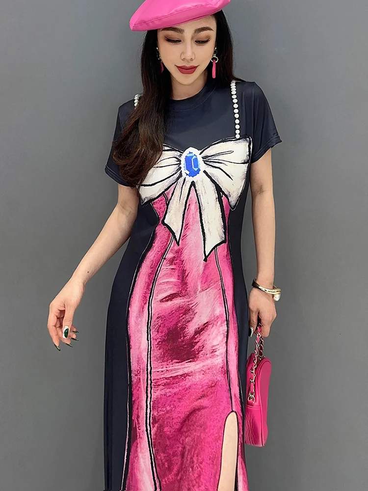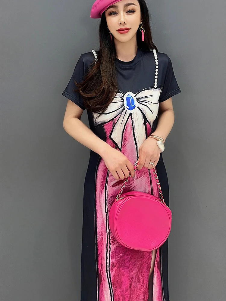Introducing the SHENGPALAE 2024 Spring Summer New Printed Dress - the perfect combination of style and comfort for the modern woman. This dress features an O-neck design and short sleeves, with a stunning printed bead pattern and a split long dress design. Made with premium materials, it offers the perfect fit for any body type. Say goodbye to the hassle of finding the right size, as our size chart is accurate and reliable. Plus, our exclusive limited time offer makes it the best seller of the season. Don't miss out on this must-have addition to your wardrobe. Order now and experience the convenience and style of the SHENGPALAE 2024 Spring Summer New Printed Dress.