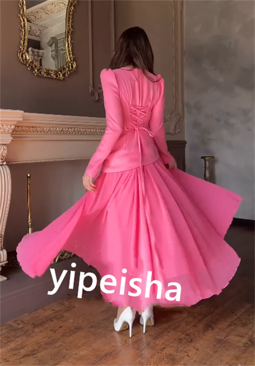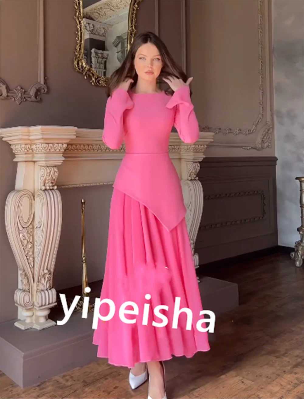 Why you'll love it: - Customizable design for a unique fit. - Elegant pleat detailing for a sophisticated look. - High collar adds a touch of luxury. - Perfect for parties, weddings, and special events. - Made from premium jersey fabric for comfort and durability.