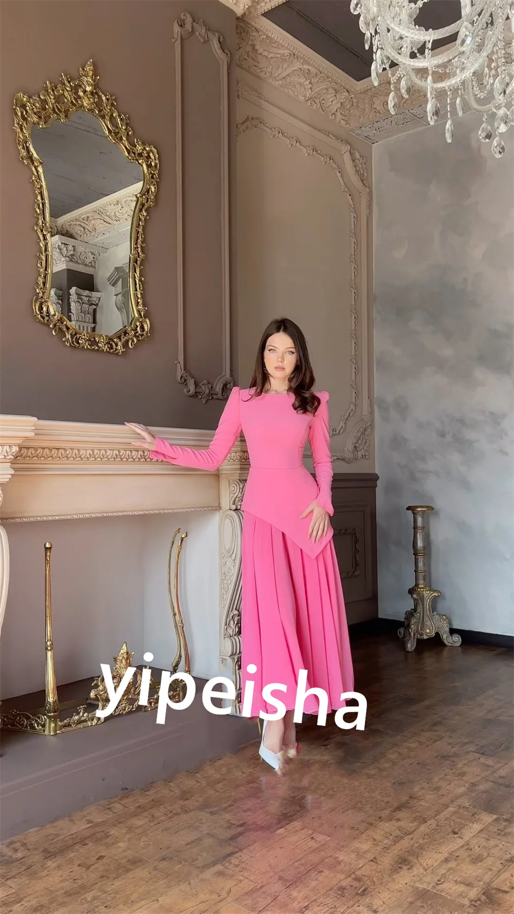 This stunning long dress combines style and elegance, showcasing exquisite pleat work and a regal high collar. Crafted from high-quality jersey fabric, it offers both comfort and sophistication, making it a wardrobe essential for your special occasions.