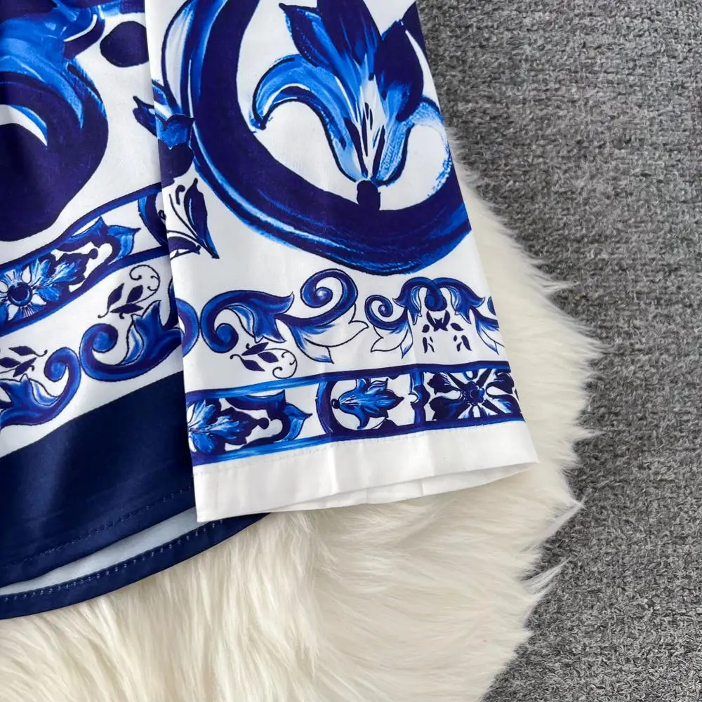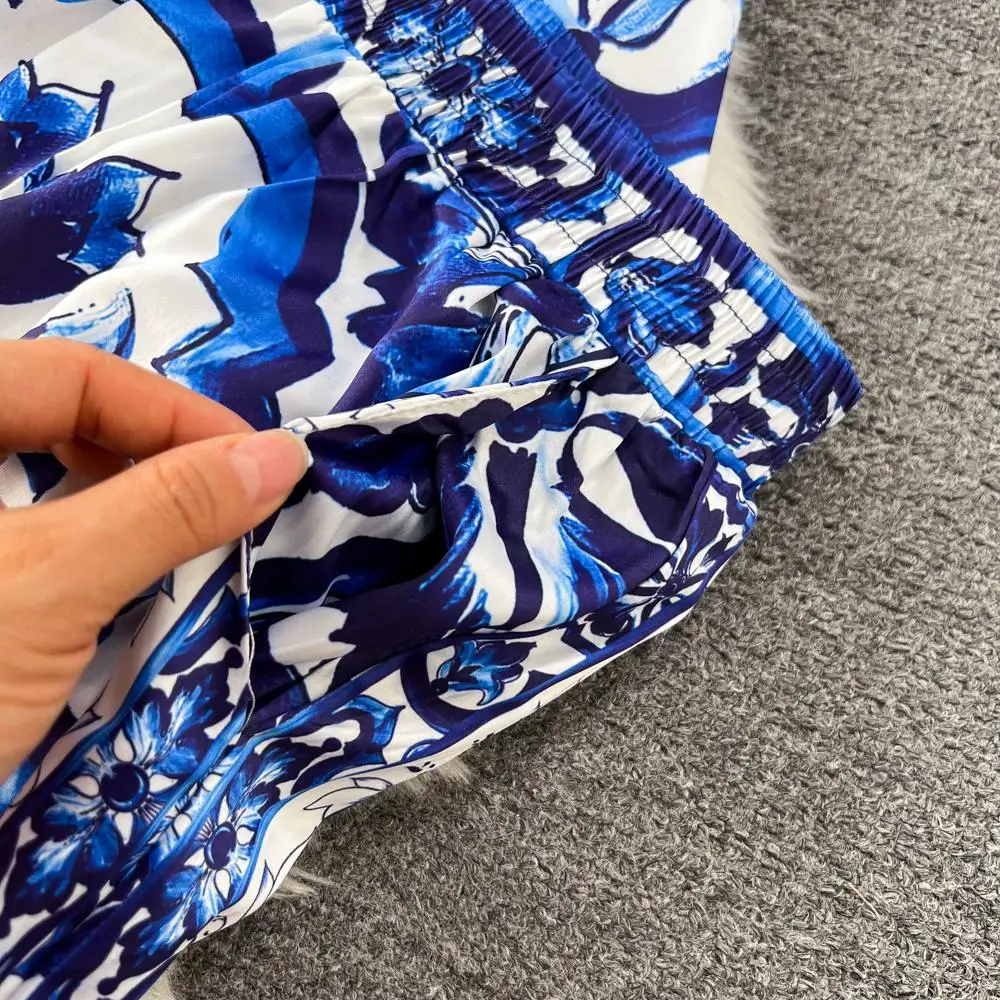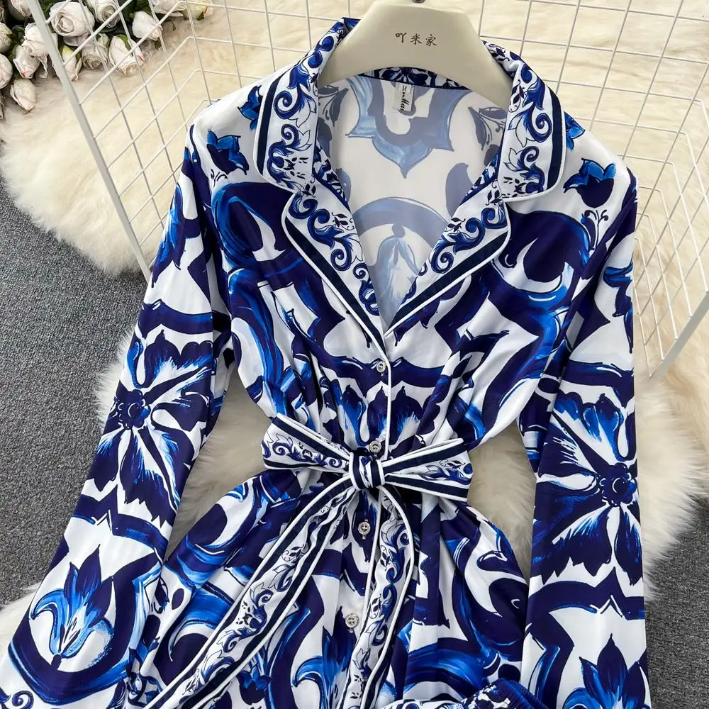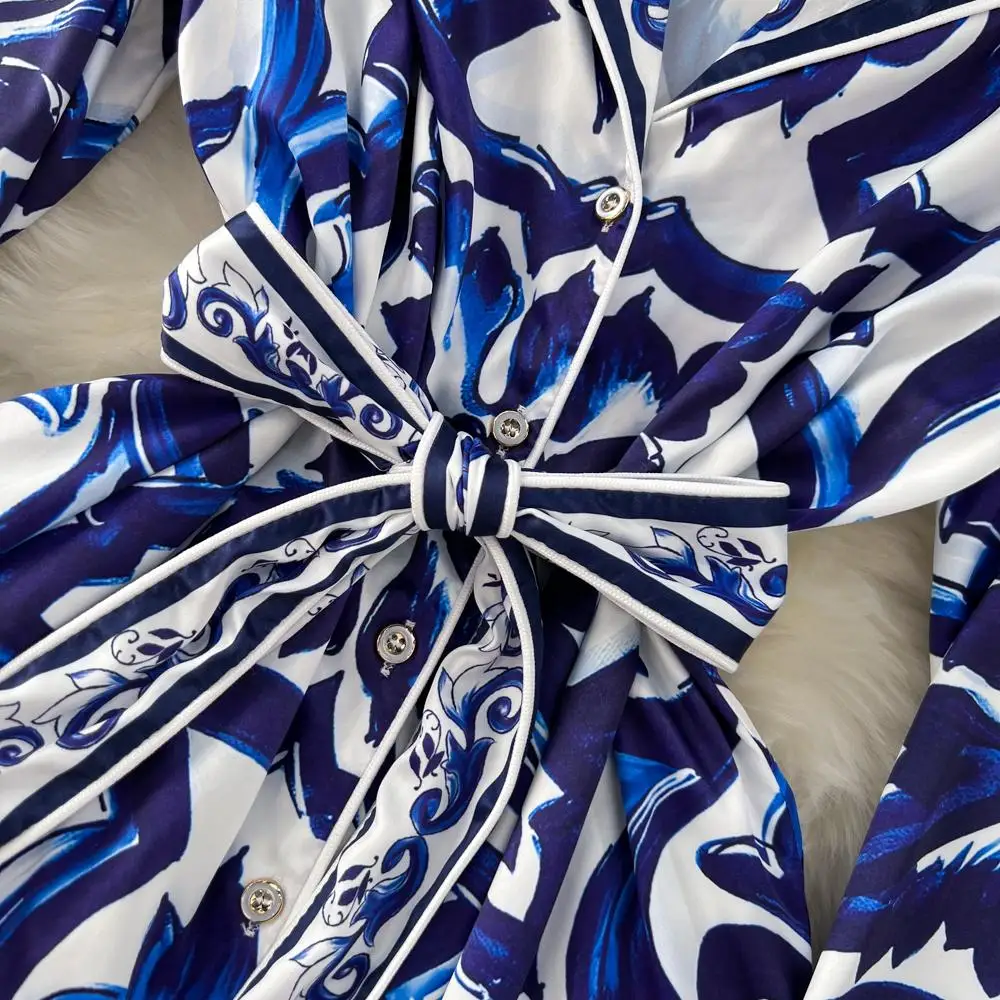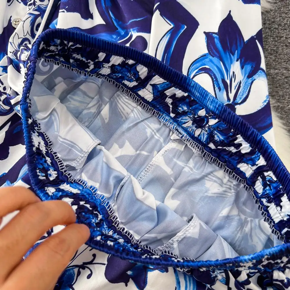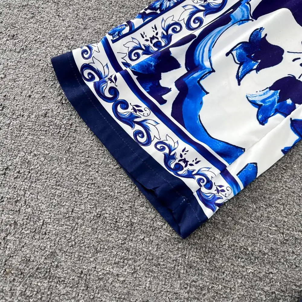 Introducing our best-selling Autumn Fashion Runway Pants Suit, featuring a stunning blue and white porcelain print on a long jacket and pants set. Made for the modern woman, this suit is perfect for any occasion and will solve the problem of finding a stylish and comfortable outfit. With its long sleeves and premium fabric, customers will gain confidence and sophistication while wearing this exclusive and limited-time set. Be runway-ready and make a statement with our N8730 set, the perfect fit for your fall wardrobe.