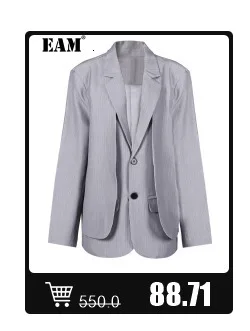 Introducing our latest fashion statement, the EAM Blue Two Piece Suit Denim Jacket and Wide Leg Pants. This stylish and comfortable suit is perfect for spring and autumn seasons, featuring a new stand collar design and a trendy oversized fit. Available in M-XL sizes, this suit is perfect for all body types. Made with premium quality denim fabric, it offers a perfect fit and is machine washable. With a 3-7 day preparation time, we ensure timely delivery of our best-selling product. Don't miss out on the opportunity to win a $2 coupon by sharing your 5-star review and buyer show. For wholesale and dropshipping options, contact us for discounts and express shipping. Upgrade your wardrobe with this exclusive and limited time offer.
