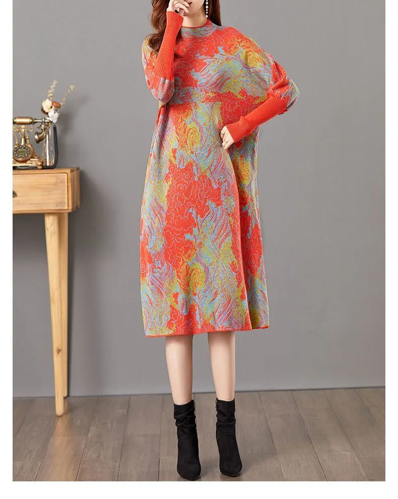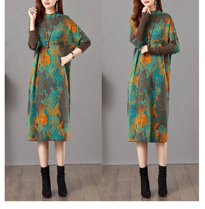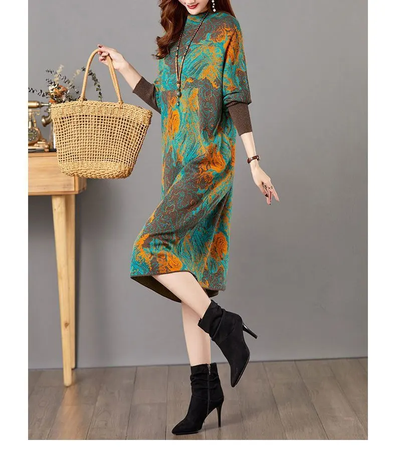 Introducing our best-selling Folk Tie Dye Printed Midi Dress, perfect for the autumn and winter seasons. This casual yet stylish dress features a half high collar and loose A-line silhouette, providing a comfortable and flattering fit for all body types. The contrasting tie-dye print adds a unique touch to this dress, making it a must-have for any fashion-forward woman. Made with premium materials, this dress is exclusive and available for a limited time only. Say goodbye to boring winter outfits and elevate your wardrobe with our Folk Tie Dye Midi Dress.