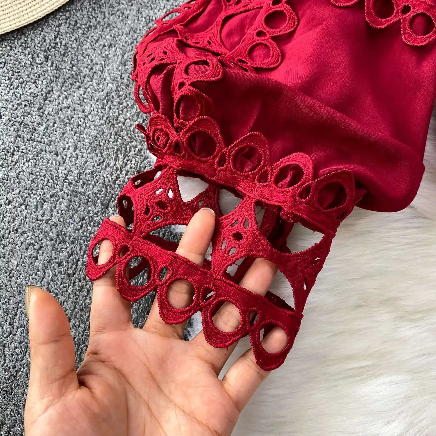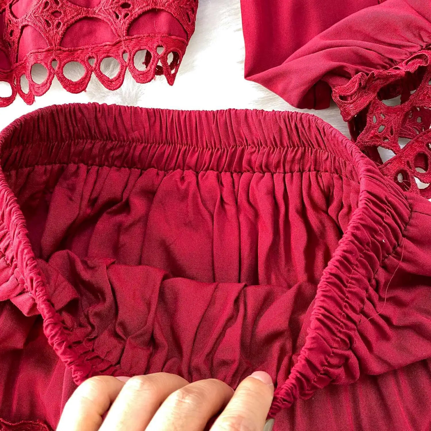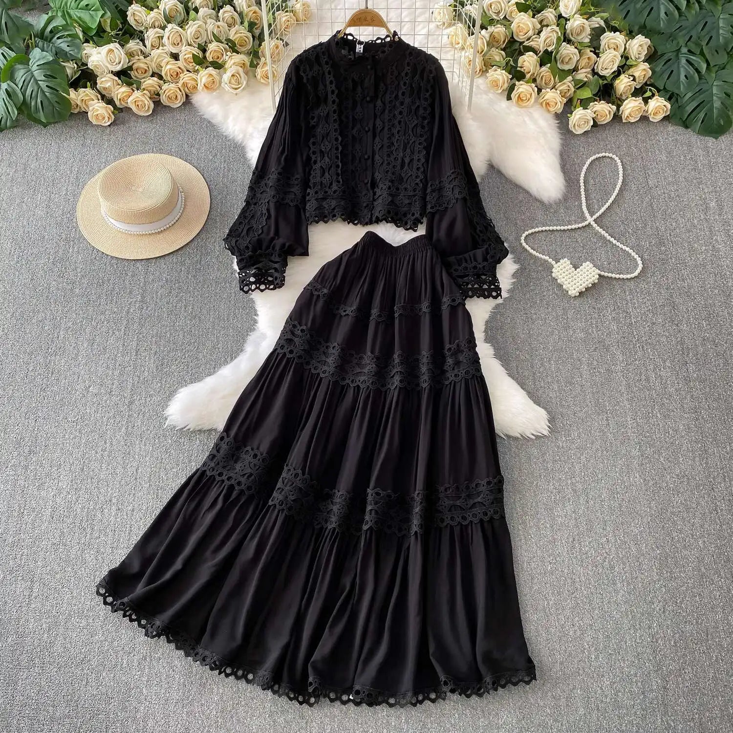 Why you'll love it: - Effortlessly chic with sophisticated crochet details. - Flattering elastic waist and flowy skirt design. - Versatile for casual outings or formal events. - Easy to layer for transitional seasons. - Premium quality, machine washable for durability.