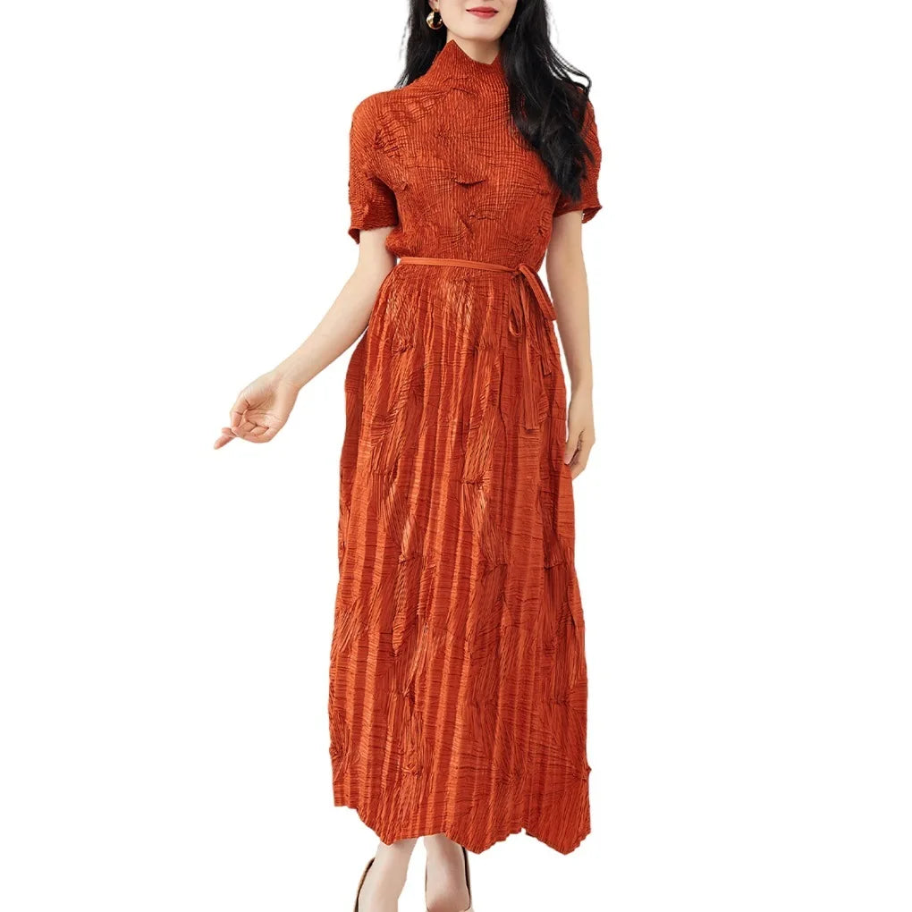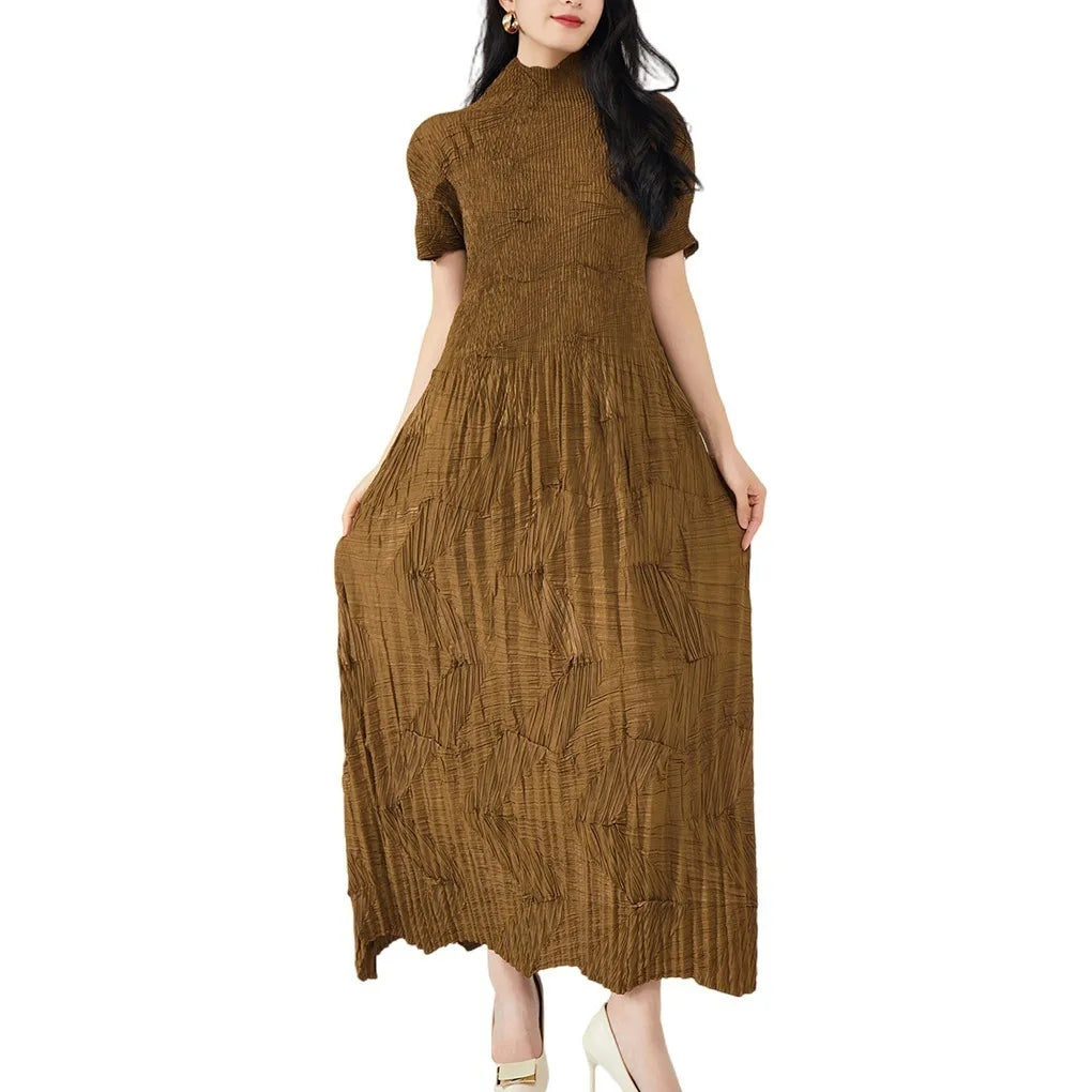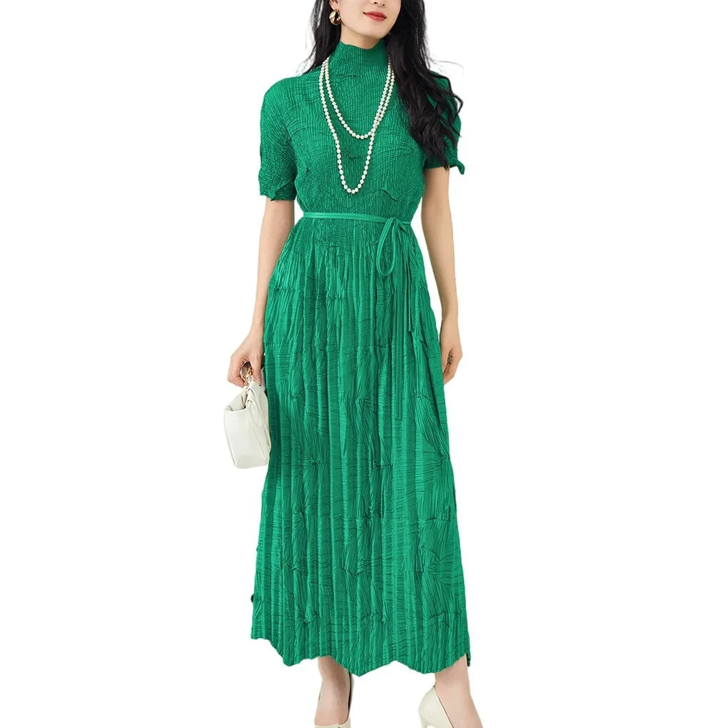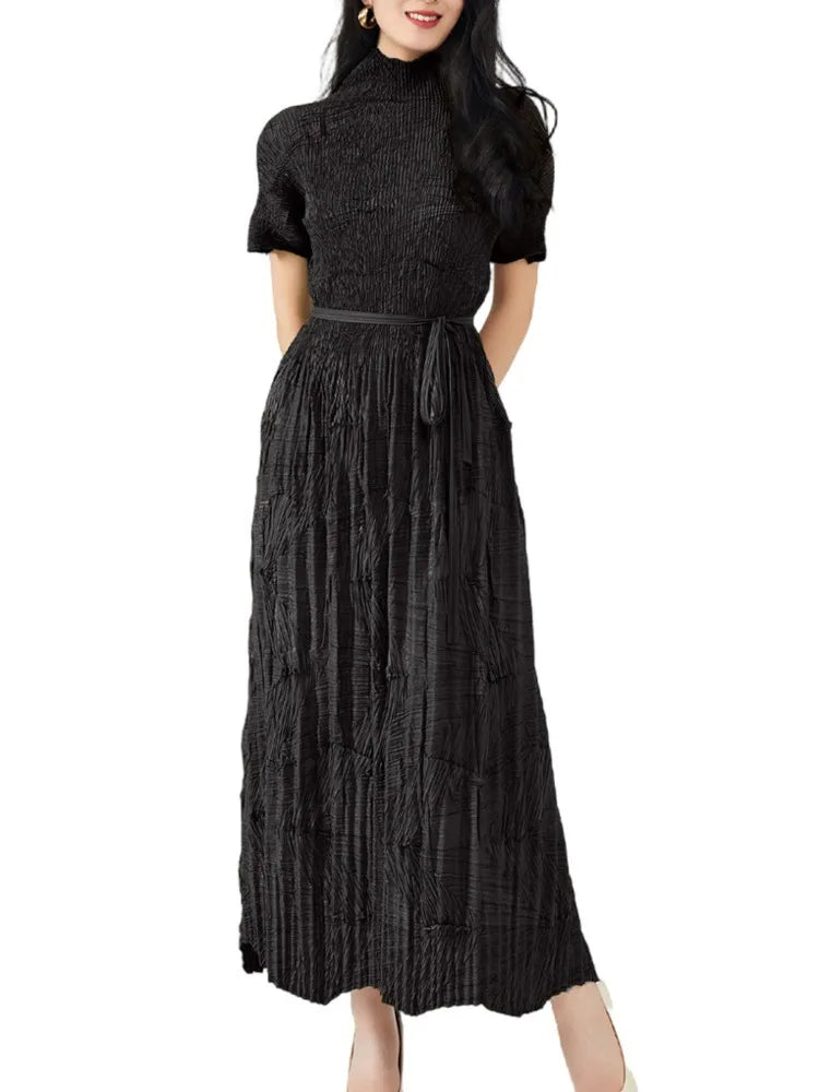 Elevate your wardrobe with our stunning Chic Pleated A-Line Dress featuring a draped lace-up design and short sleeves.