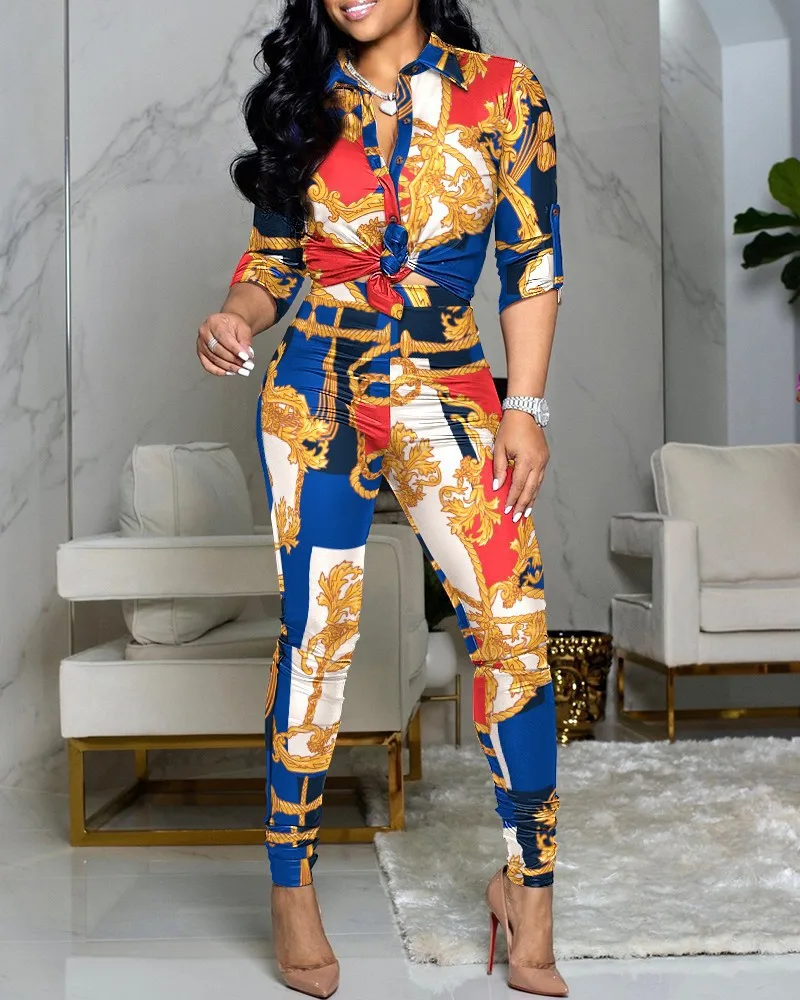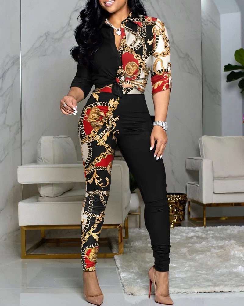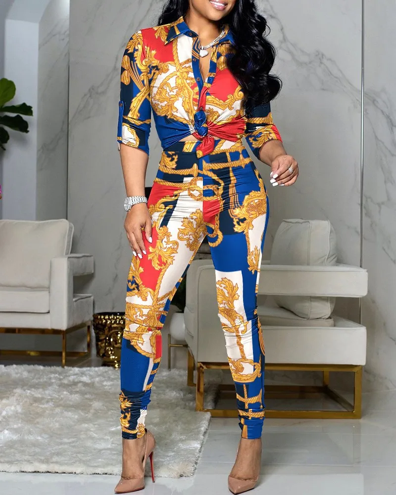Introducing our latest addition - the Colorblock Print Long Sleeve Lapel Shirt Casual Pants Two Piece Set! This premium casual suit is designed to solve the problem of finding a stylish and comfortable outfit for any occasion. Made with high-quality materials, this set offers the perfect fit and is a best seller among our customers. The colorblock print adds a unique touch to the classic design, making it stand out from other options on the market. Don't miss out on this exclusive set, available for a limited time only. Upgrade your wardrobe with our versatile and on-the-go two piece set today!