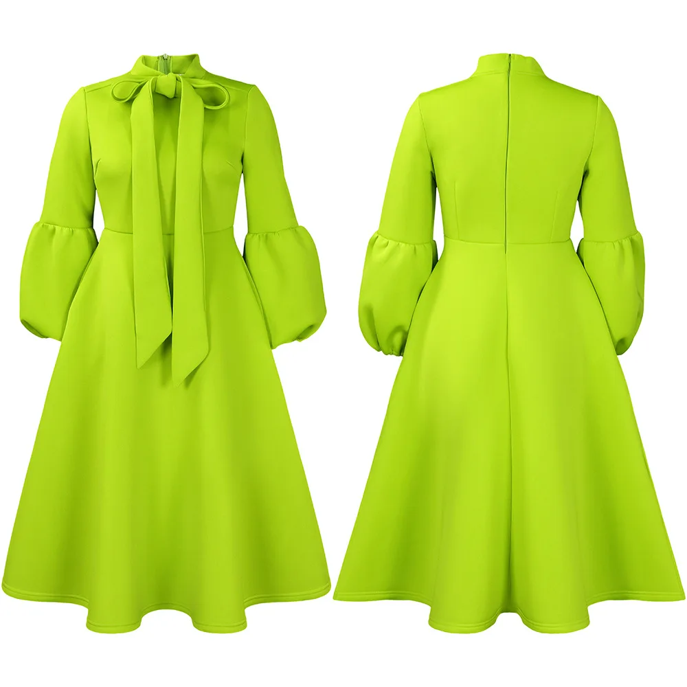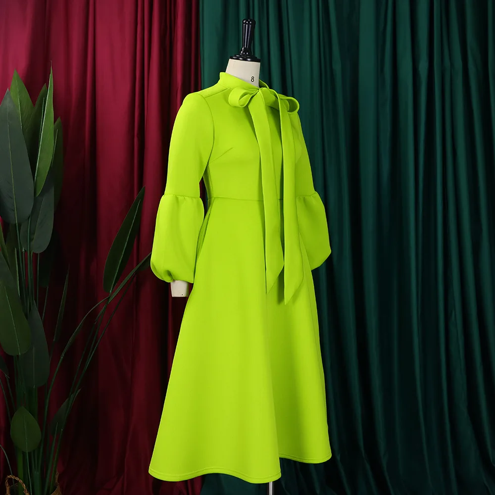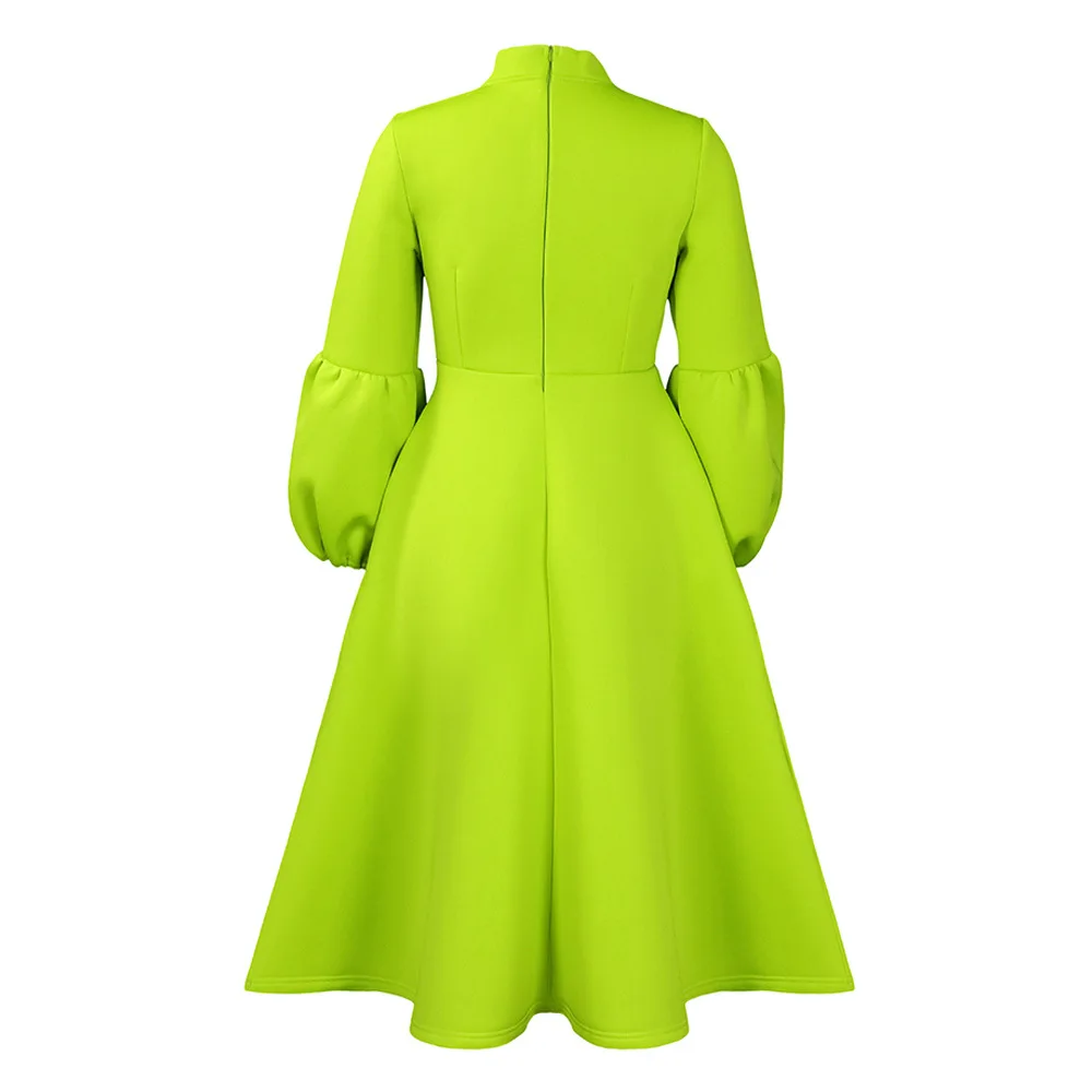 🌟 What it is - Step out in confidence with this chic dress featuring bubble sleeves, a half-open neck, and a large skirt hem. Perfect for autumn and winter, this dress is designed for the fashion-forward woman who seeks comfort and style.