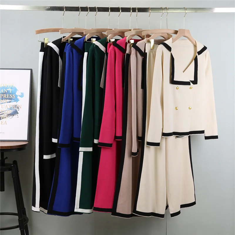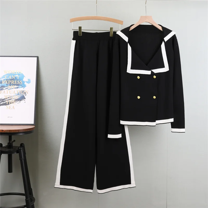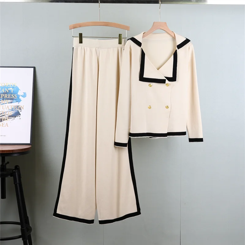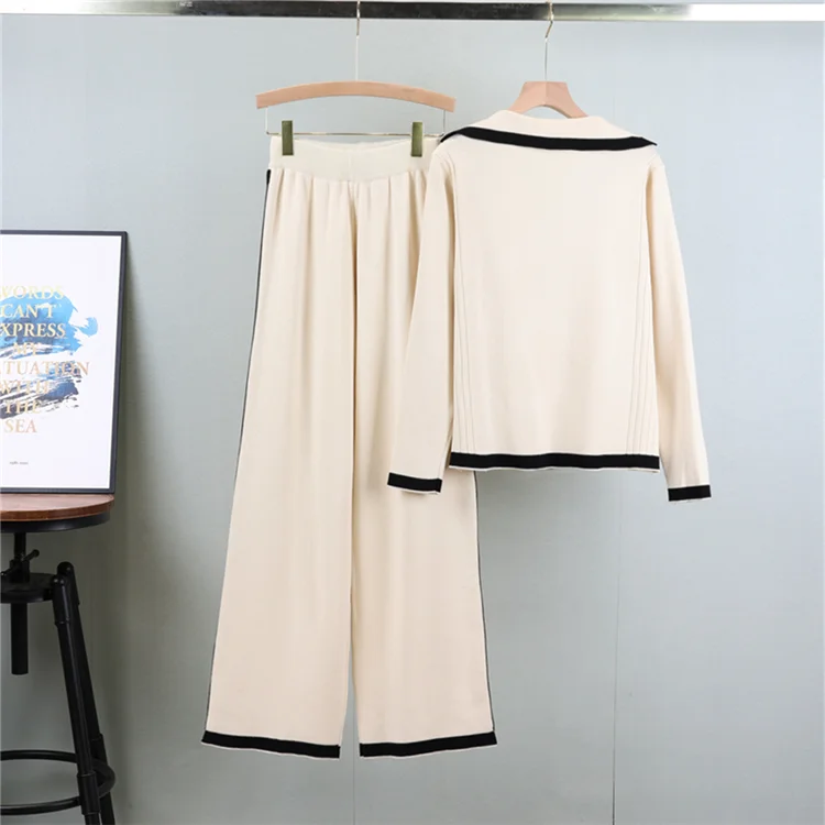 🍂 What it is - Elevate your winter wardrobe with this chic two-piece set featuring a lapel collar knitted cardigan and wide-leg pants. Perfect for both indoor lounging and outdoor gatherings.