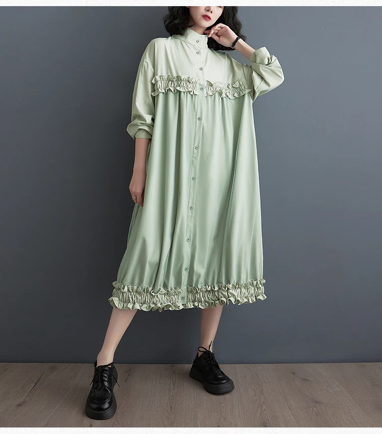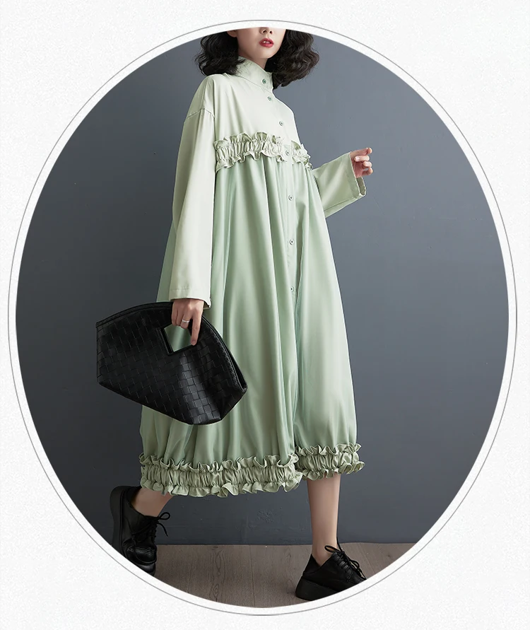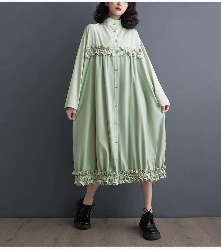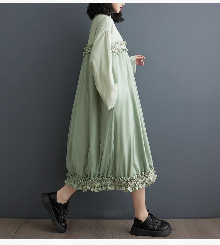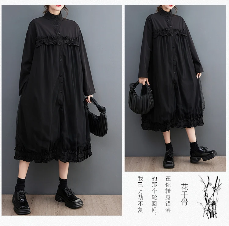 Introducing our best-selling Oversized Spring Autumn Long Shirts Dress for Women! This dress is designed with a unique mesh patchwork and loose ruffle pleats, giving it a modish and stylish look. Made with high-quality materials, this dress is perfect for any occasion and provides a comfortable fit. With our customized service, we can add your own brand or labels to the dress. Plus, for orders of 50 or more, we offer a mix of styles to choose from. Don't miss out on this exclusive offer and get your perfect fit today!