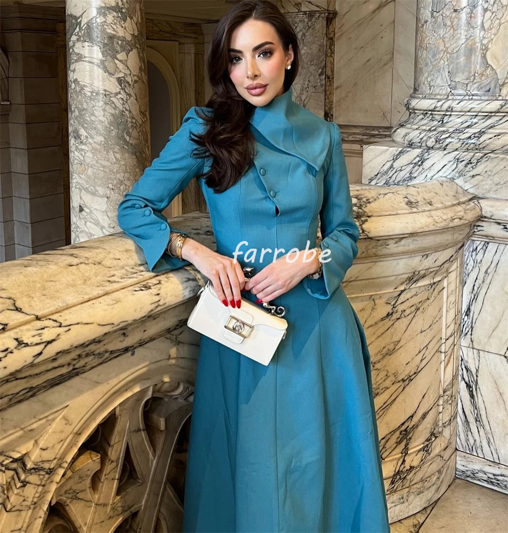 Customized Fashion Casual Jersey Button Pleat Draped A-line High Collar Midi Dresses Bespoke Occasion Dresses Matching Classic
