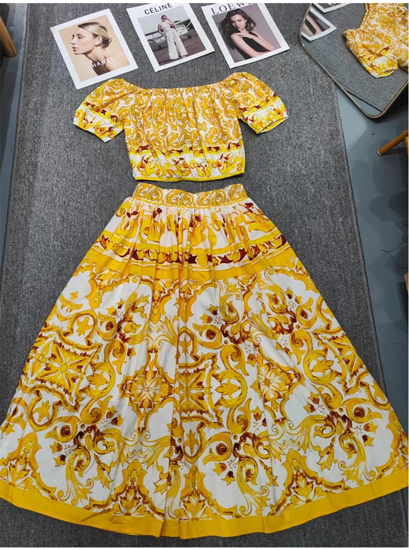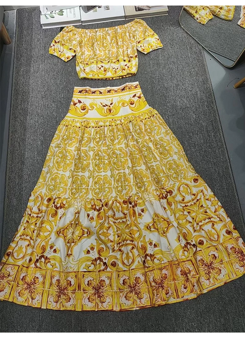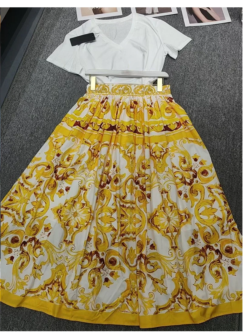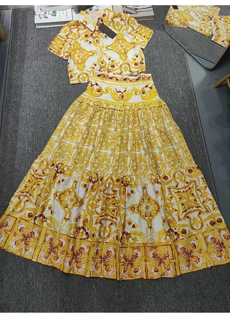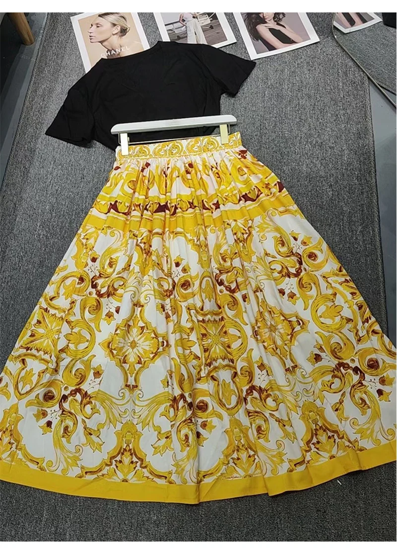 🌟 Why you need it - - Effortlessly stylish ensemble for Spring/Summer 2024 - Flattering high waist skirt for a sleek silhouette - Unique designer print for a bold fashion statement